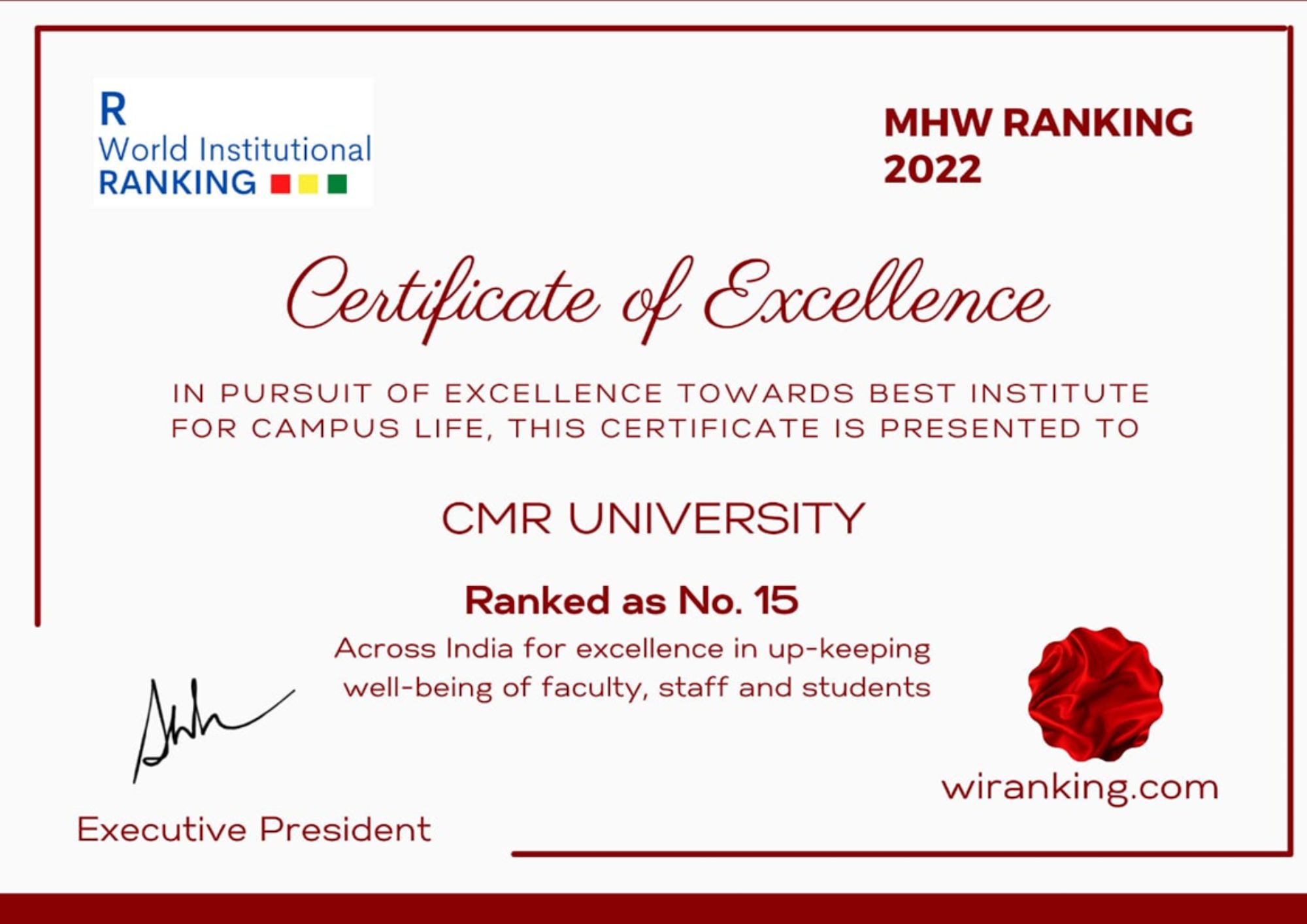 - CMR University rated as India’s most admired University of the year 2022