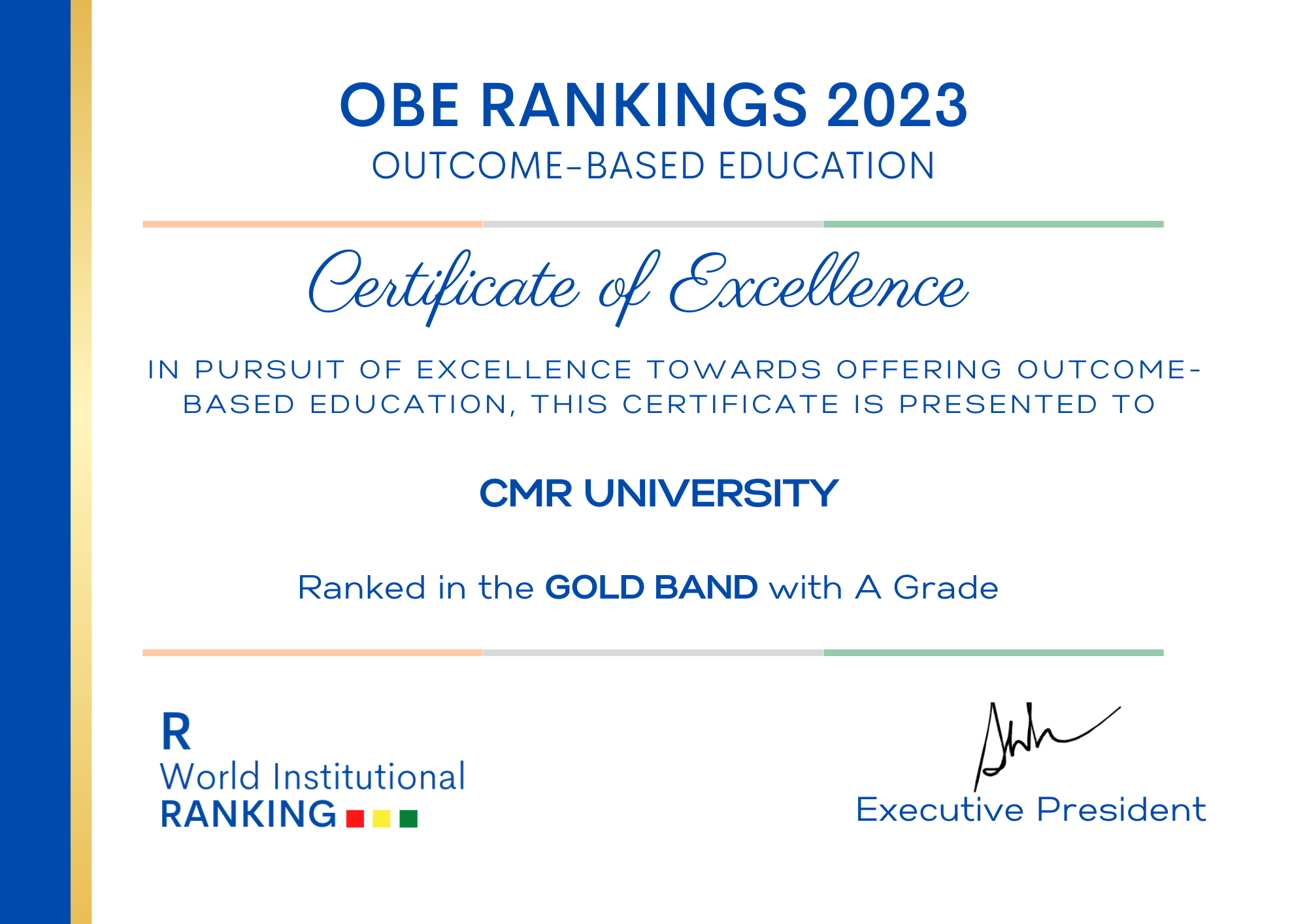 - India Academia Rankings 2023. CMR University – positioned in the ‘GOLD BAND’