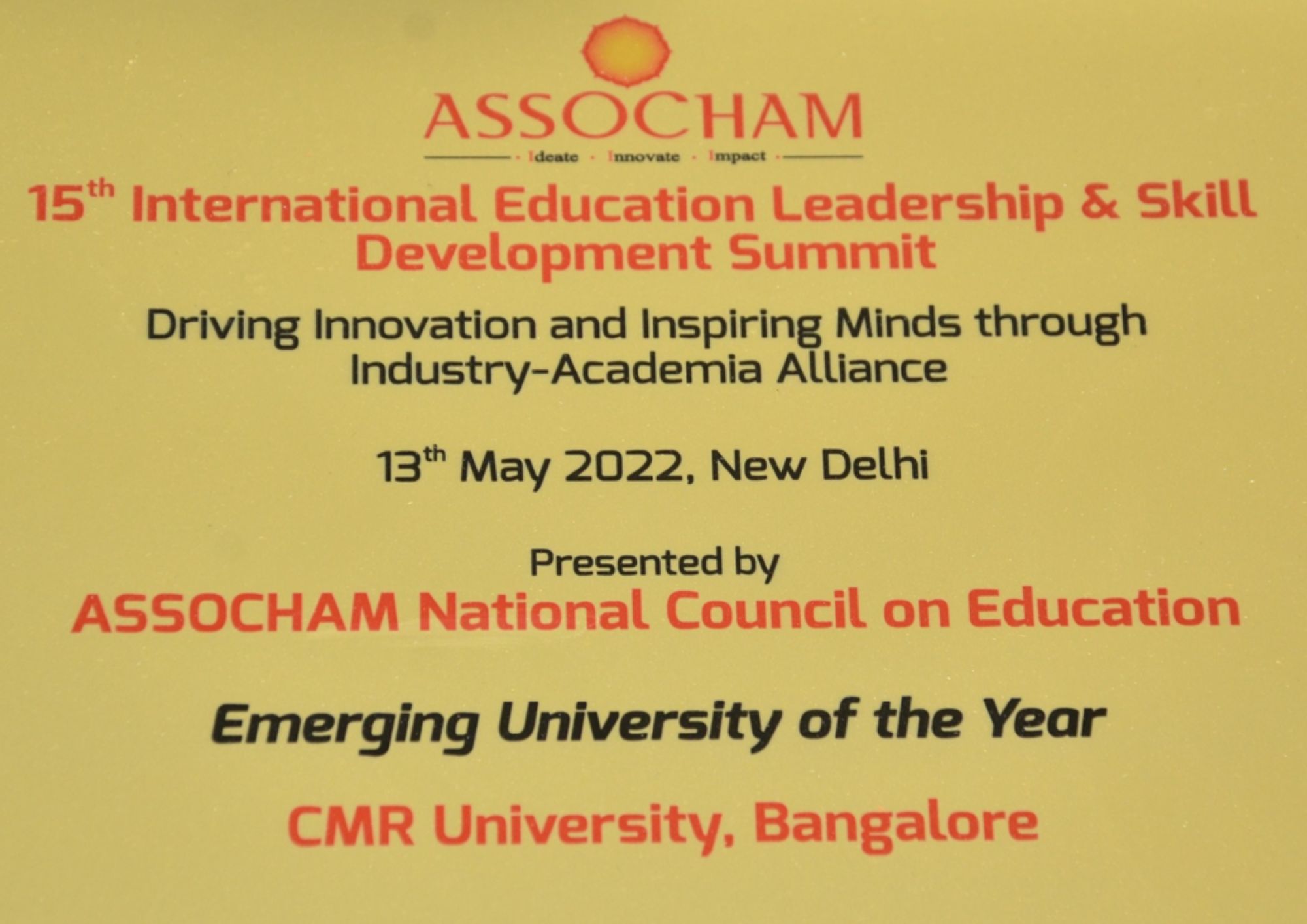 - CMR University has been awarded Best Private University in South India for Research 2022