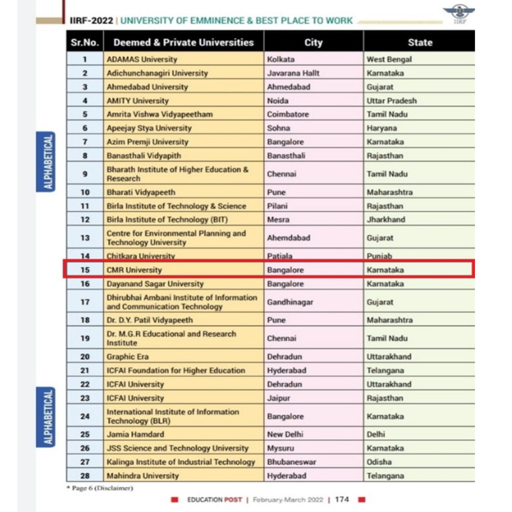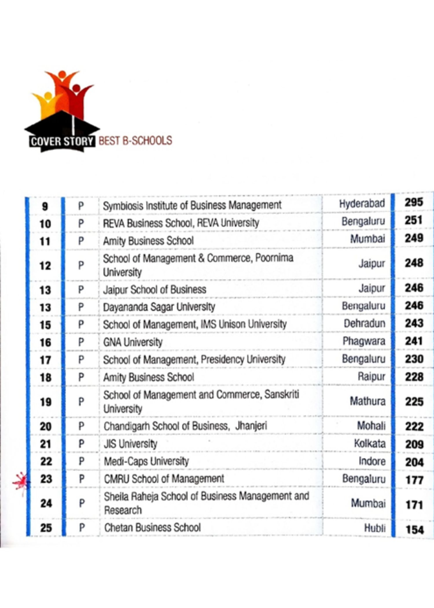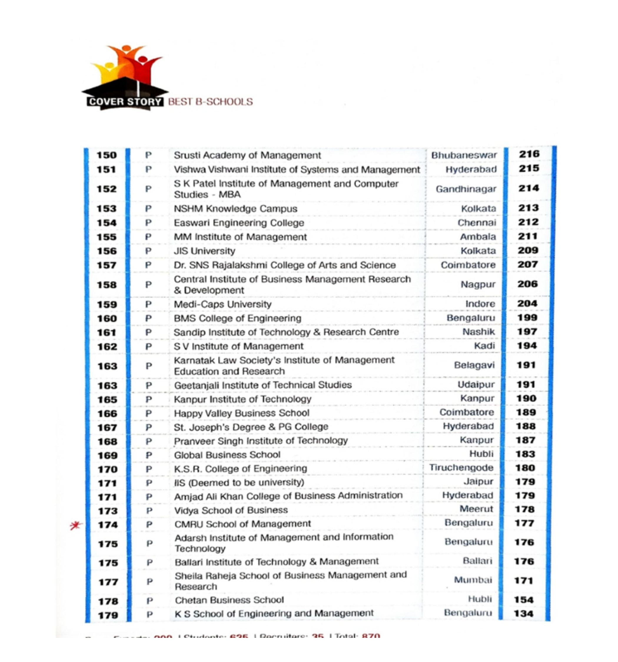 - School of Management,CMR University, Bengaluru. – BSchools Emerging All India, 23 Rank