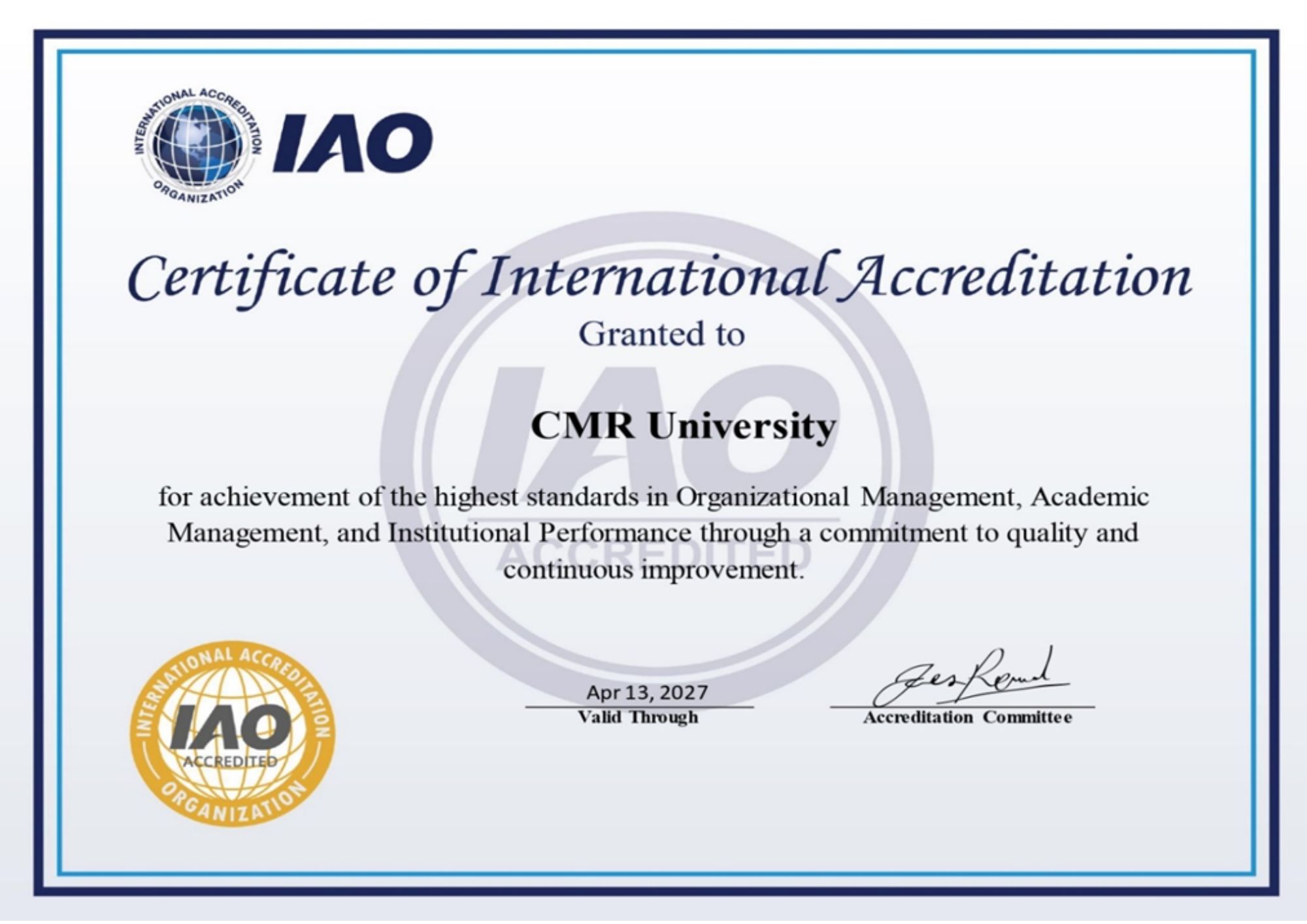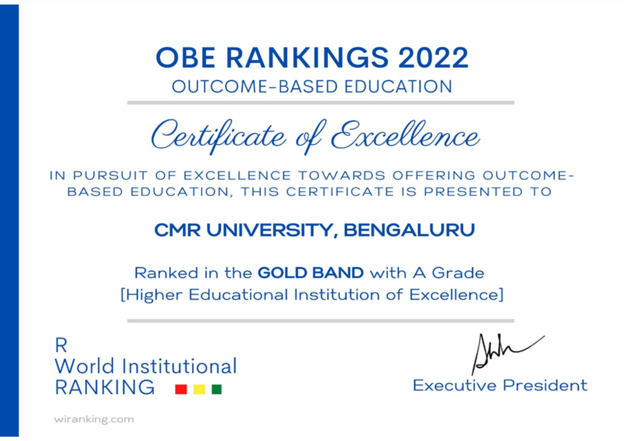 - India Academia Rankings 2023. CMR University – positioned in the ‘GOLD BAND’