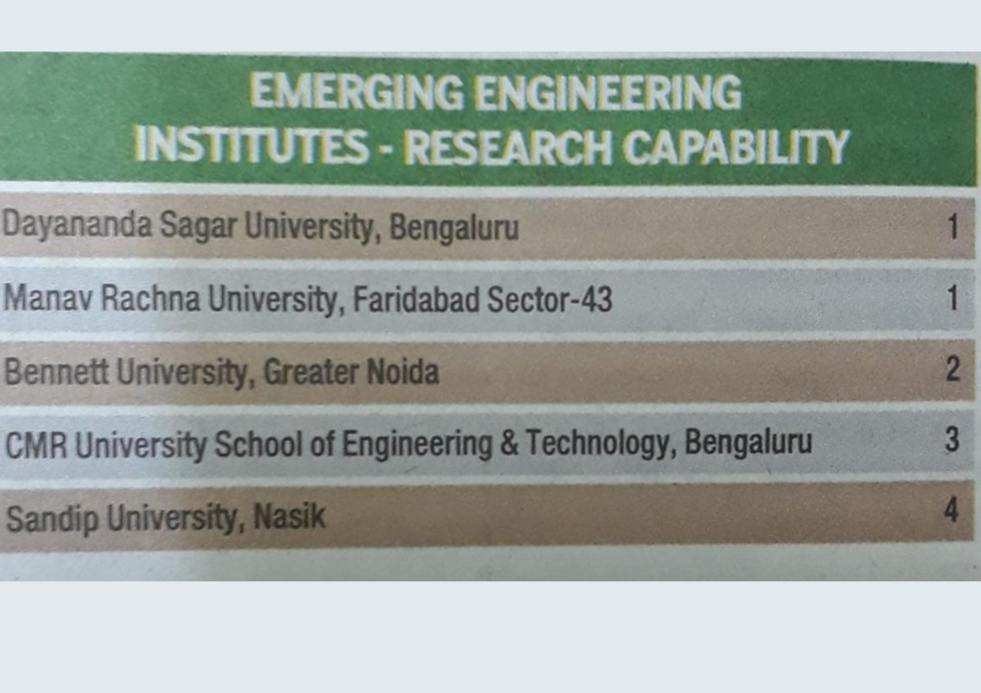 - Emerging Engineering Institutes- Research Capability