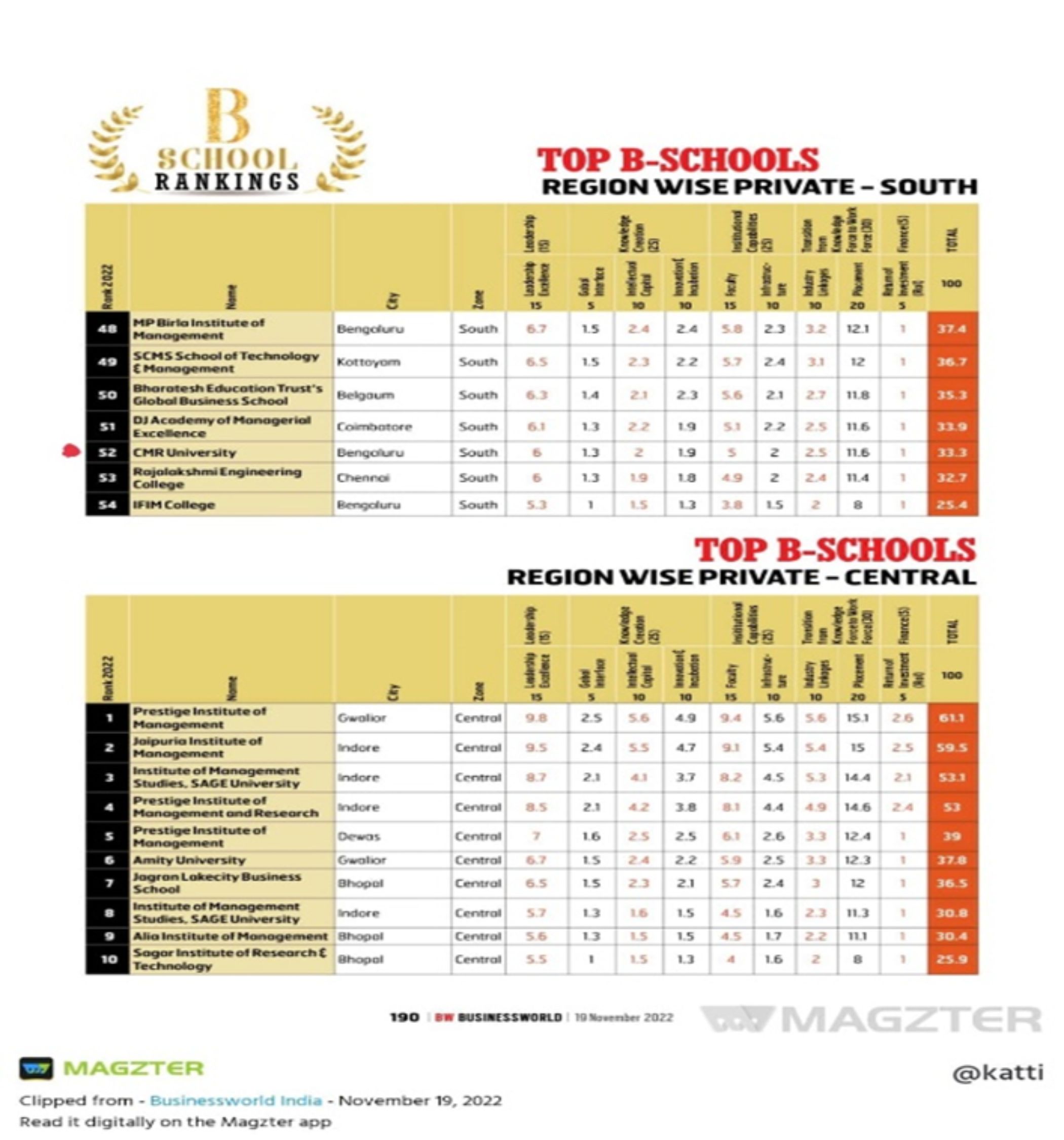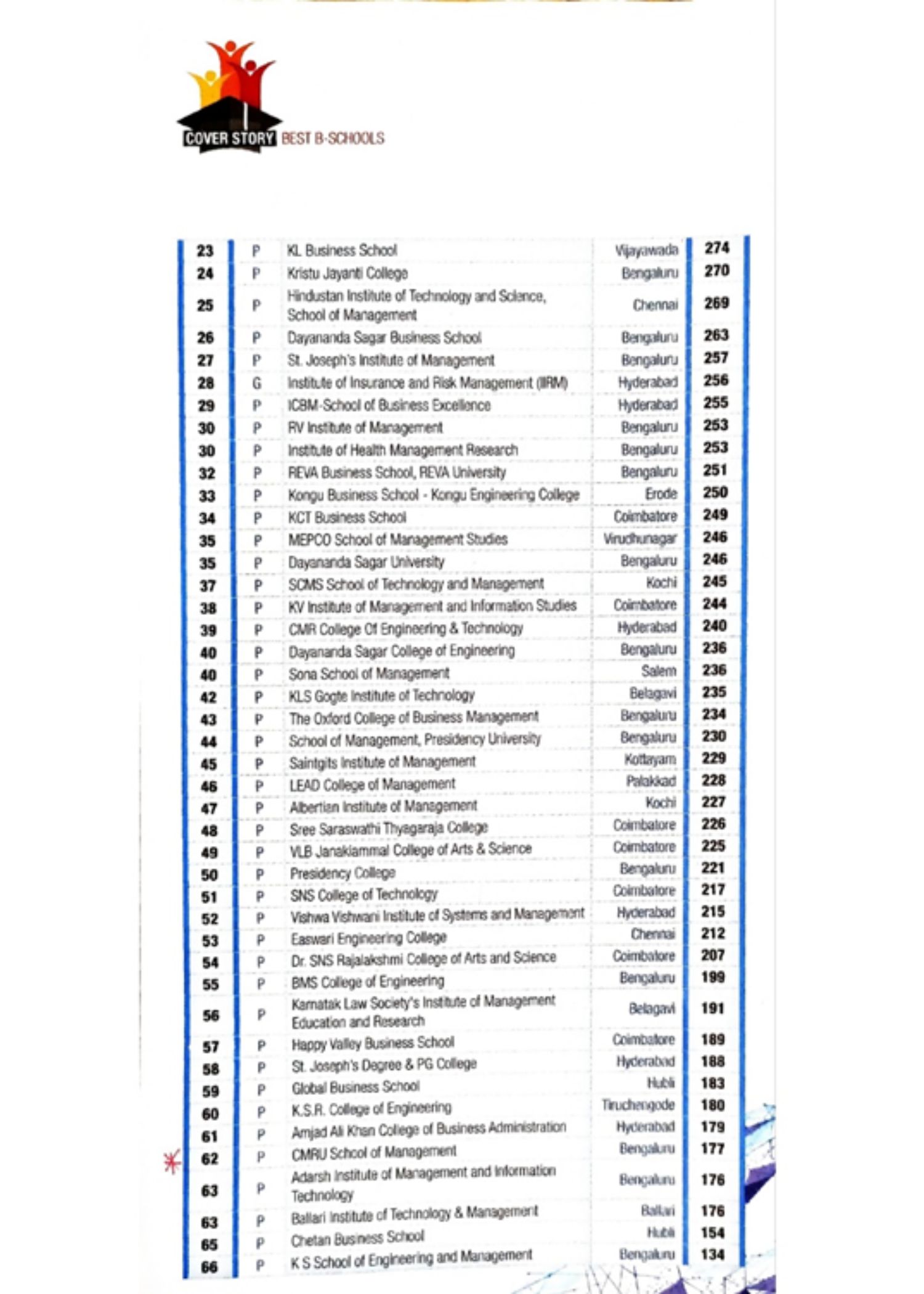 - B-Schools Private South Zone, 57 Rank