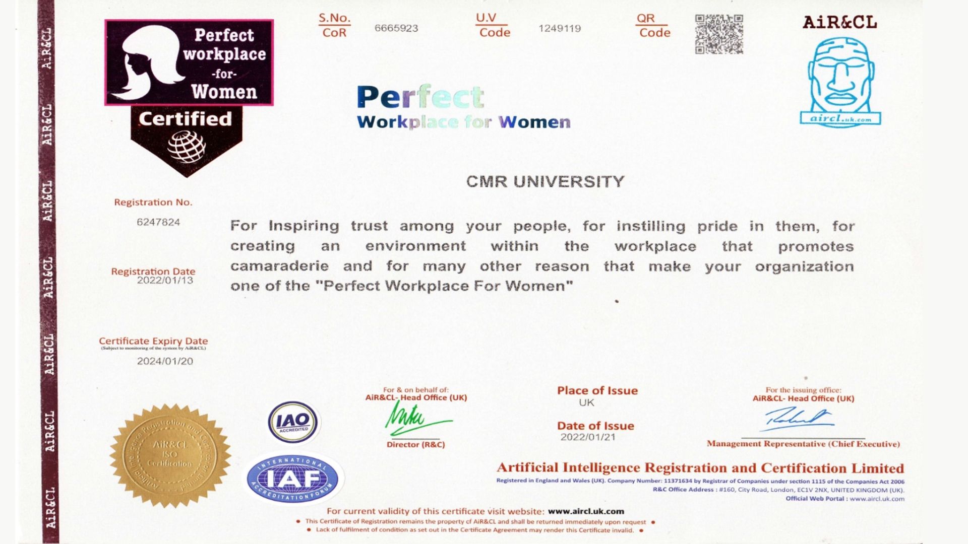 - QS-I-Gauge Institution of Happiness 2024 Institution award Institution is internationally recognized, as “Perfect place for Women” employee and women safety.