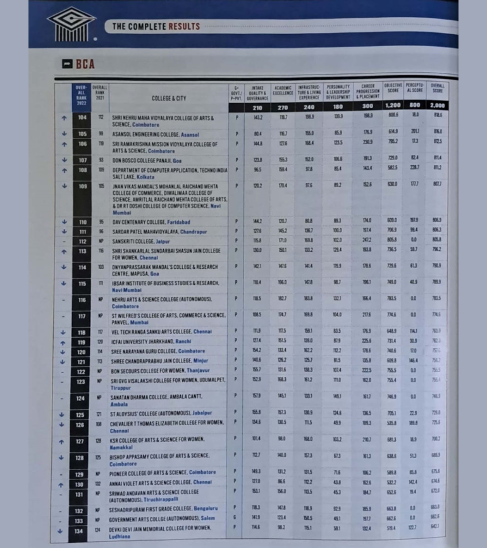 - India Today India’s best college Ranking 2023
