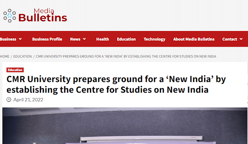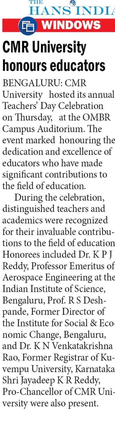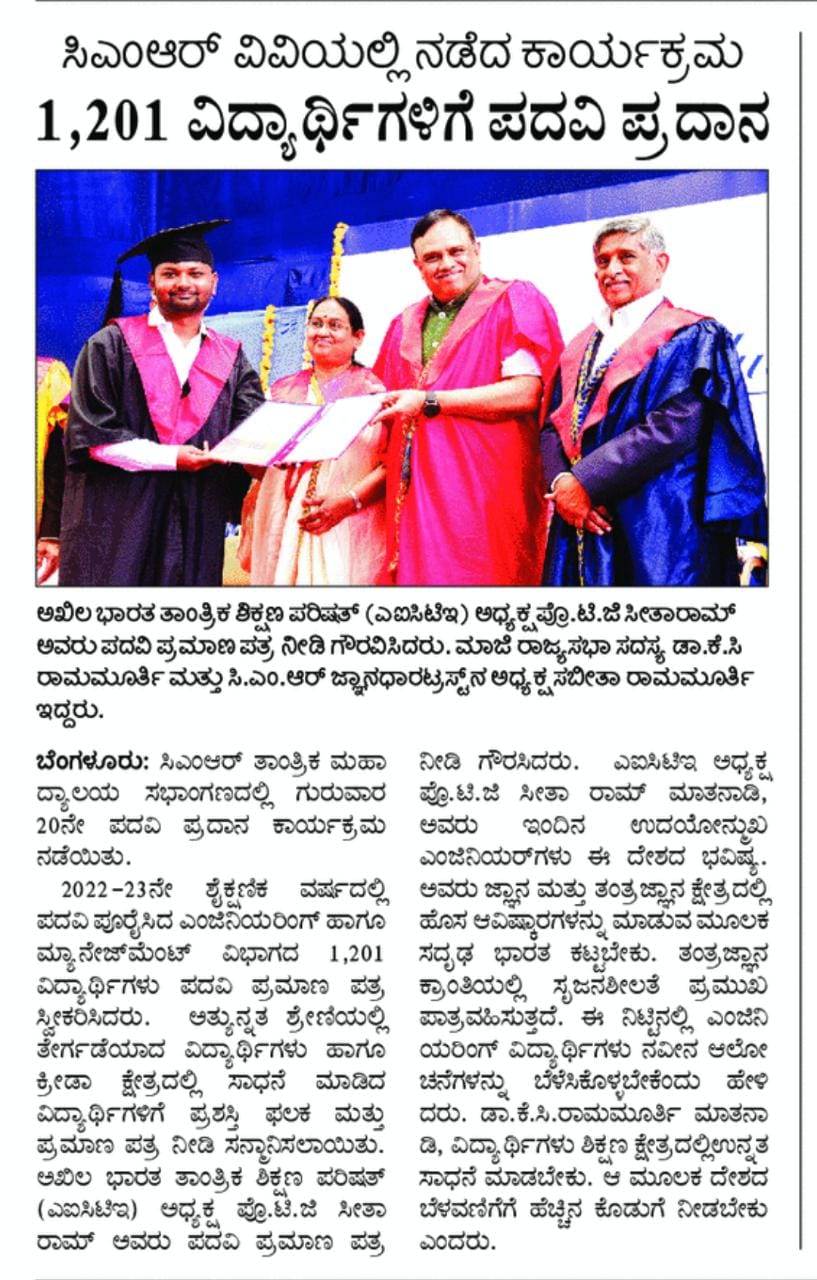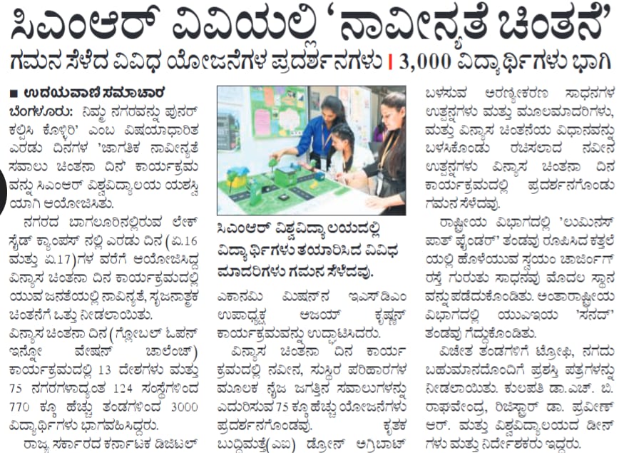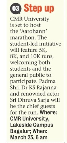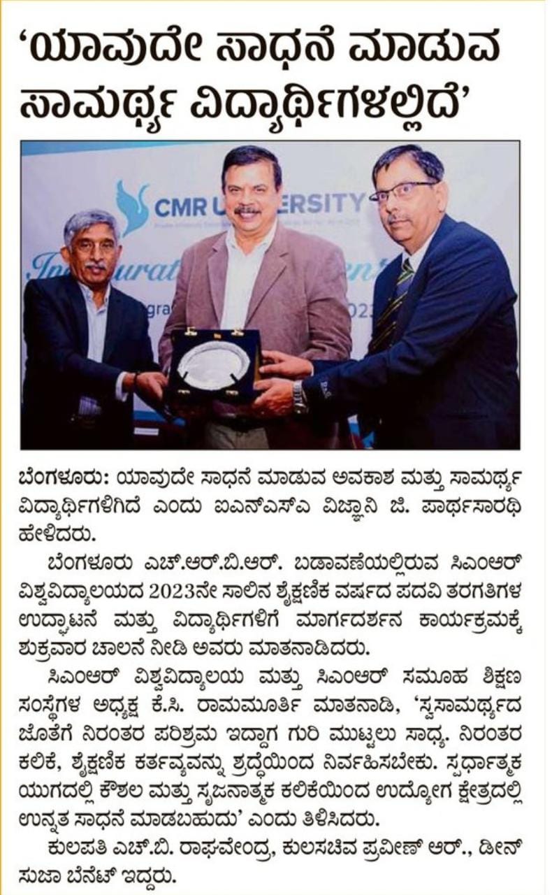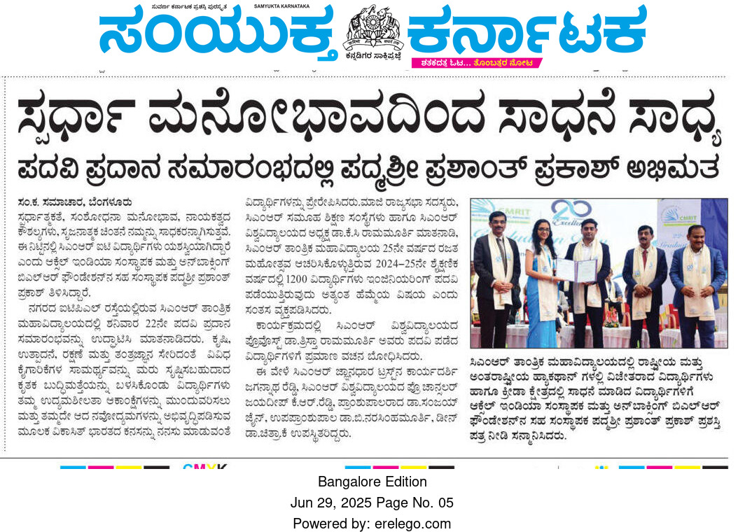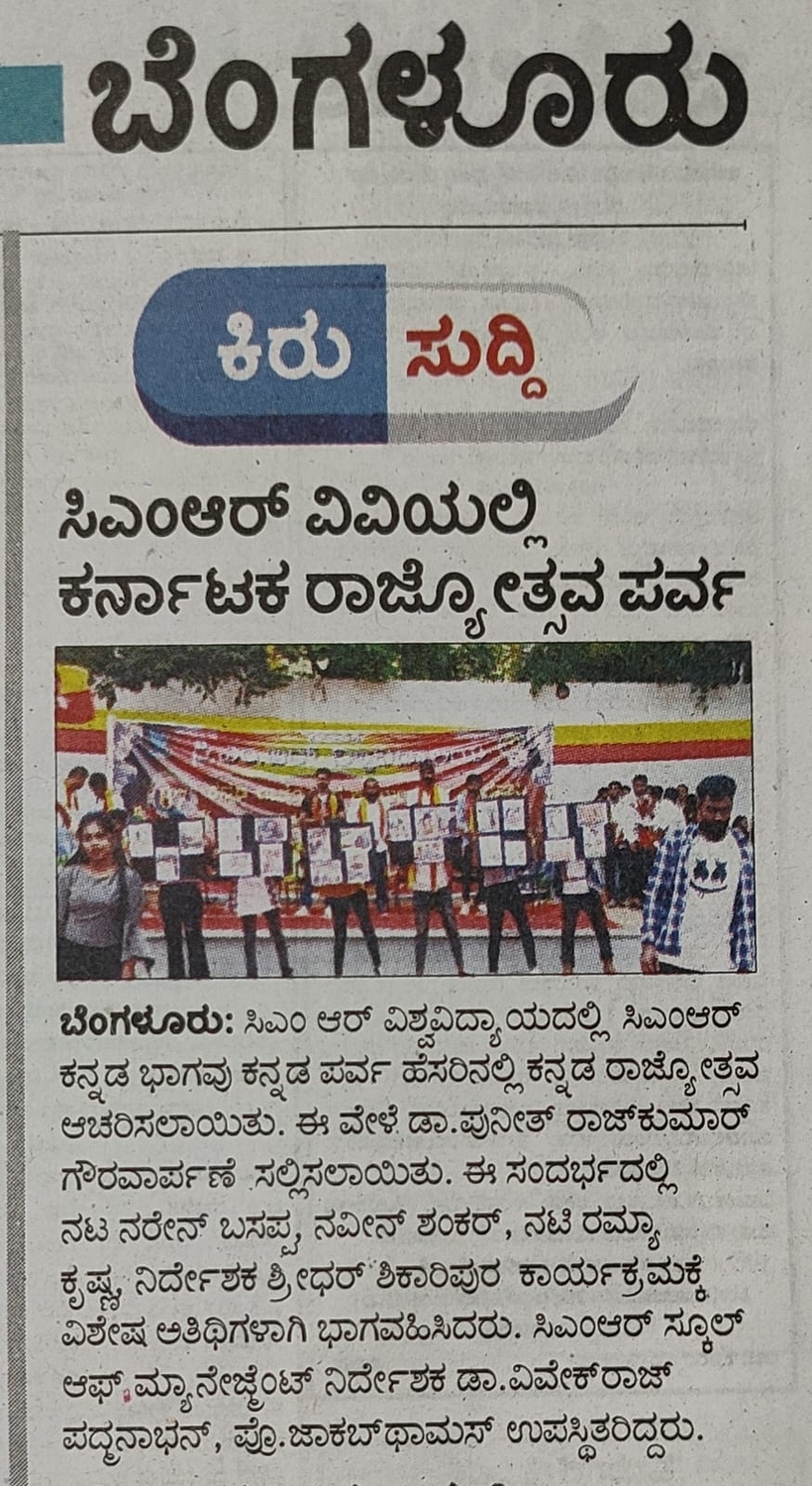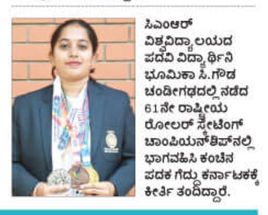 Featured in Bangalore city news |Aryavarth | Xpress Alert | Vartha Bharathi | Udayavani | Udayavahini | Udayakala | Twitter- CMRU | TVA News | Shiksha | Sanjevani | Sanjevani, pg 03 | sanjevani CMRU Online | Sanje Samaya | Samyuktha Karnataka | Samachar Parivartan | Right Info | Prajavni | news 8 | Madhyamam Listing | Hosadigantha | Higher Education Digest-CMRU | Education World | Eanadu | DD News | CMR Vijayavani | Bangalore Dhinamani | Bangalore Dhinamani