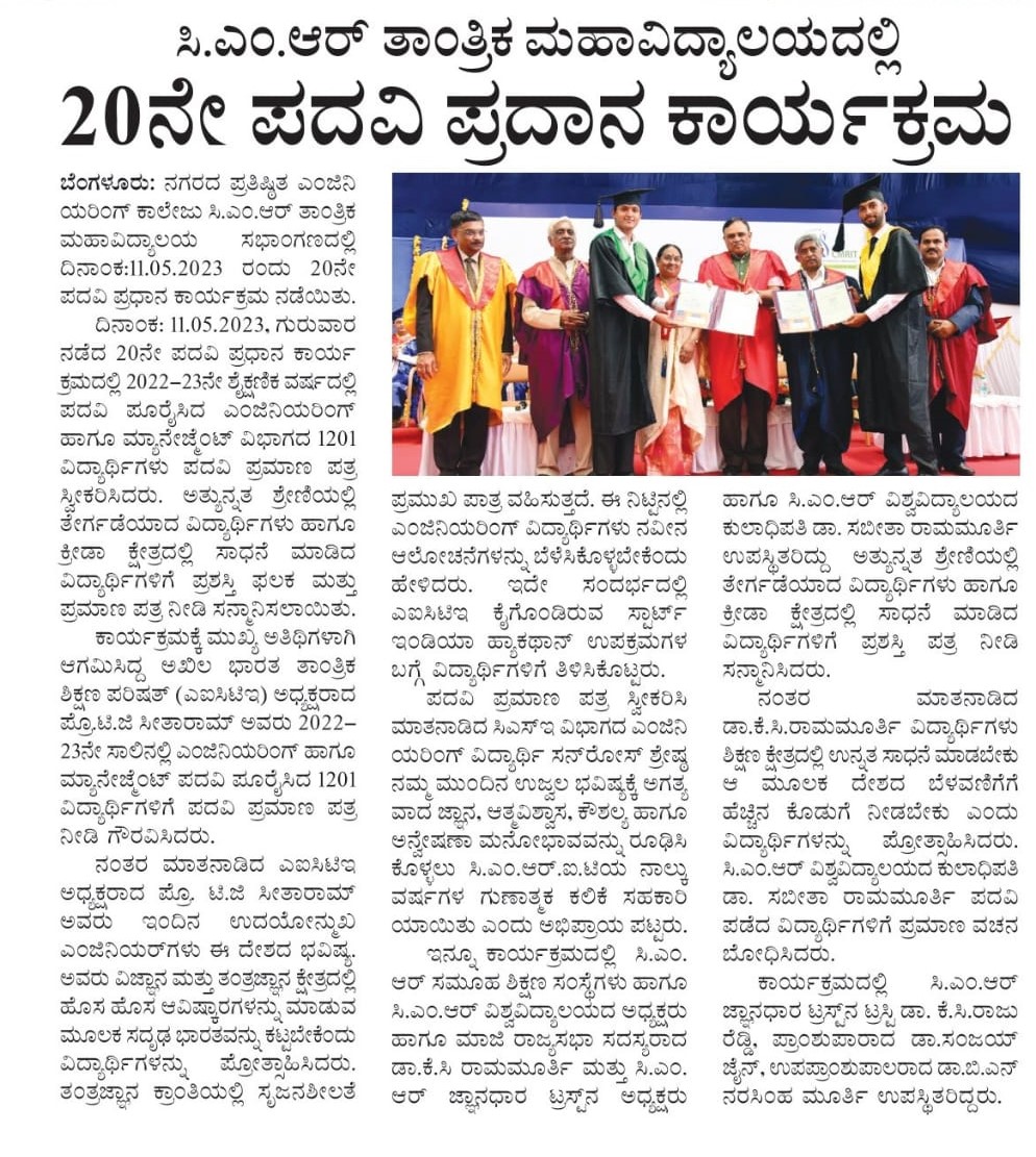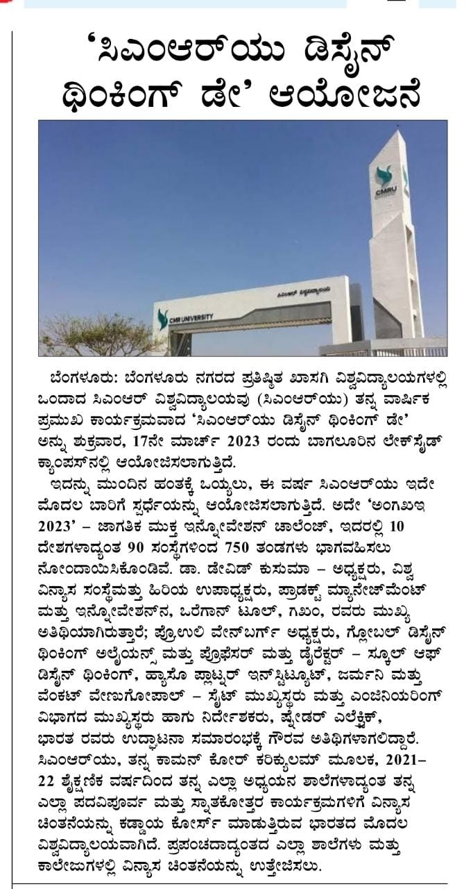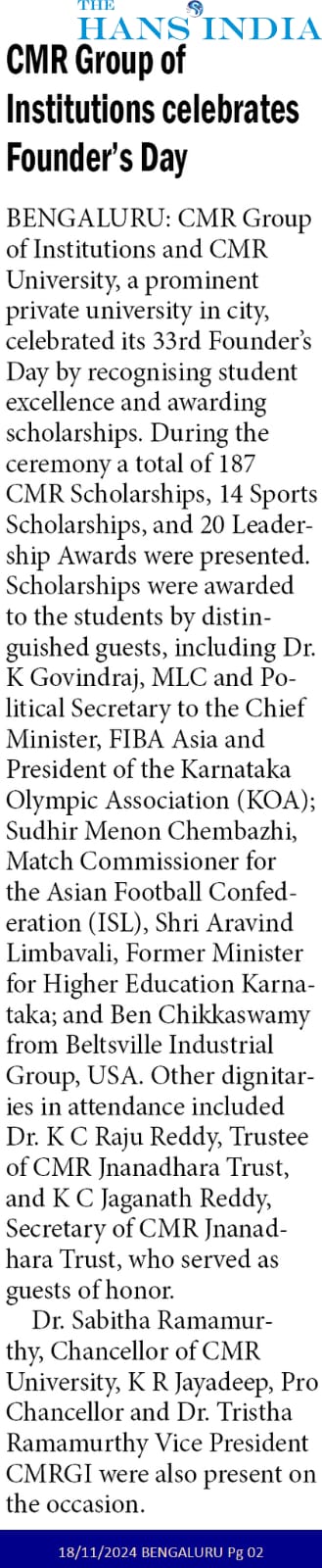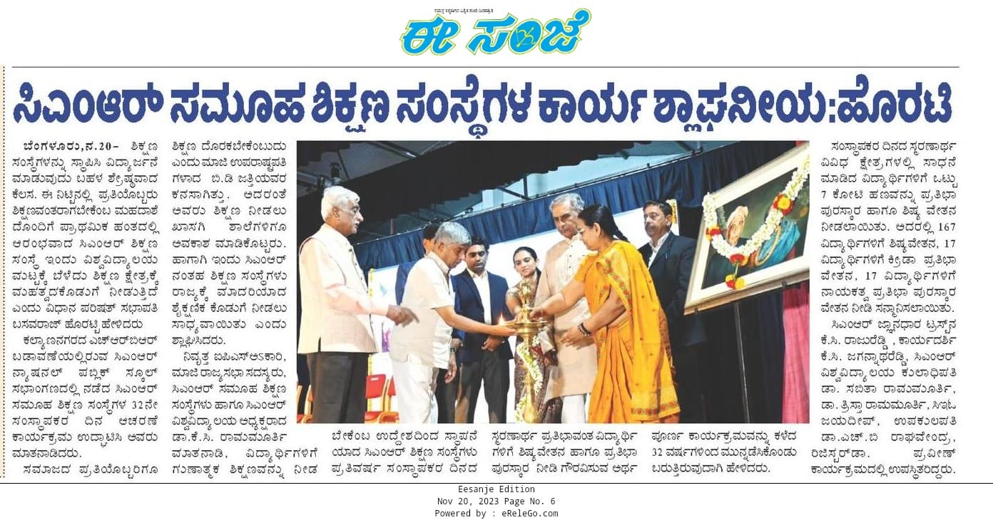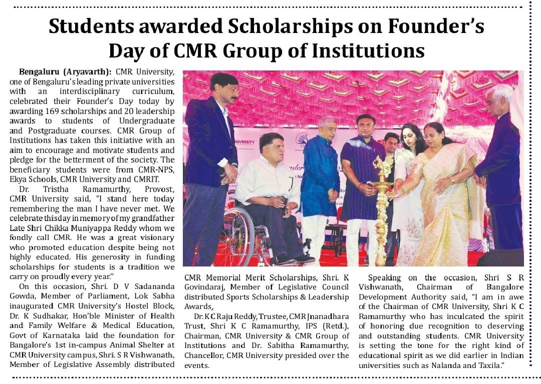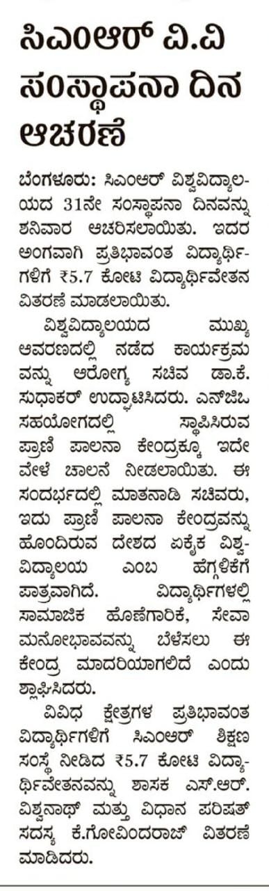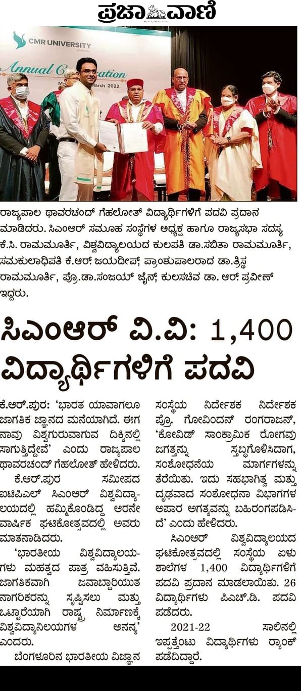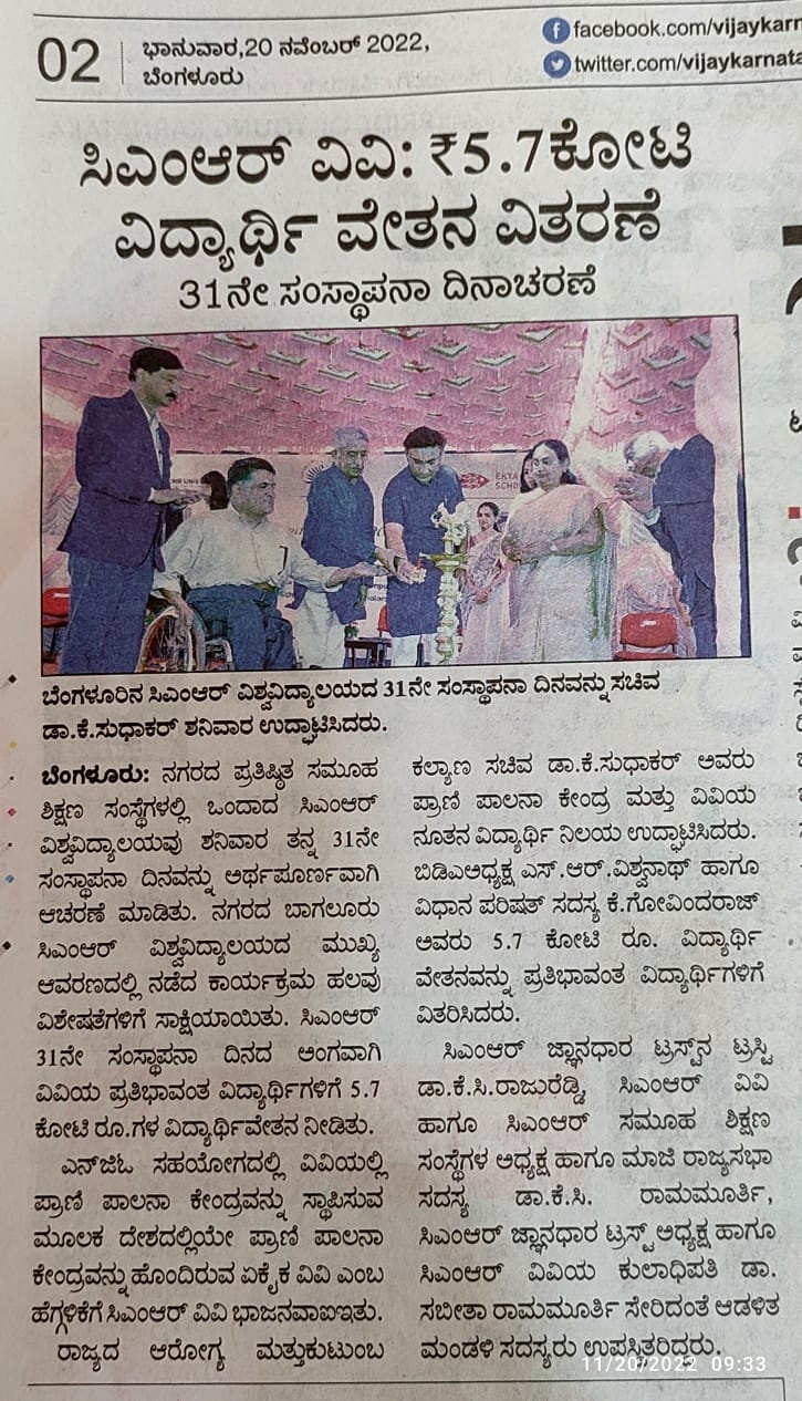 Featured in Bangalore city news |Aryavarth | Xpress Alert | Vartha Bharathi | Udayavani | Udayavahini | Udayakala | Twitter- CMRU | TVA News | Shiksha | Sanjevani | Sanjevani, pg 03 | sanjevani CMRU Online | Sanje Samaya | Samyuktha Karnataka | Samachar Parivartan | Right Info | Prajavni | news 8 | Madhyamam Listing | Hosadigantha | Higher Education Digest-CMRU | Education World | Eanadu | DD News | CMR Vijayavani | Bangalore Dhinamani | Bangalore Dhinamani