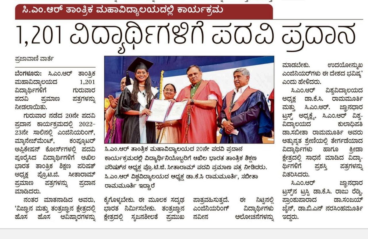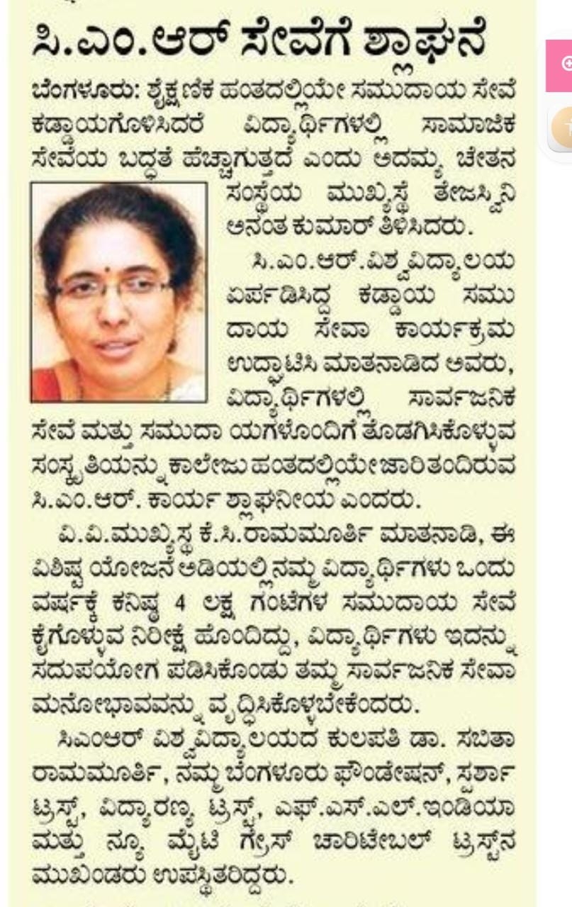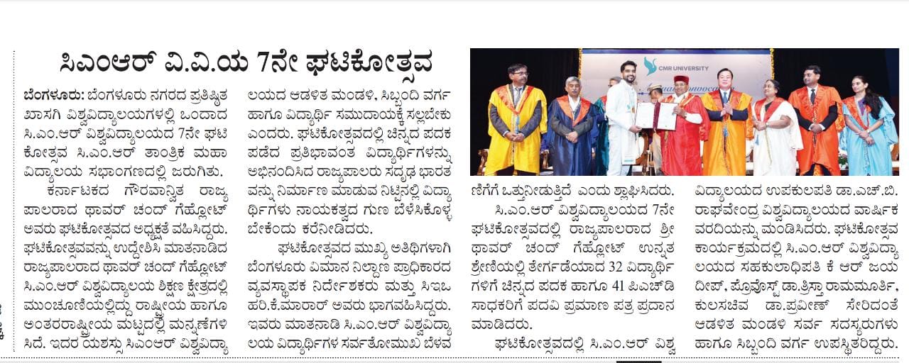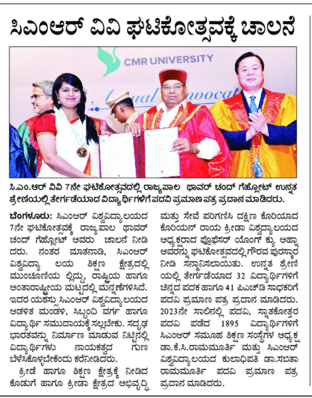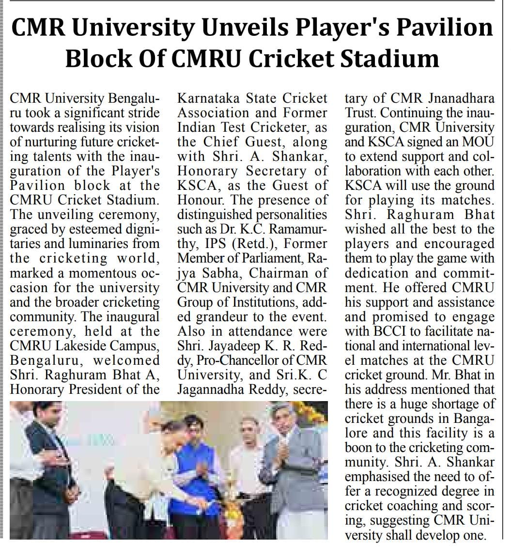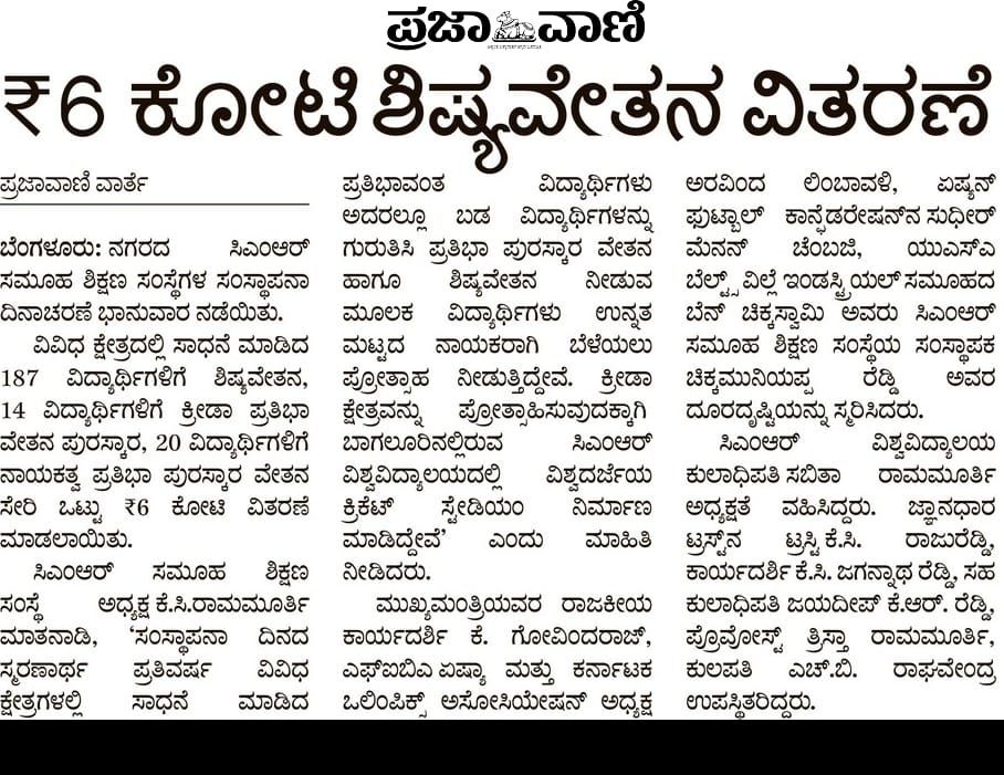 Featured in Bangalore city news |Aryavarth | Xpress Alert | Vartha Bharathi | Udayavani | Udayavahini | Udayakala | Twitter- CMRU | TVA News | Shiksha | Sanjevani | Sanjevani, pg 03 | sanjevani CMRU Online | Sanje Samaya | Samyuktha Karnataka | Samachar Parivartan | Right Info | Prajavni | news 8 | Madhyamam Listing | Hosadigantha | Higher Education Digest-CMRU | Education World | Eanadu | DD News | CMR Vijayavani | Bangalore Dhinamani | Bangalore Dhinamani