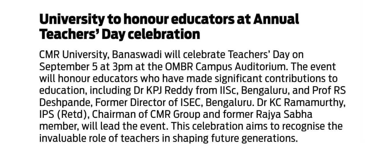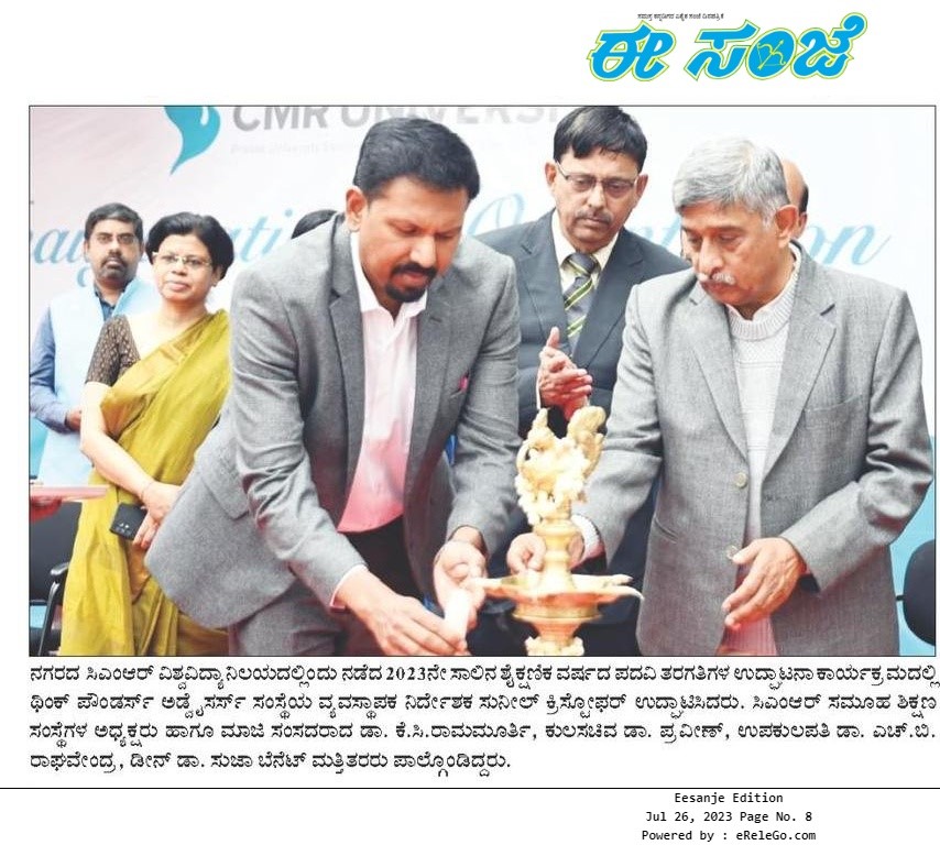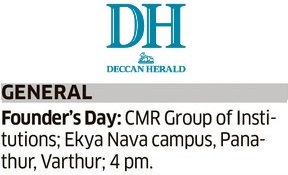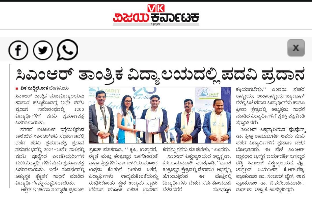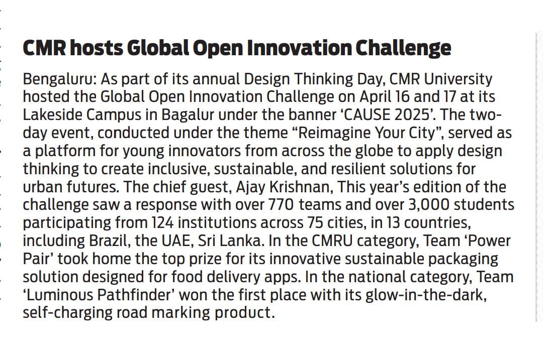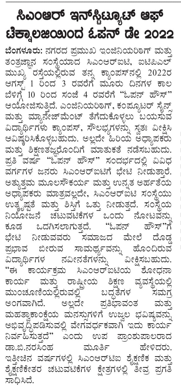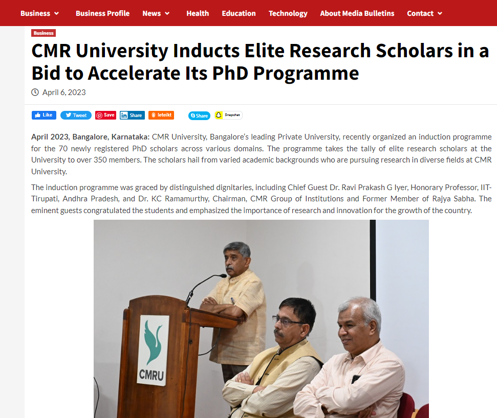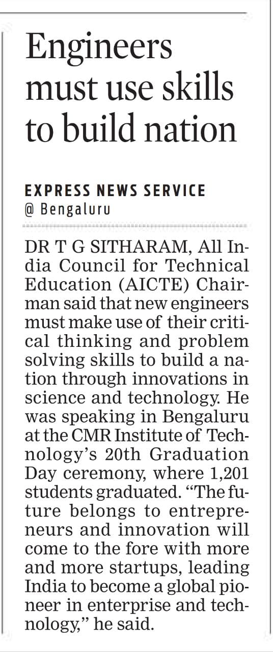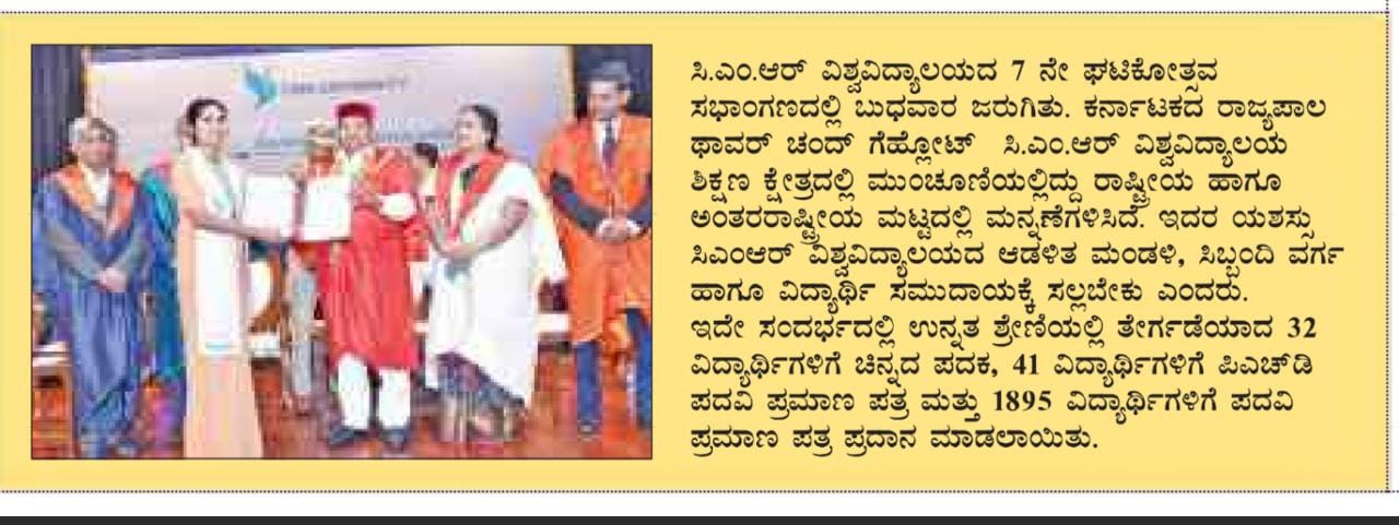 Featured in Bangalore city news |Aryavarth | Xpress Alert | Vartha Bharathi | Udayavani | Udayavahini | Udayakala | Twitter- CMRU | TVA News | Shiksha | Sanjevani | Sanjevani, pg 03 | sanjevani CMRU Online | Sanje Samaya | Samyuktha Karnataka | Samachar Parivartan | Right Info | Prajavni | news 8 | Madhyamam Listing | Hosadigantha | Higher Education Digest-CMRU | Education World | Eanadu | DD News | CMR Vijayavani | Bangalore Dhinamani | Bangalore Dhinamani