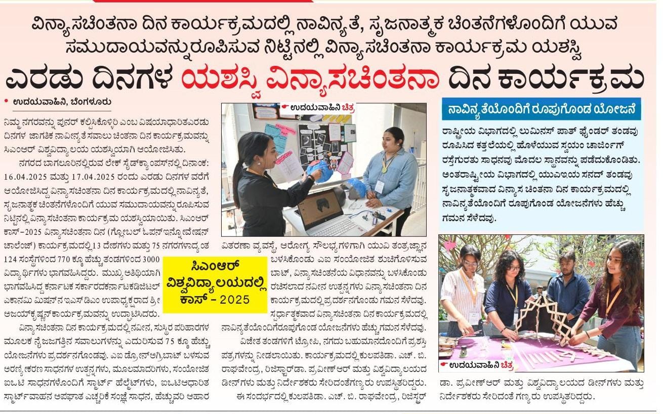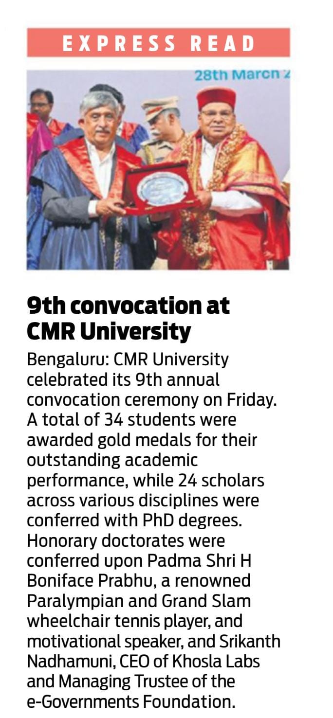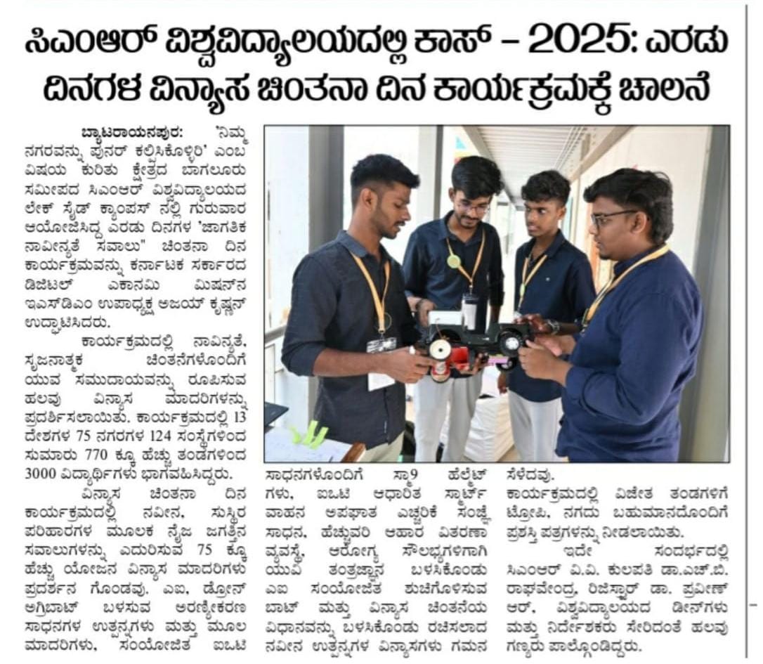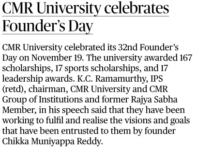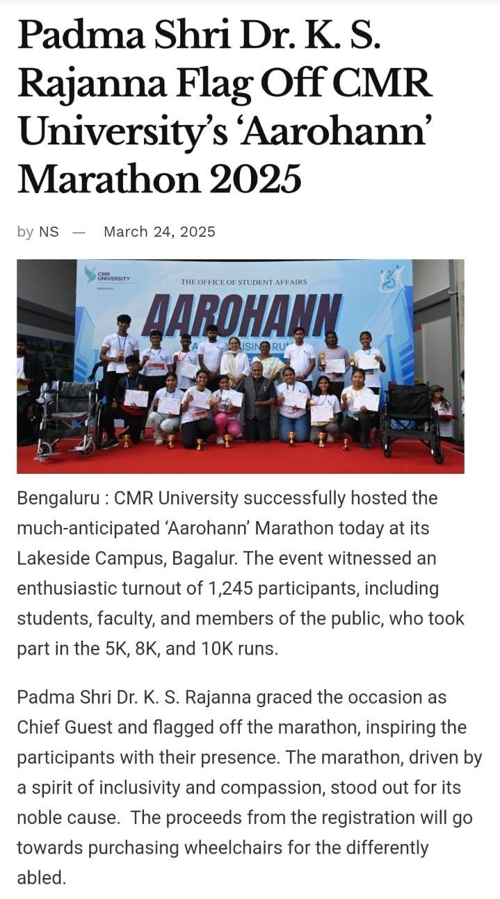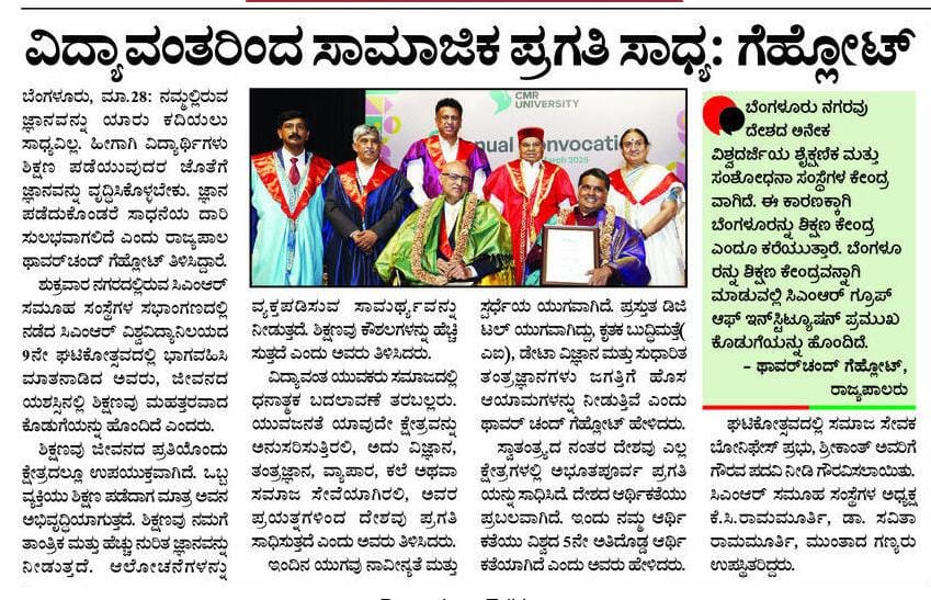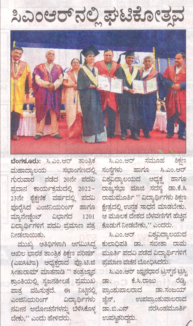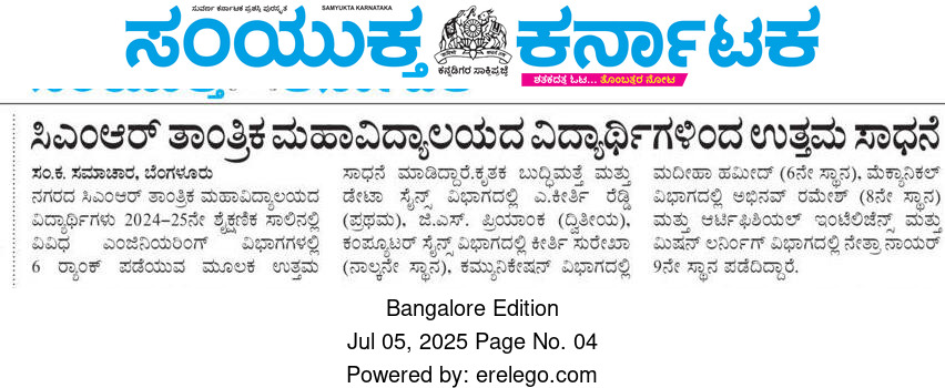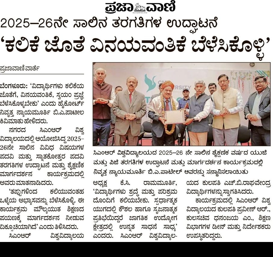 Featured in Bangalore city news |Aryavarth | Xpress Alert | Vartha Bharathi | Udayavani | Udayavahini | Udayakala | Twitter- CMRU | TVA News | Shiksha | Sanjevani | Sanjevani, pg 03 | sanjevani CMRU Online | Sanje Samaya | Samyuktha Karnataka | Samachar Parivartan | Right Info | Prajavni | news 8 | Madhyamam Listing | Hosadigantha | Higher Education Digest-CMRU | Education World | Eanadu | DD News | CMR Vijayavani | Bangalore Dhinamani | Bangalore Dhinamani