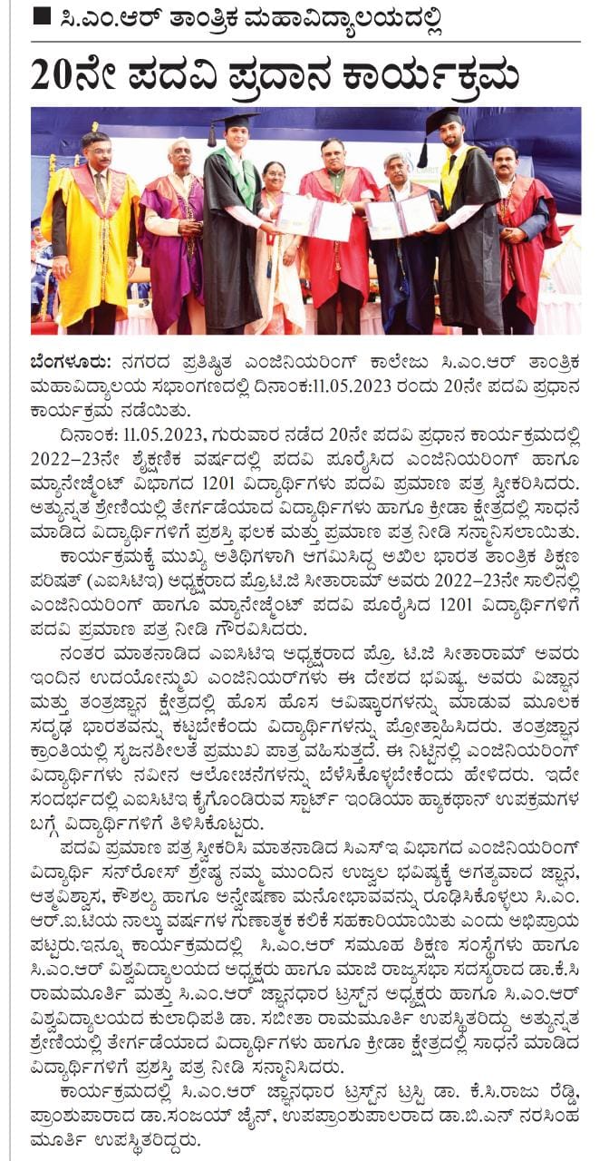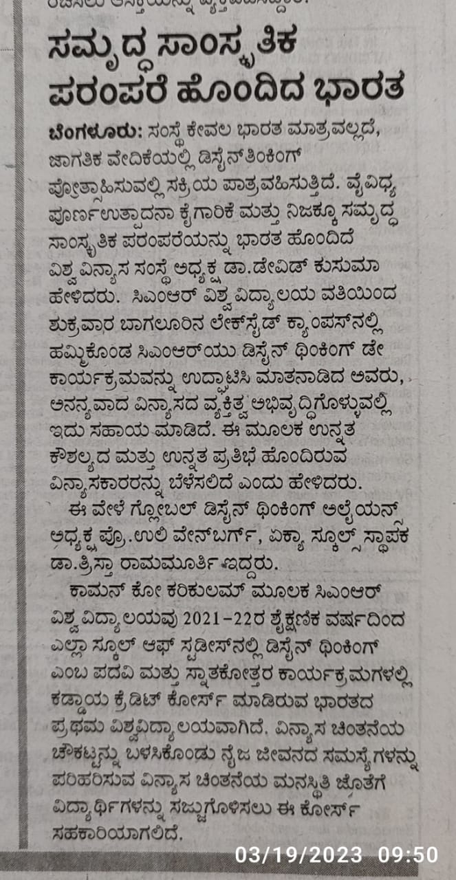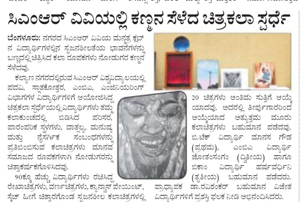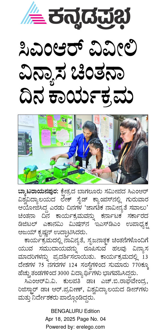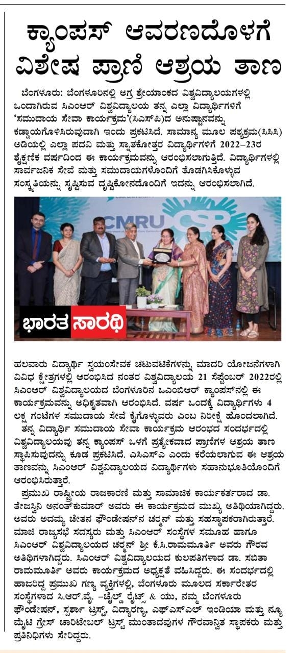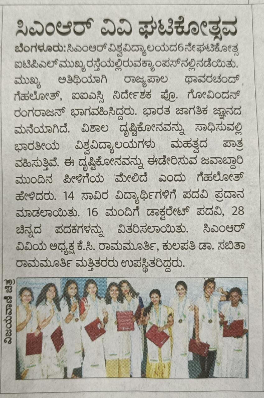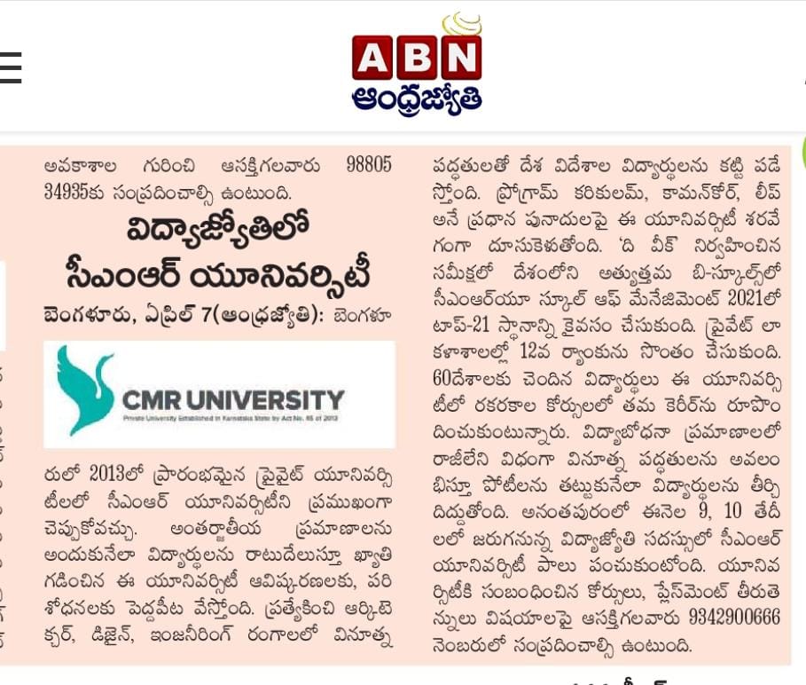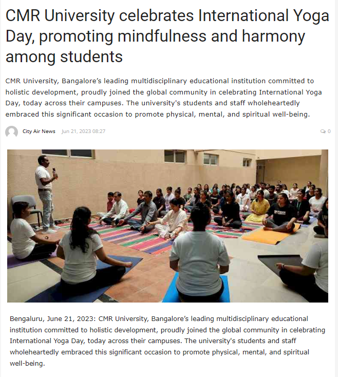 Featured in Bangalore city news |Aryavarth | Xpress Alert | Vartha Bharathi | Udayavani | Udayavahini | Udayakala | Twitter- CMRU | TVA News | Shiksha | Sanjevani | Sanjevani, pg 03 | sanjevani CMRU Online | Sanje Samaya | Samyuktha Karnataka | Samachar Parivartan | Right Info | Prajavni | news 8 | Madhyamam Listing | Hosadigantha | Higher Education Digest-CMRU | Education World | Eanadu | DD News | CMR Vijayavani | Bangalore Dhinamani | Bangalore Dhinamani
