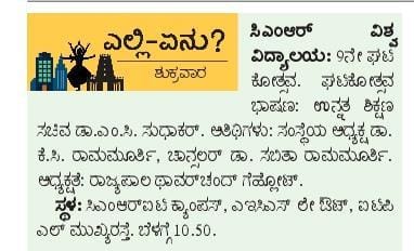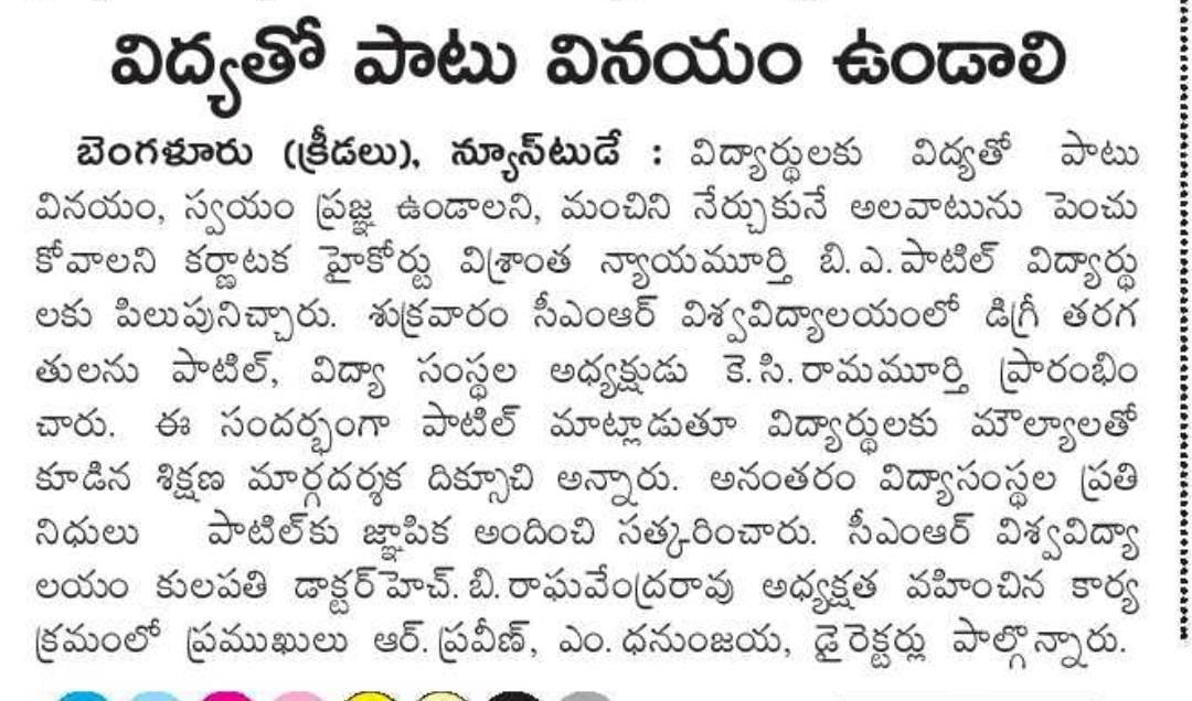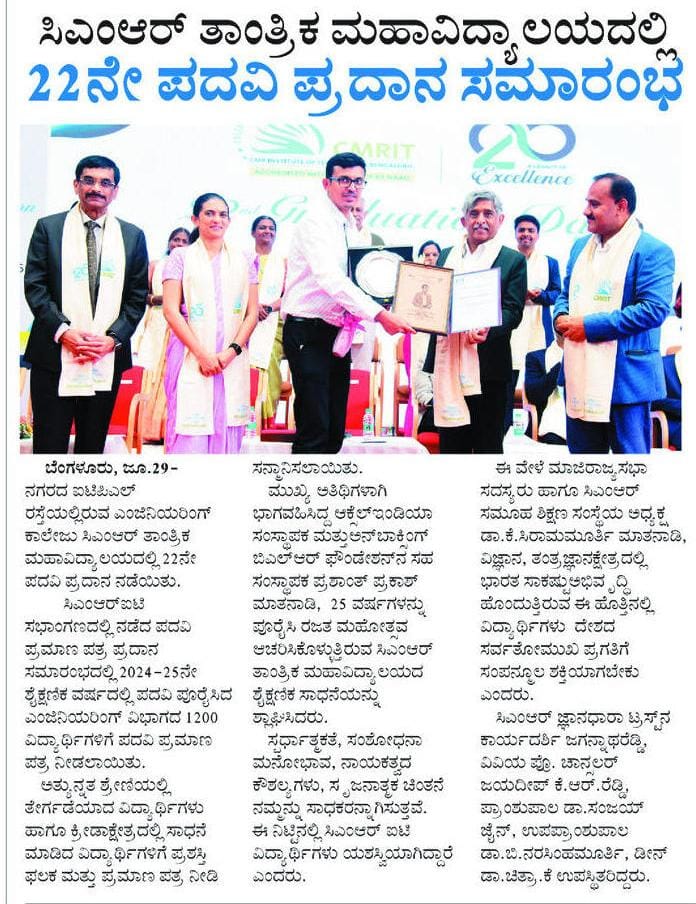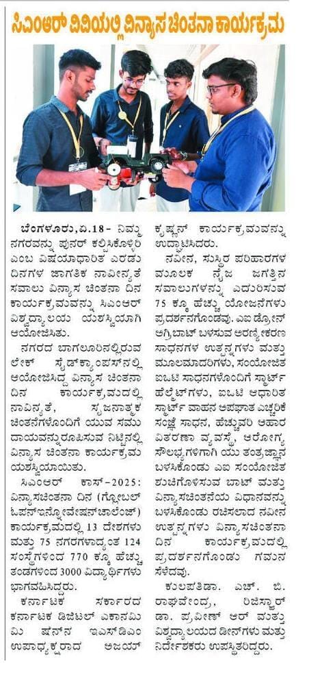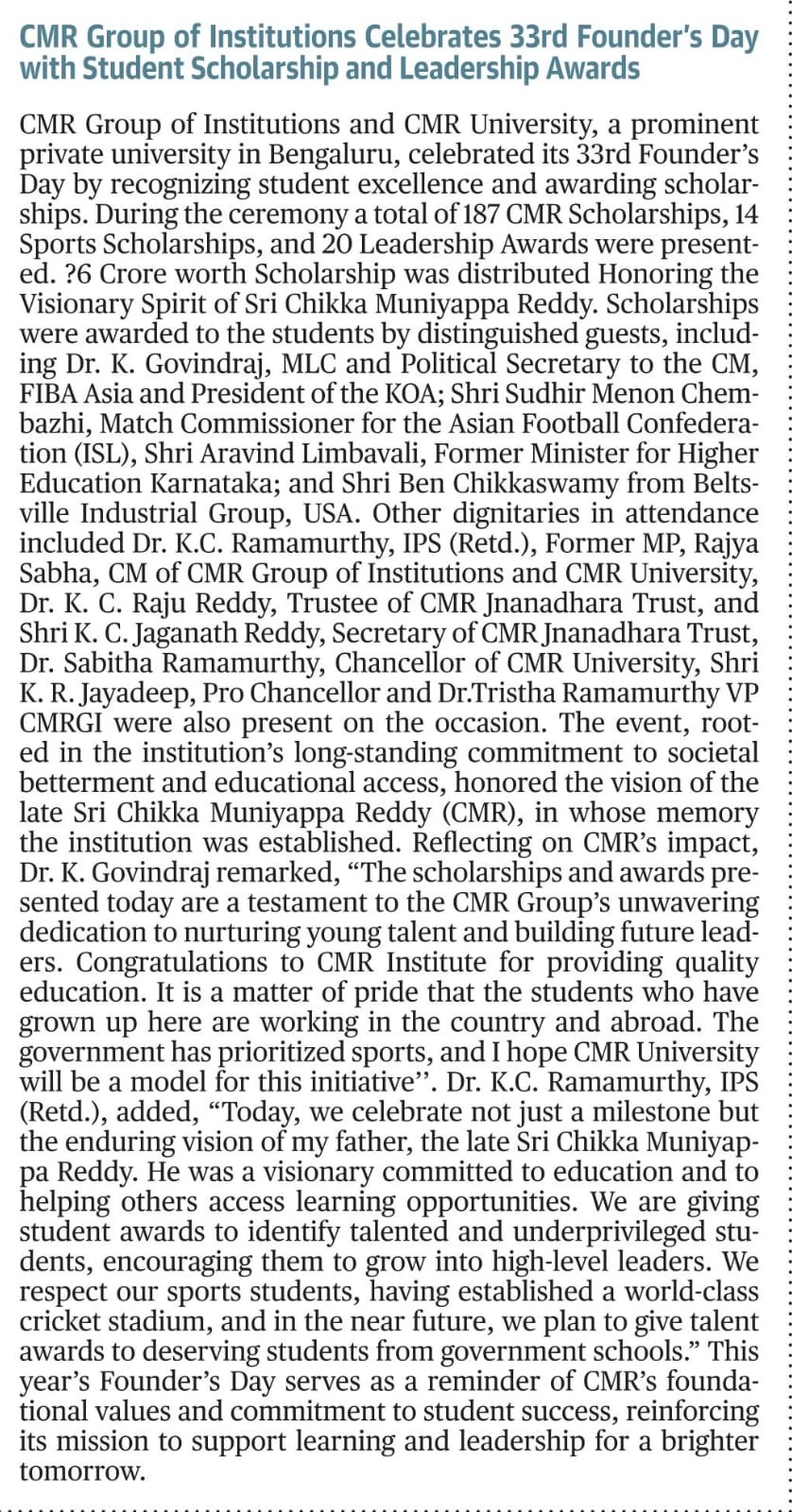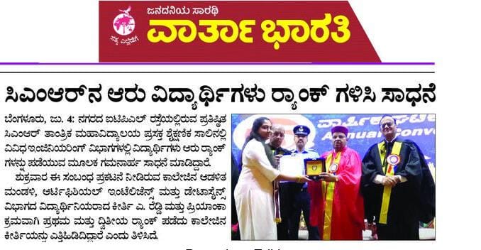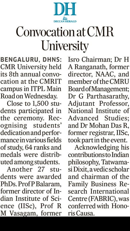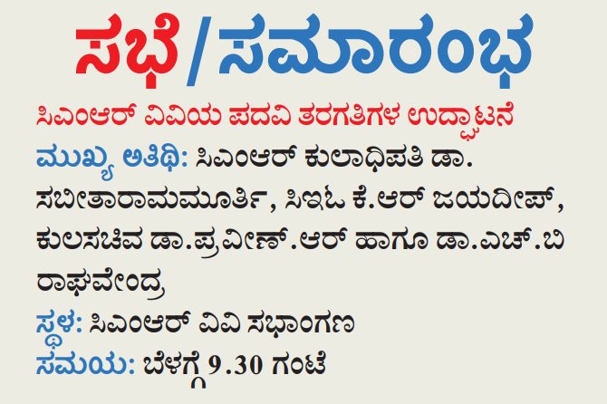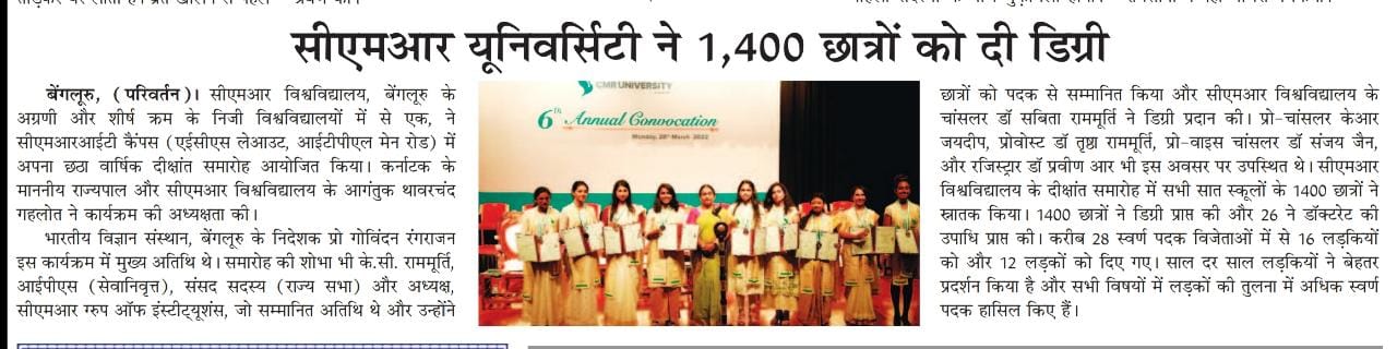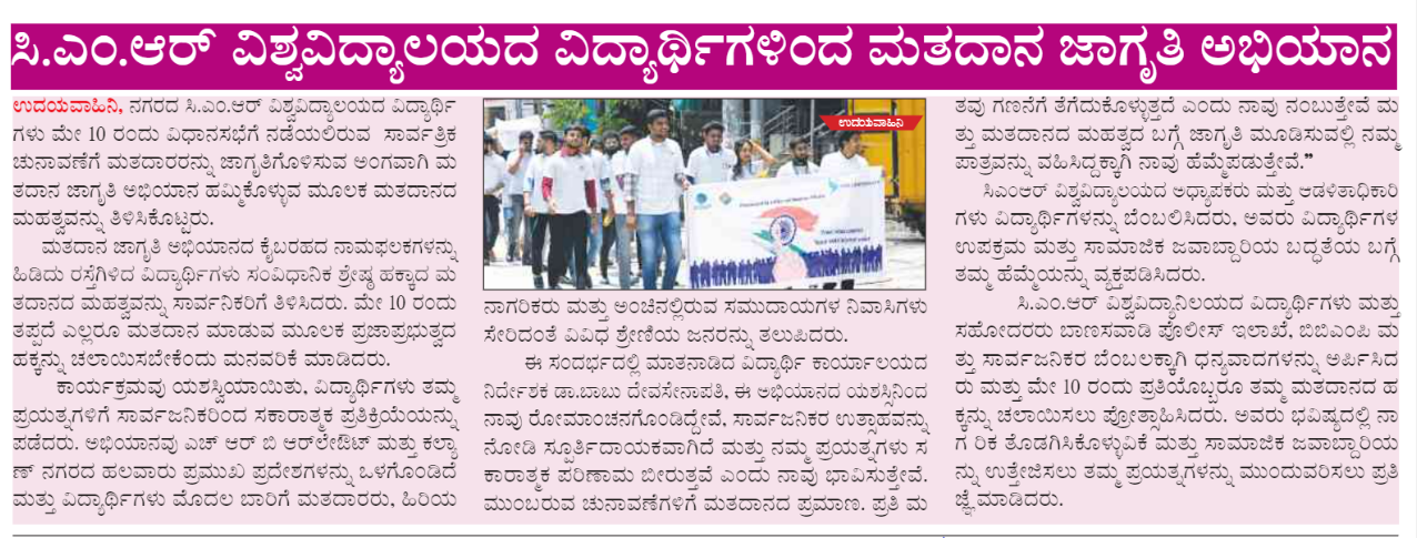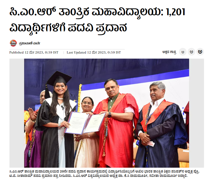 Featured in Bangalore city news |Aryavarth | Xpress Alert | Vartha Bharathi | Udayavani | Udayavahini | Udayakala | Twitter- CMRU | TVA News | Shiksha | Sanjevani | Sanjevani, pg 03 | sanjevani CMRU Online | Sanje Samaya | Samyuktha Karnataka | Samachar Parivartan | Right Info | Prajavni | news 8 | Madhyamam Listing | Hosadigantha | Higher Education Digest-CMRU | Education World | Eanadu | DD News | CMR Vijayavani | Bangalore Dhinamani | Bangalore Dhinamani