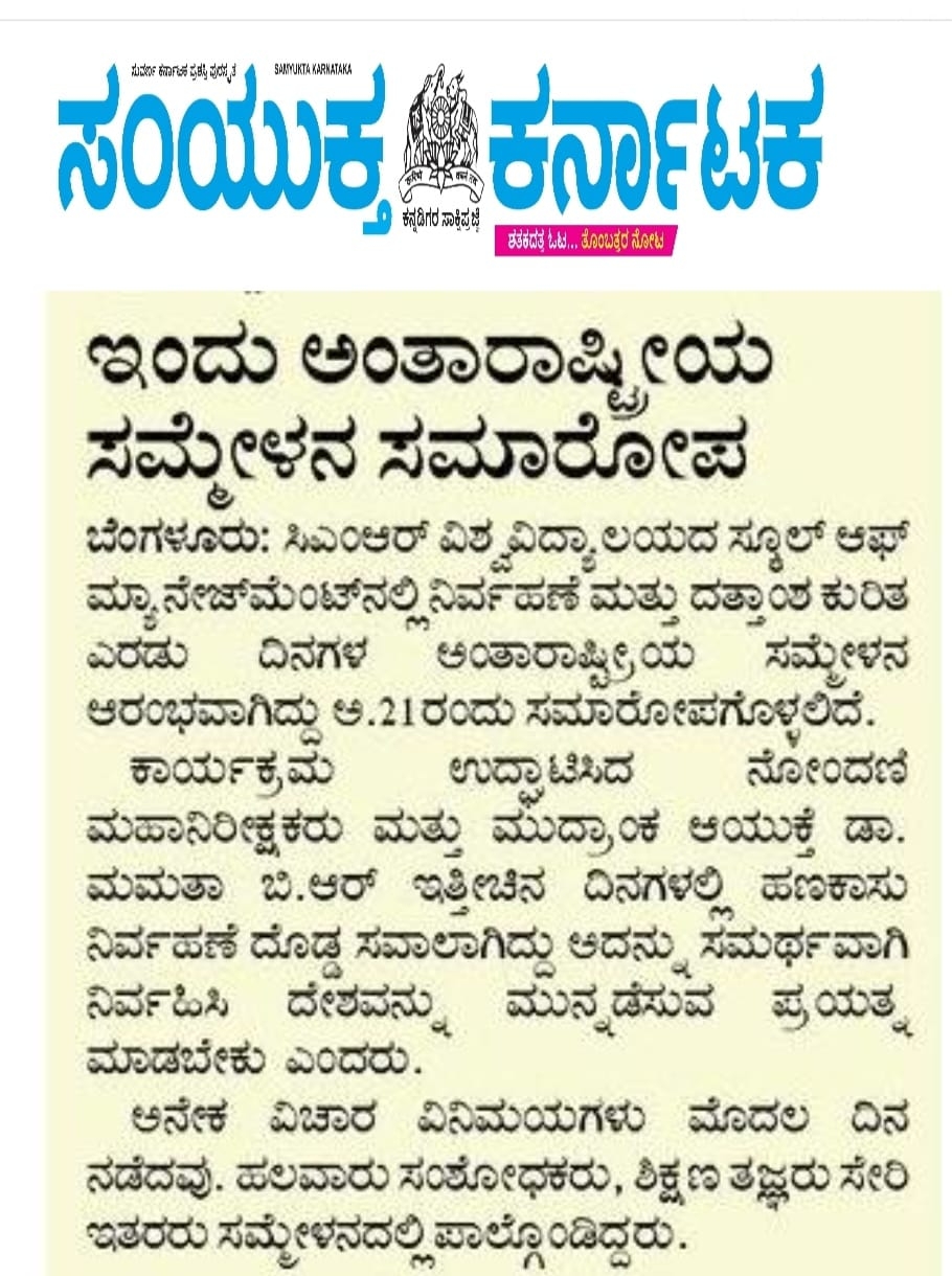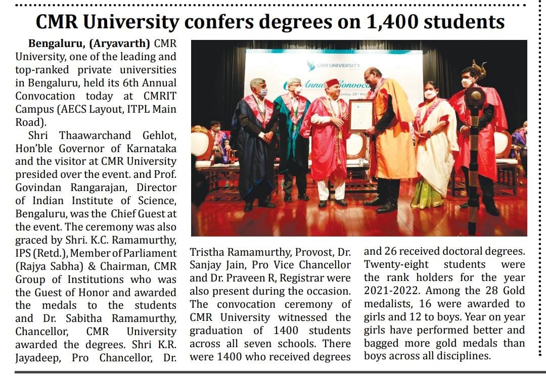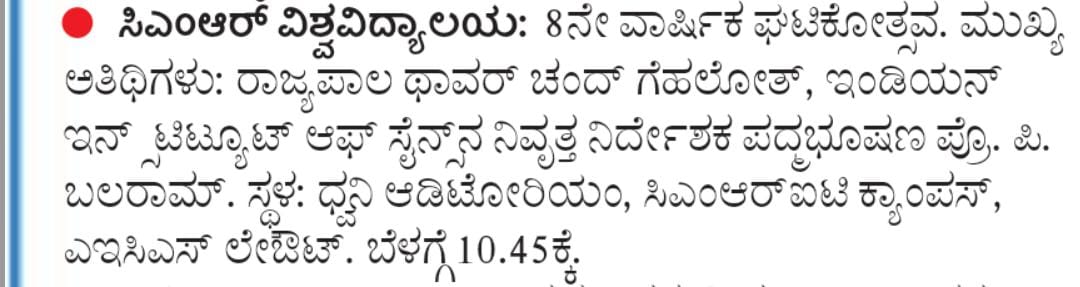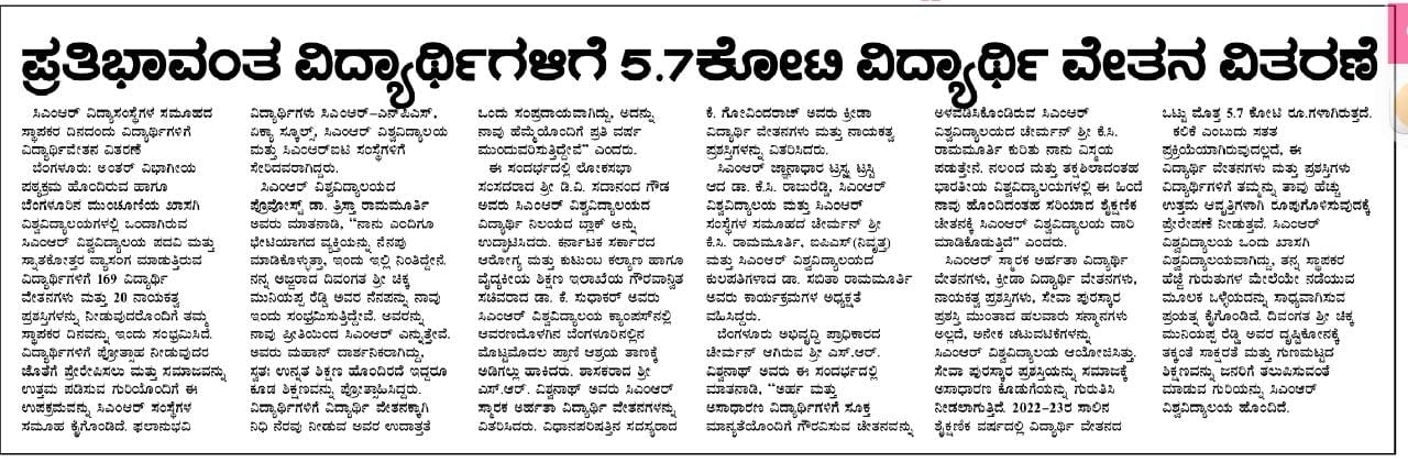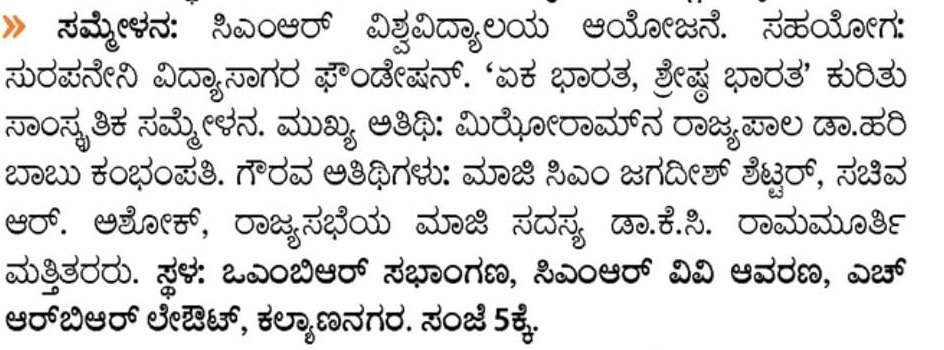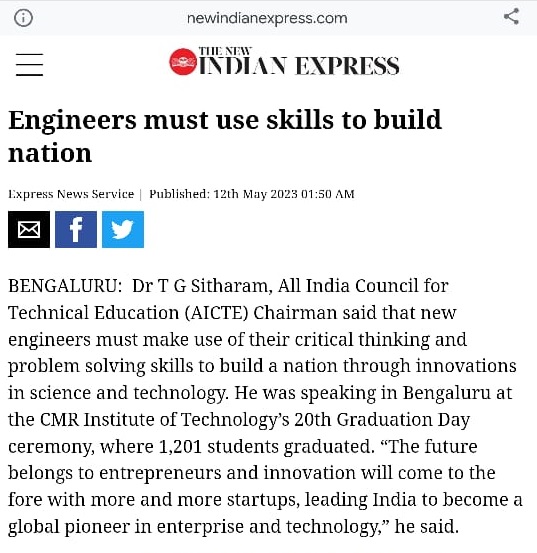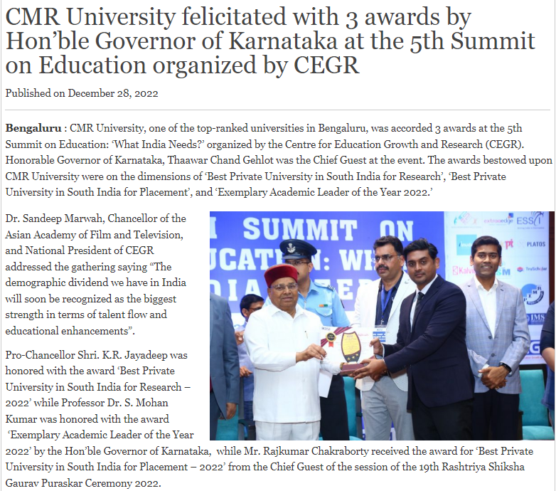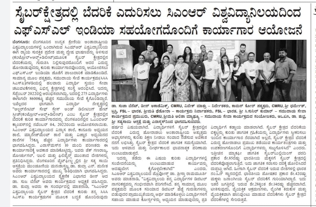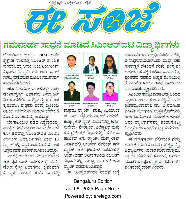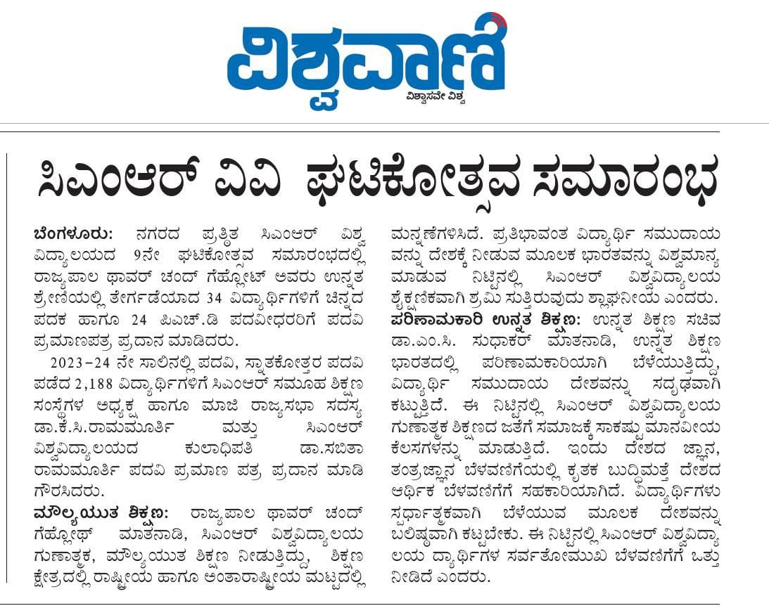 Featured in Bangalore city news |Aryavarth | Xpress Alert | Vartha Bharathi | Udayavani | Udayavahini | Udayakala | Twitter- CMRU | TVA News | Shiksha | Sanjevani | Sanjevani, pg 03 | sanjevani CMRU Online | Sanje Samaya | Samyuktha Karnataka | Samachar Parivartan | Right Info | Prajavni | news 8 | Madhyamam Listing | Hosadigantha | Higher Education Digest-CMRU | Education World | Eanadu | DD News | CMR Vijayavani | Bangalore Dhinamani | Bangalore Dhinamani