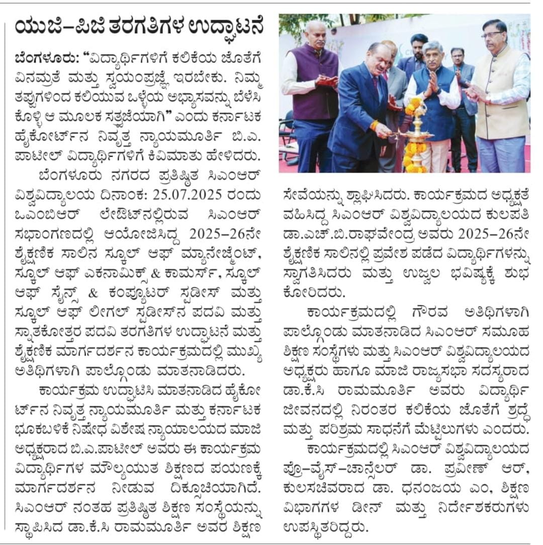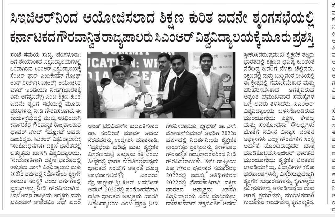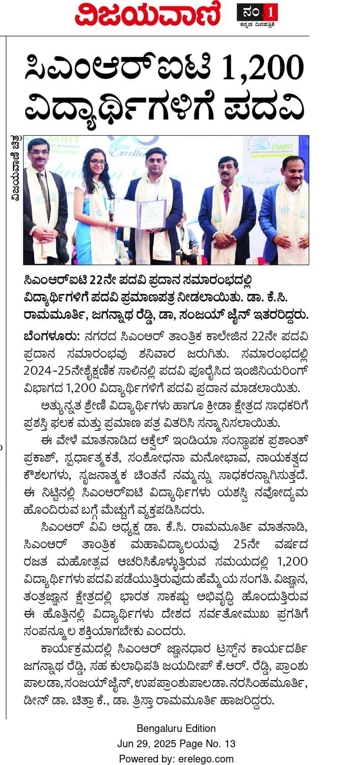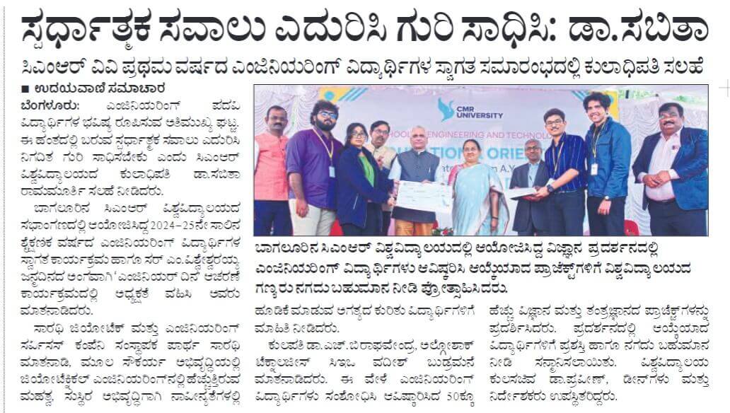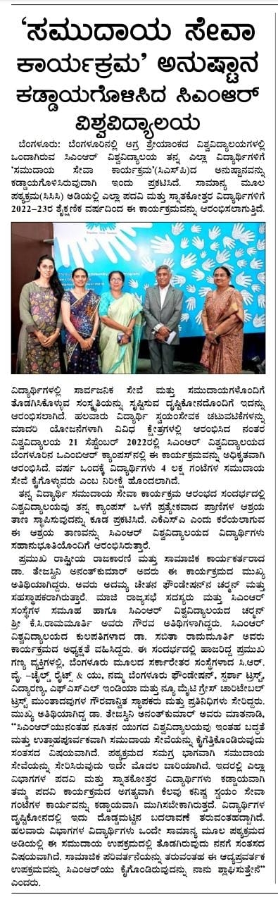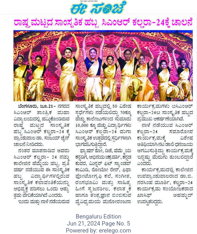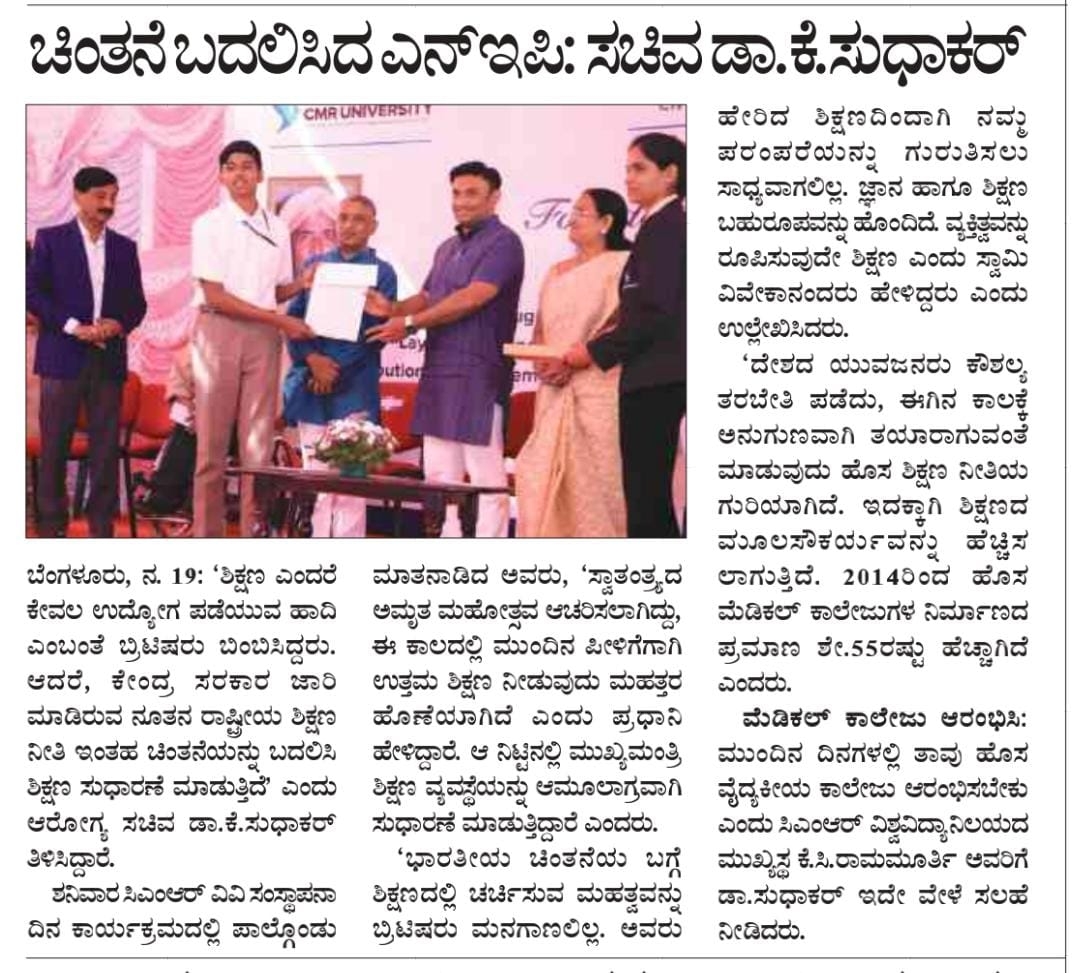 Featured in Bangalore city news |Aryavarth | Xpress Alert | Vartha Bharathi | Udayavani | Udayavahini | Udayakala | Twitter- CMRU | TVA News | Shiksha | Sanjevani | Sanjevani, pg 03 | sanjevani CMRU Online | Sanje Samaya | Samyuktha Karnataka | Samachar Parivartan | Right Info | Prajavni | news 8 | Madhyamam Listing | Hosadigantha | Higher Education Digest-CMRU | Education World | Eanadu | DD News | CMR Vijayavani | Bangalore Dhinamani | Bangalore Dhinamani