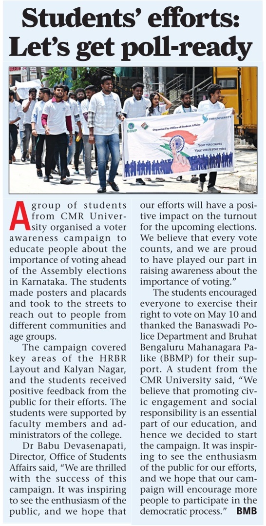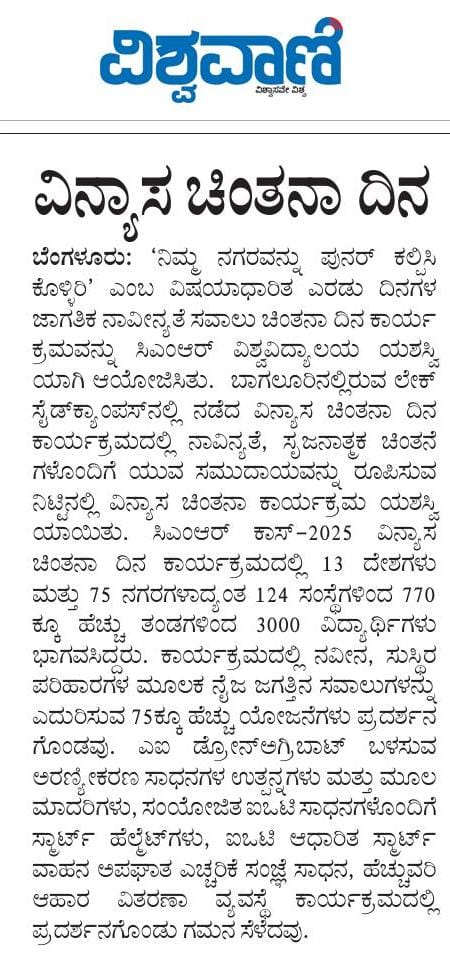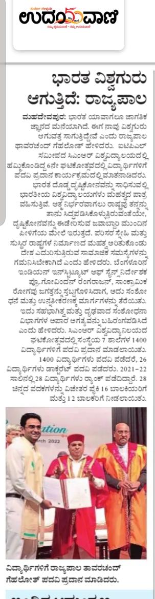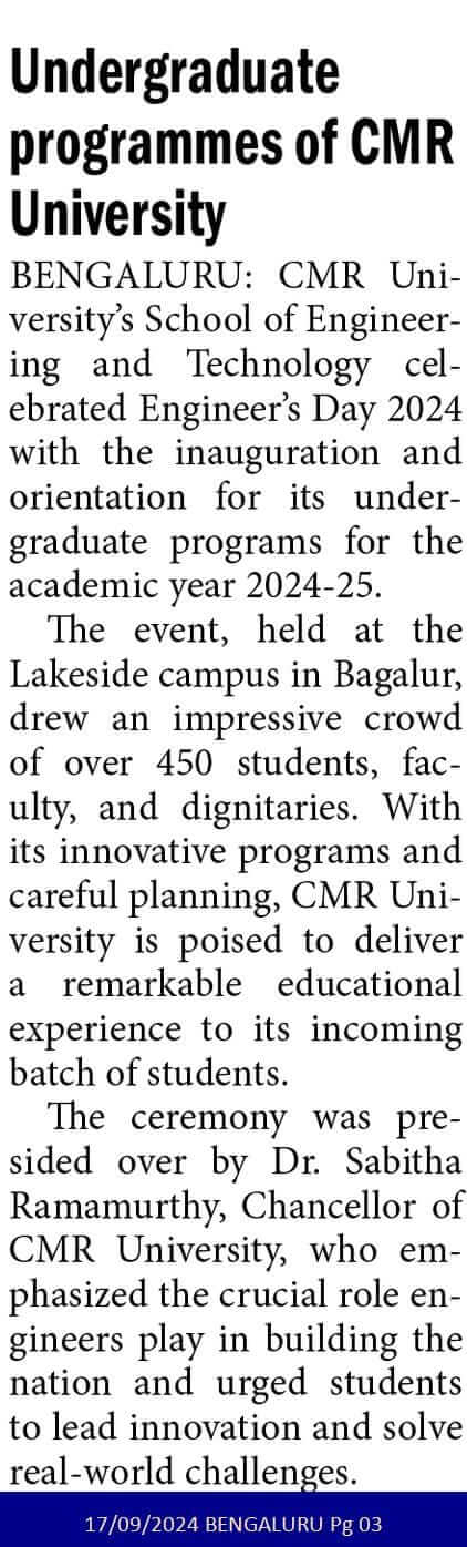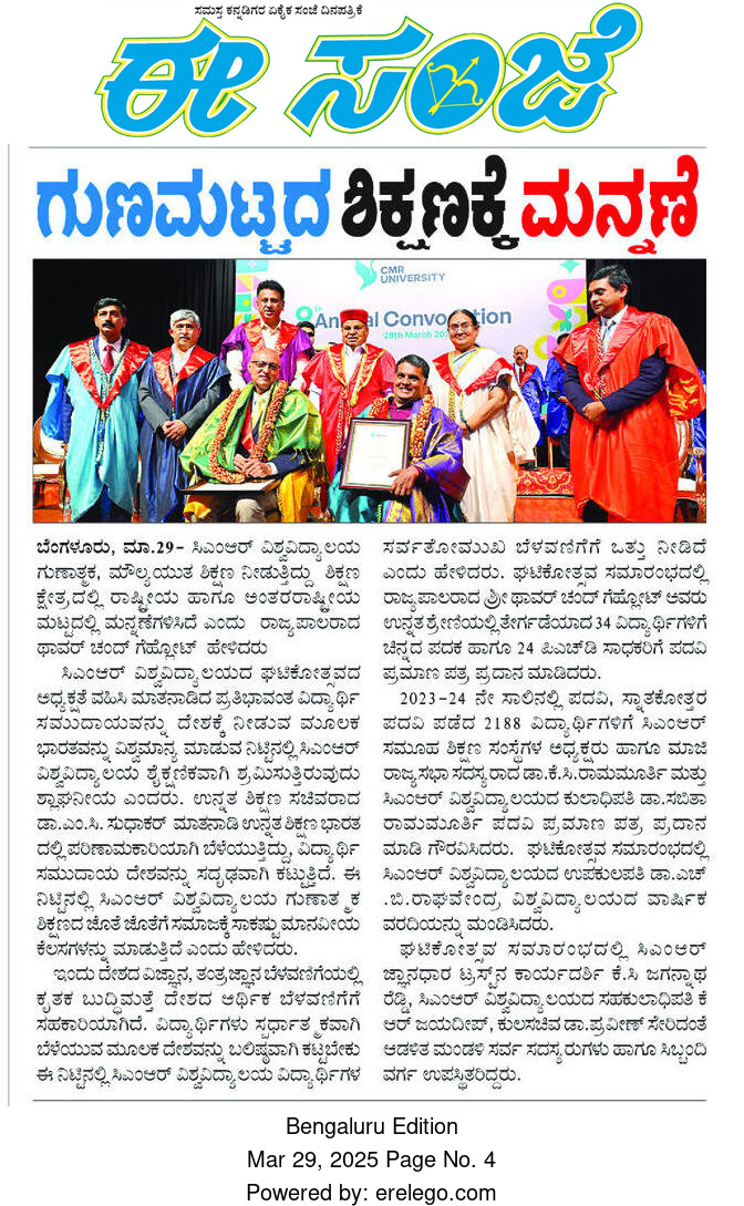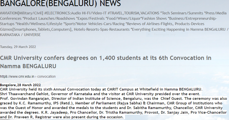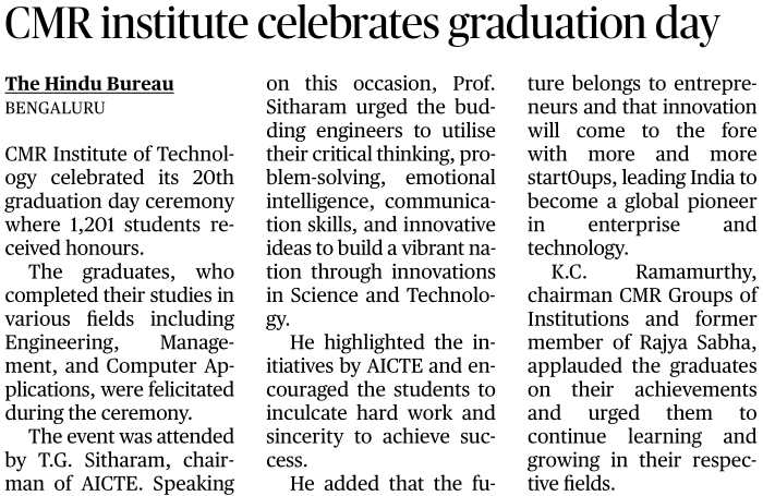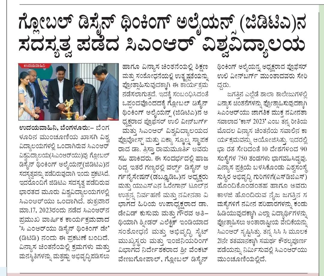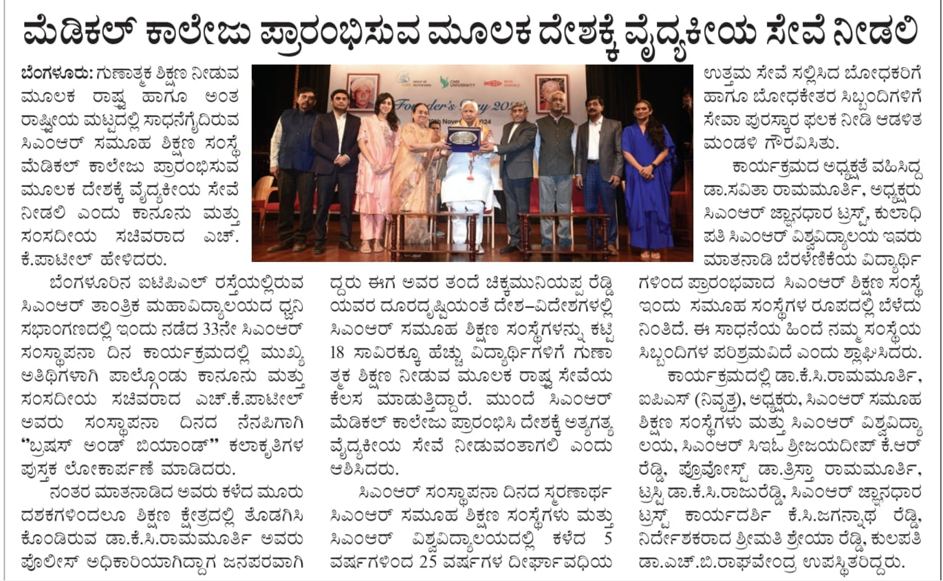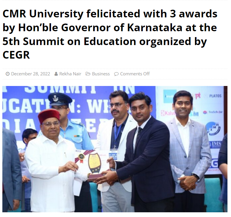 Featured in Bangalore city news |Aryavarth | Xpress Alert | Vartha Bharathi | Udayavani | Udayavahini | Udayakala | Twitter- CMRU | TVA News | Shiksha | Sanjevani | Sanjevani, pg 03 | sanjevani CMRU Online | Sanje Samaya | Samyuktha Karnataka | Samachar Parivartan | Right Info | Prajavni | news 8 | Madhyamam Listing | Hosadigantha | Higher Education Digest-CMRU | Education World | Eanadu | DD News | CMR Vijayavani | Bangalore Dhinamani | Bangalore Dhinamani