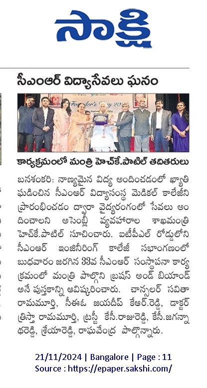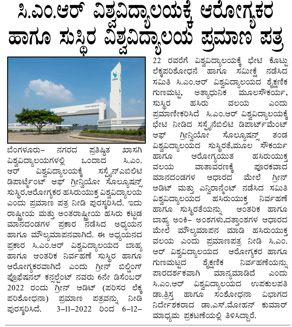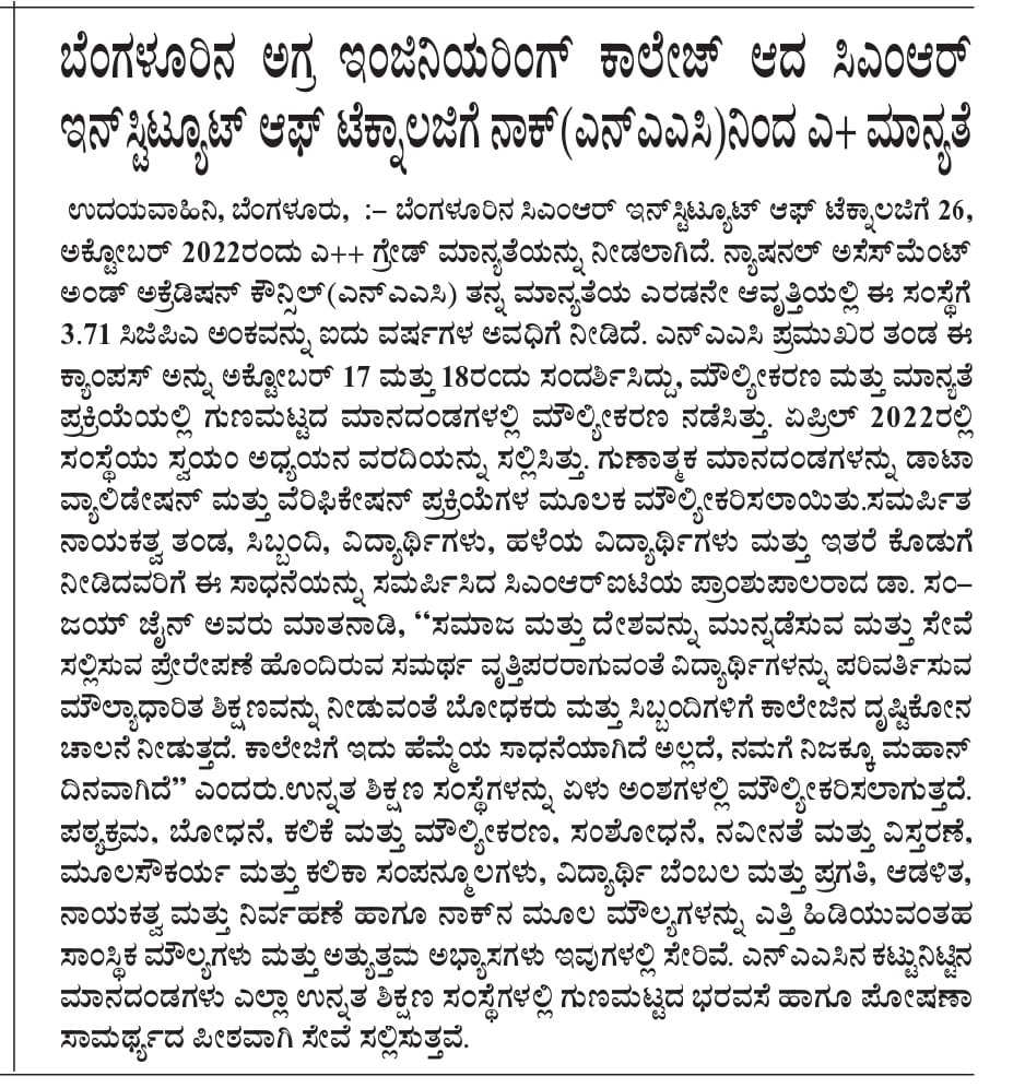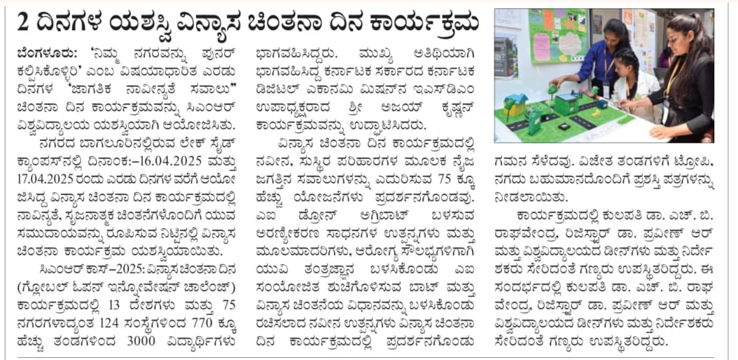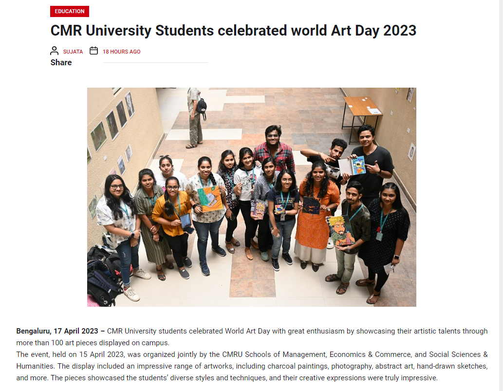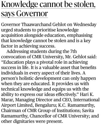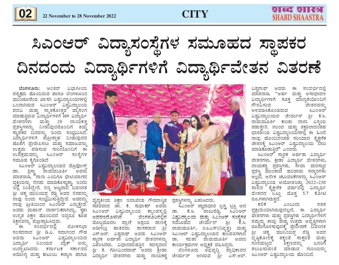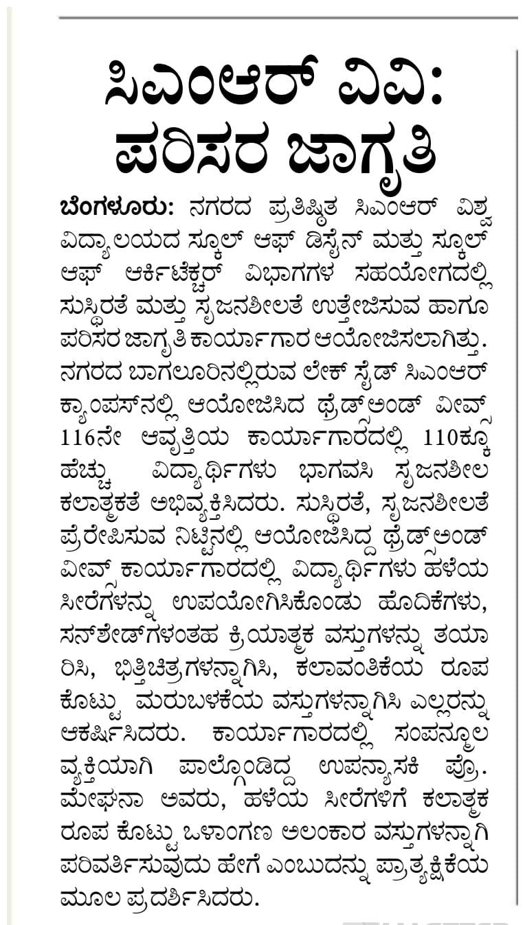Featured in Bangalore city news |Aryavarth | Xpress Alert | Vartha Bharathi | Udayavani | Udayavahini | Udayakala | Twitter- CMRU | TVA News | Shiksha | Sanjevani | Sanjevani, pg 03 | sanjevani CMRU Online | Sanje Samaya | Samyuktha Karnataka | Samachar Parivartan | Right Info | Prajavni | news 8 | Madhyamam Listing | Hosadigantha | Higher Education Digest-CMRU | Education World | Eanadu | DD News | CMR Vijayavani | Bangalore Dhinamani | Bangalore Dhinamani