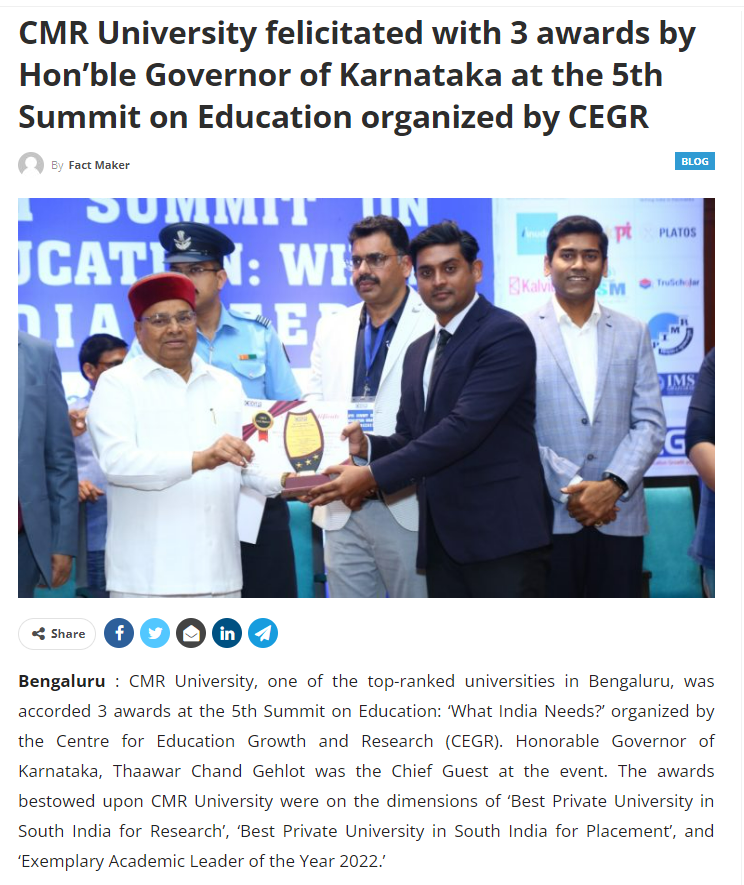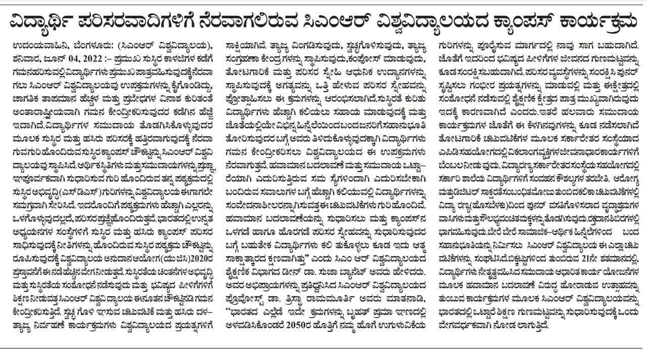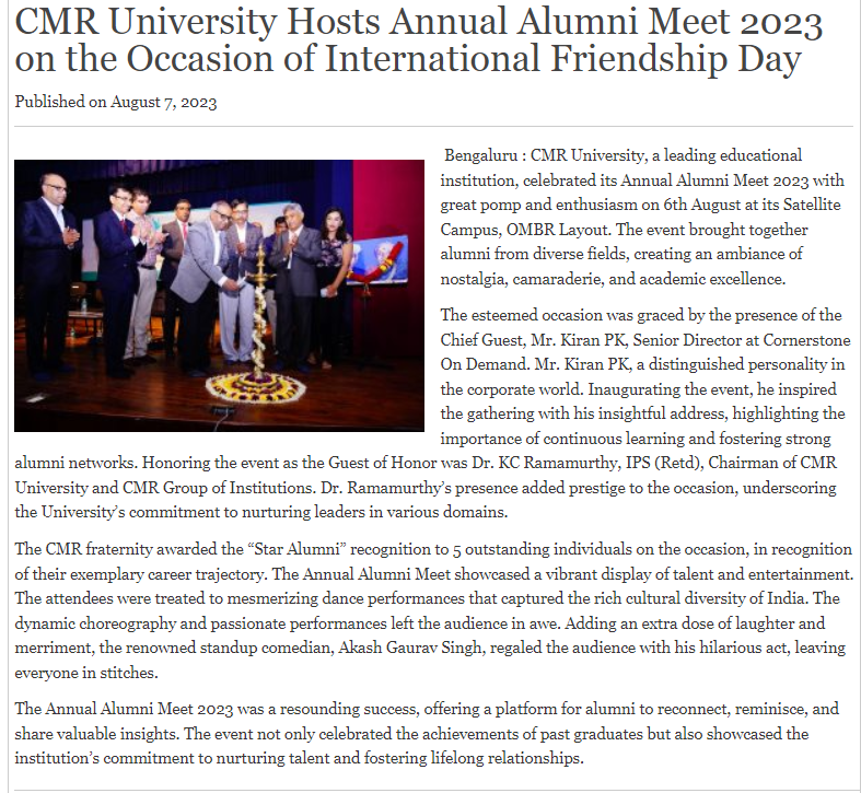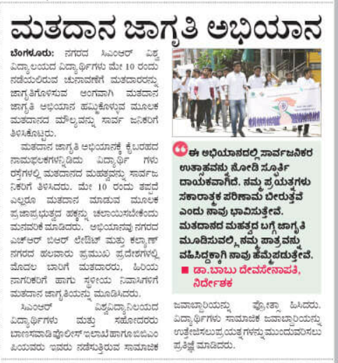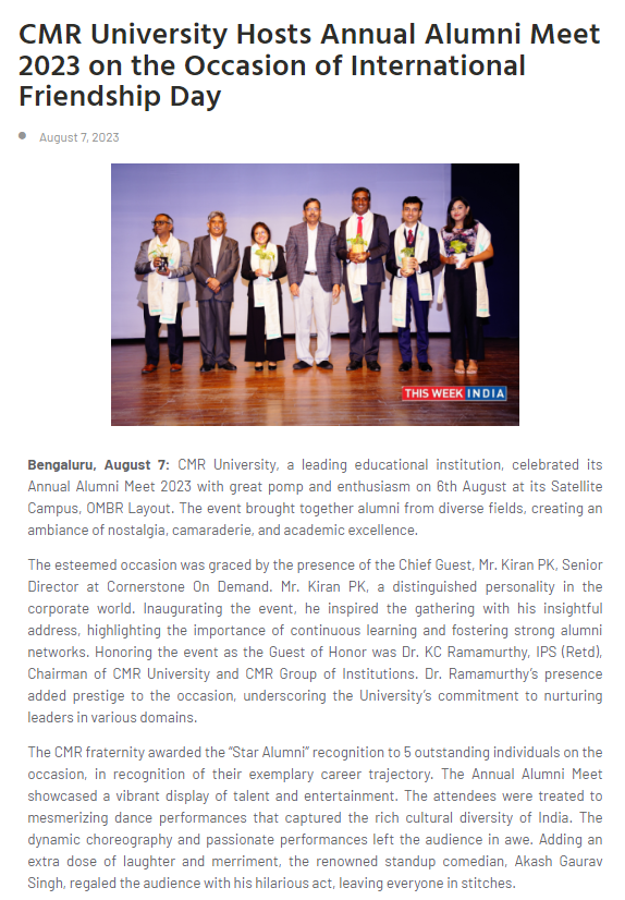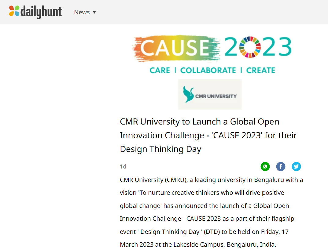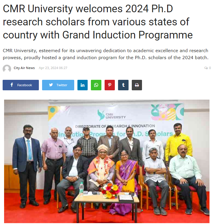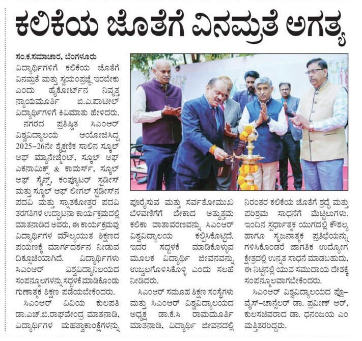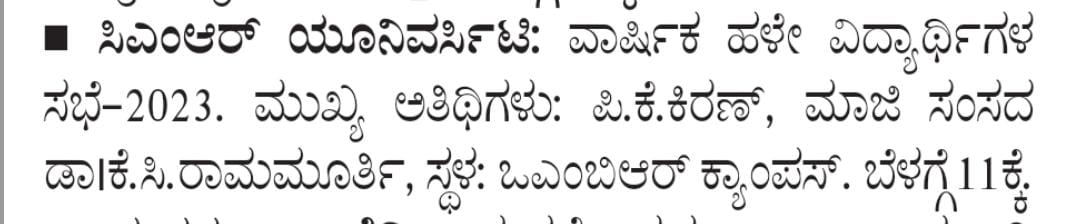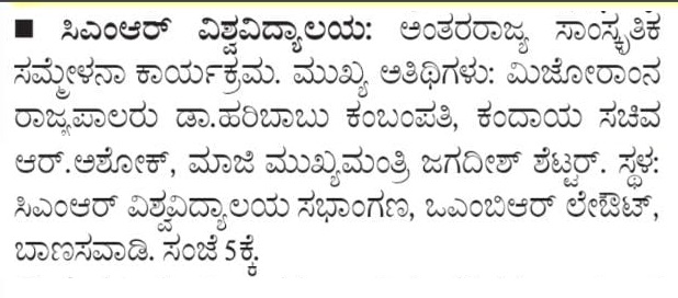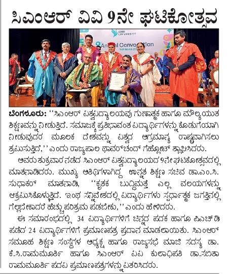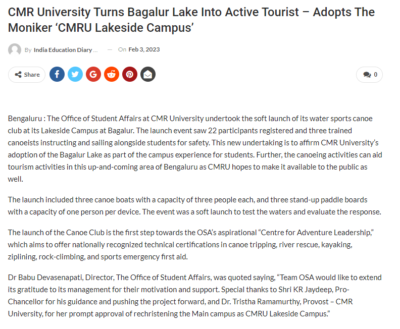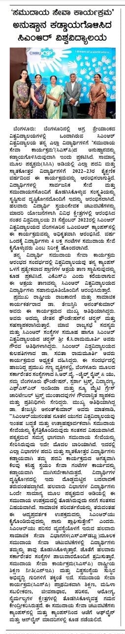 Featured in Bangalore city news |Aryavarth | Xpress Alert | Vartha Bharathi | Udayavani | Udayavahini | Udayakala | Twitter- CMRU | TVA News | Shiksha | Sanjevani | Sanjevani, pg 03 | sanjevani CMRU Online | Sanje Samaya | Samyuktha Karnataka | Samachar Parivartan | Right Info | Prajavni | news 8 | Madhyamam Listing | Hosadigantha | Higher Education Digest-CMRU | Education World | Eanadu | DD News | CMR Vijayavani | Bangalore Dhinamani | Bangalore Dhinamani
