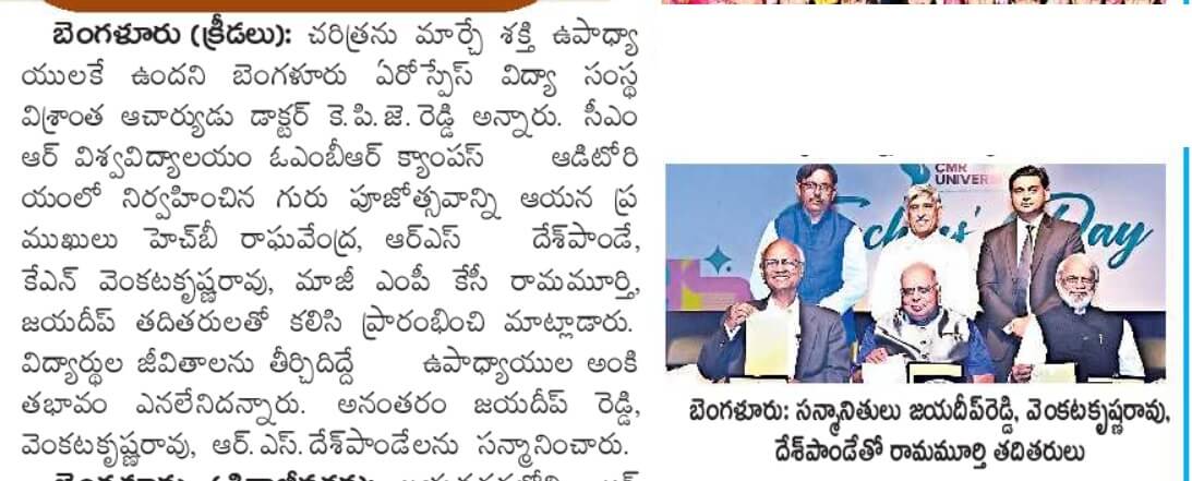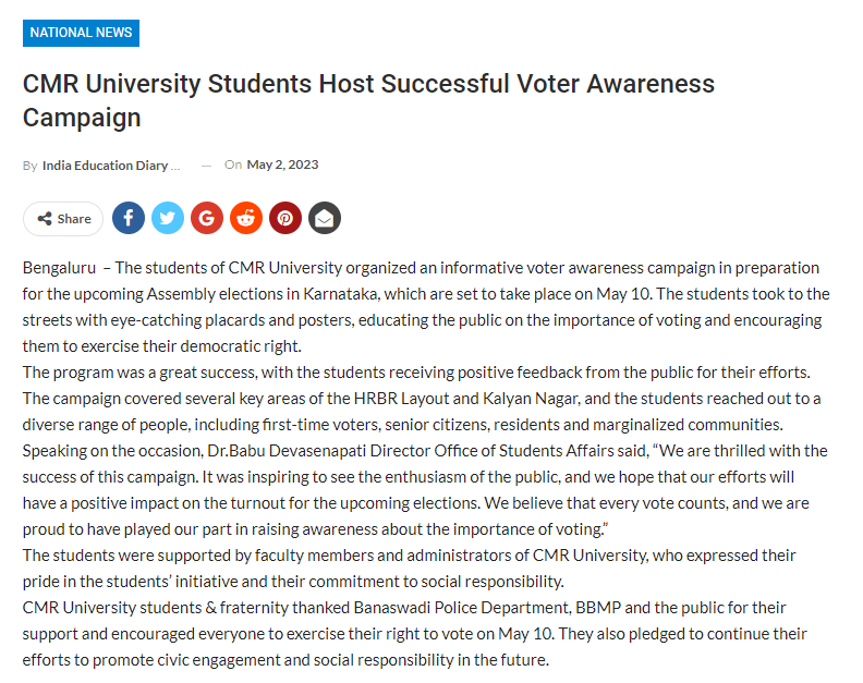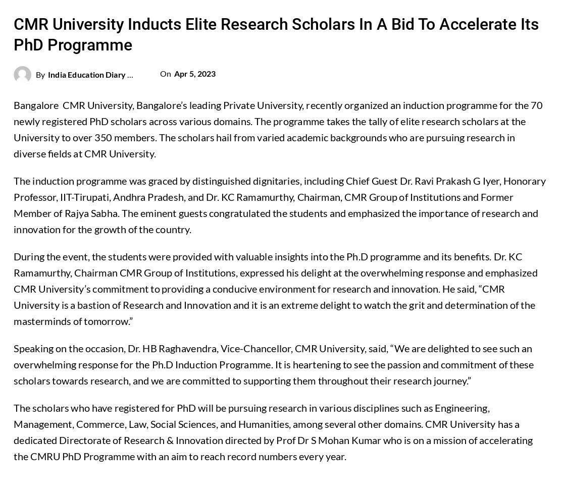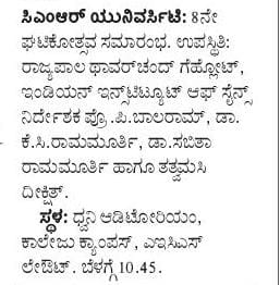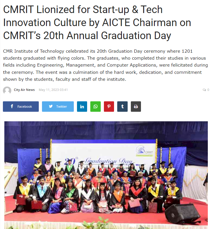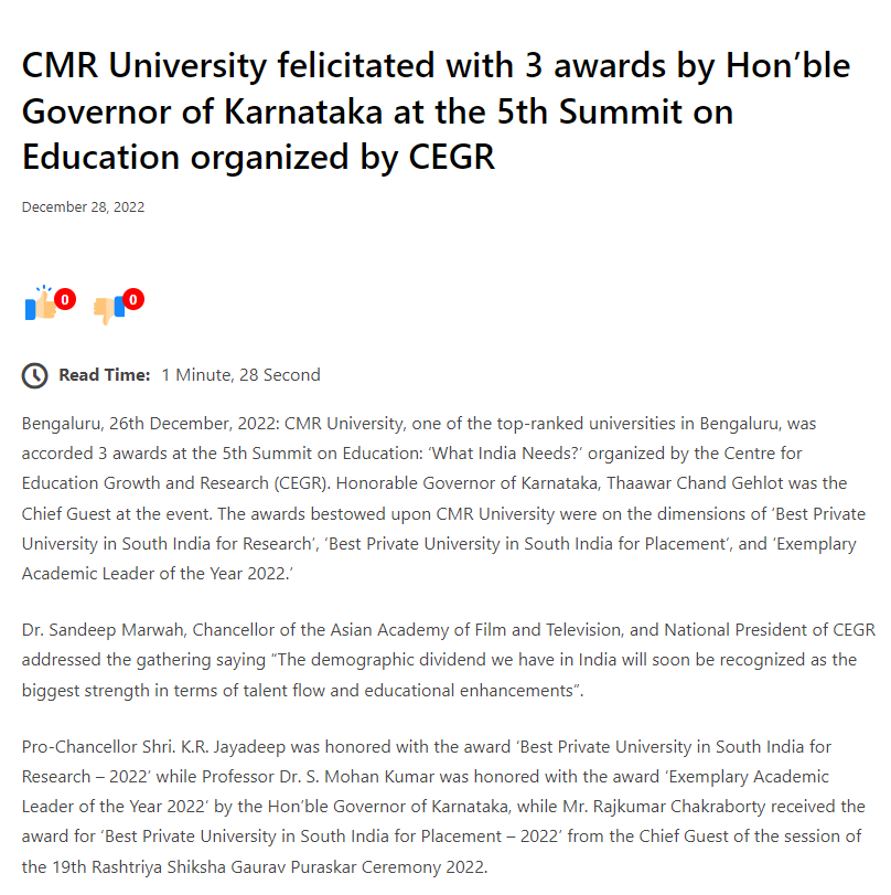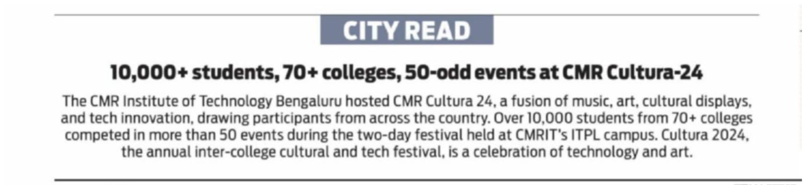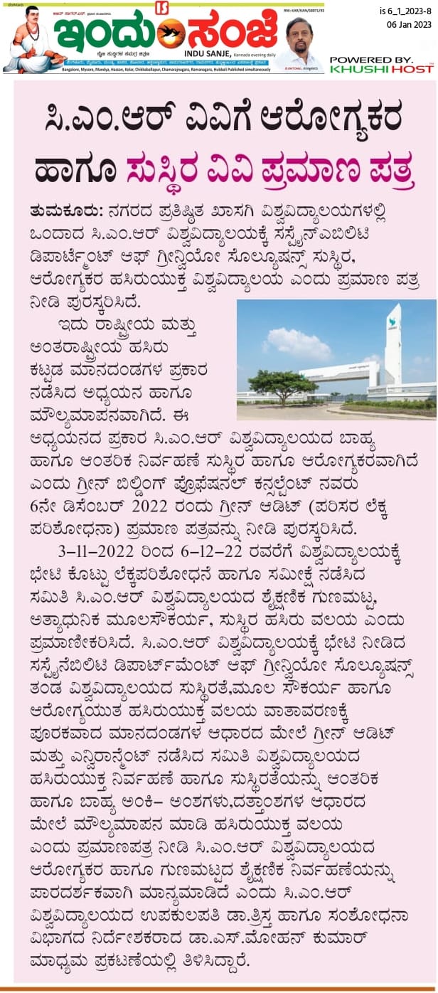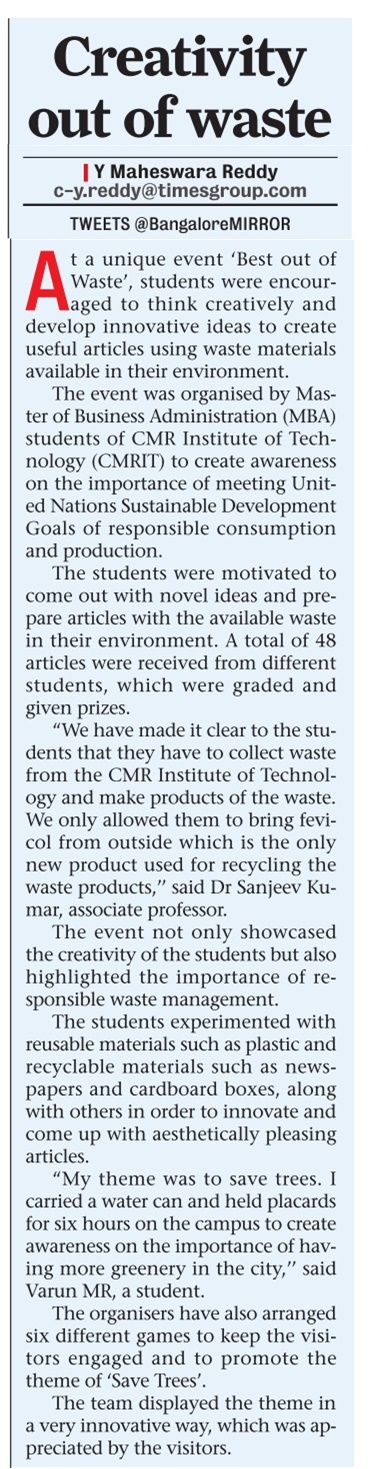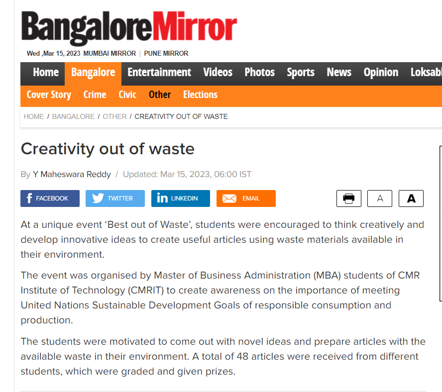 Featured in Bangalore city news |Aryavarth | Xpress Alert | Vartha Bharathi | Udayavani | Udayavahini | Udayakala | Twitter- CMRU | TVA News | Shiksha | Sanjevani | Sanjevani, pg 03 | sanjevani CMRU Online | Sanje Samaya | Samyuktha Karnataka | Samachar Parivartan | Right Info | Prajavni | news 8 | Madhyamam Listing | Hosadigantha | Higher Education Digest-CMRU | Education World | Eanadu | DD News | CMR Vijayavani | Bangalore Dhinamani | Bangalore Dhinamani