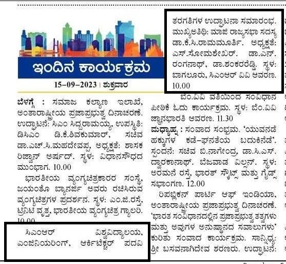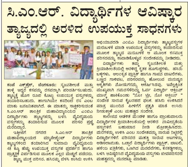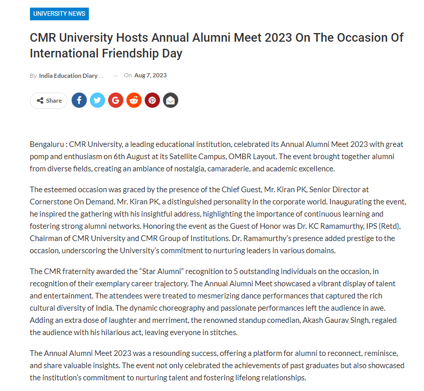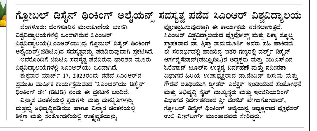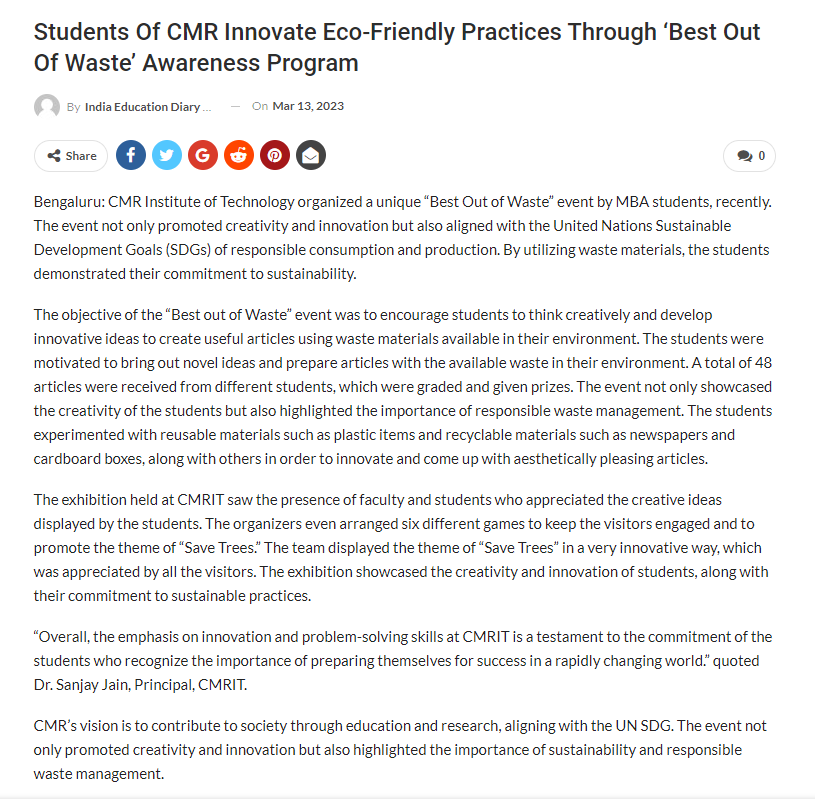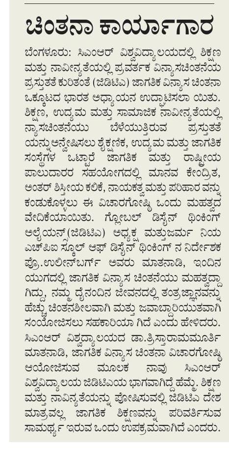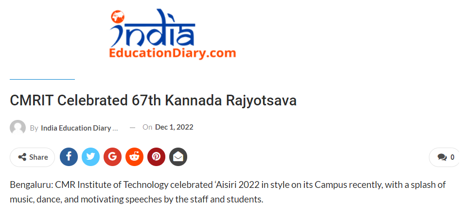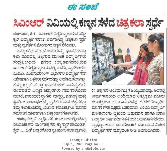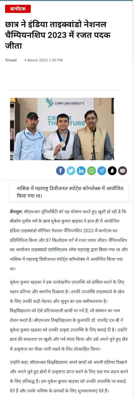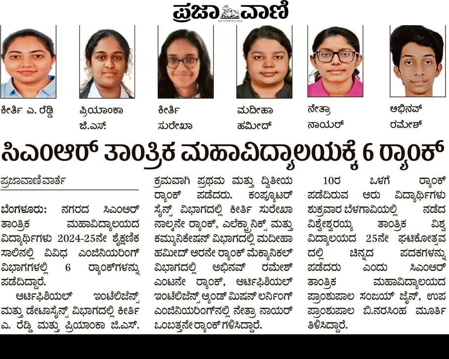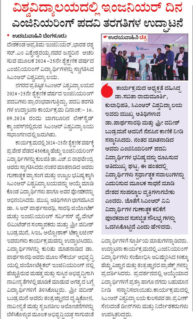 Featured in Bangalore city news |Aryavarth | Xpress Alert | Vartha Bharathi | Udayavani | Udayavahini | Udayakala | Twitter- CMRU | TVA News | Shiksha | Sanjevani | Sanjevani, pg 03 | sanjevani CMRU Online | Sanje Samaya | Samyuktha Karnataka | Samachar Parivartan | Right Info | Prajavni | news 8 | Madhyamam Listing | Hosadigantha | Higher Education Digest-CMRU | Education World | Eanadu | DD News | CMR Vijayavani | Bangalore Dhinamani | Bangalore Dhinamani