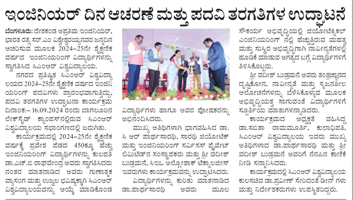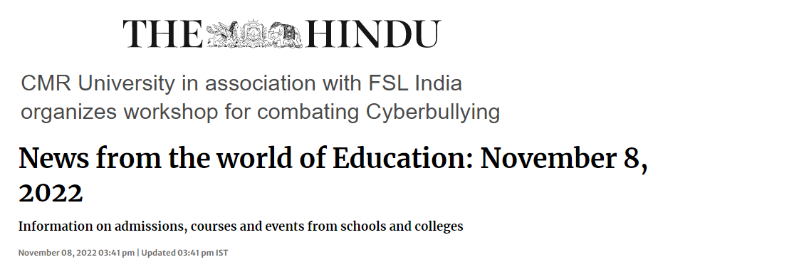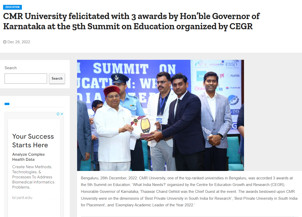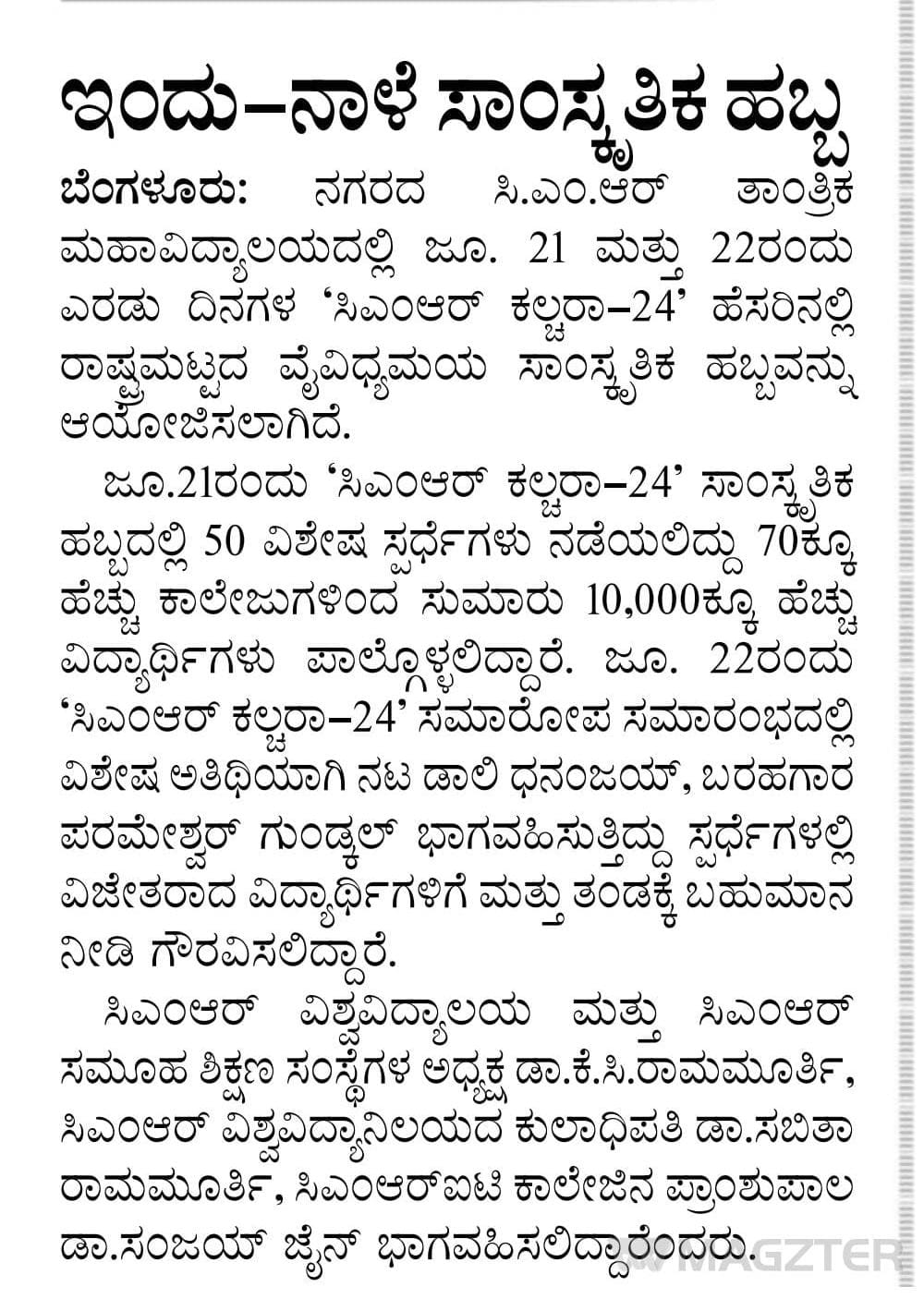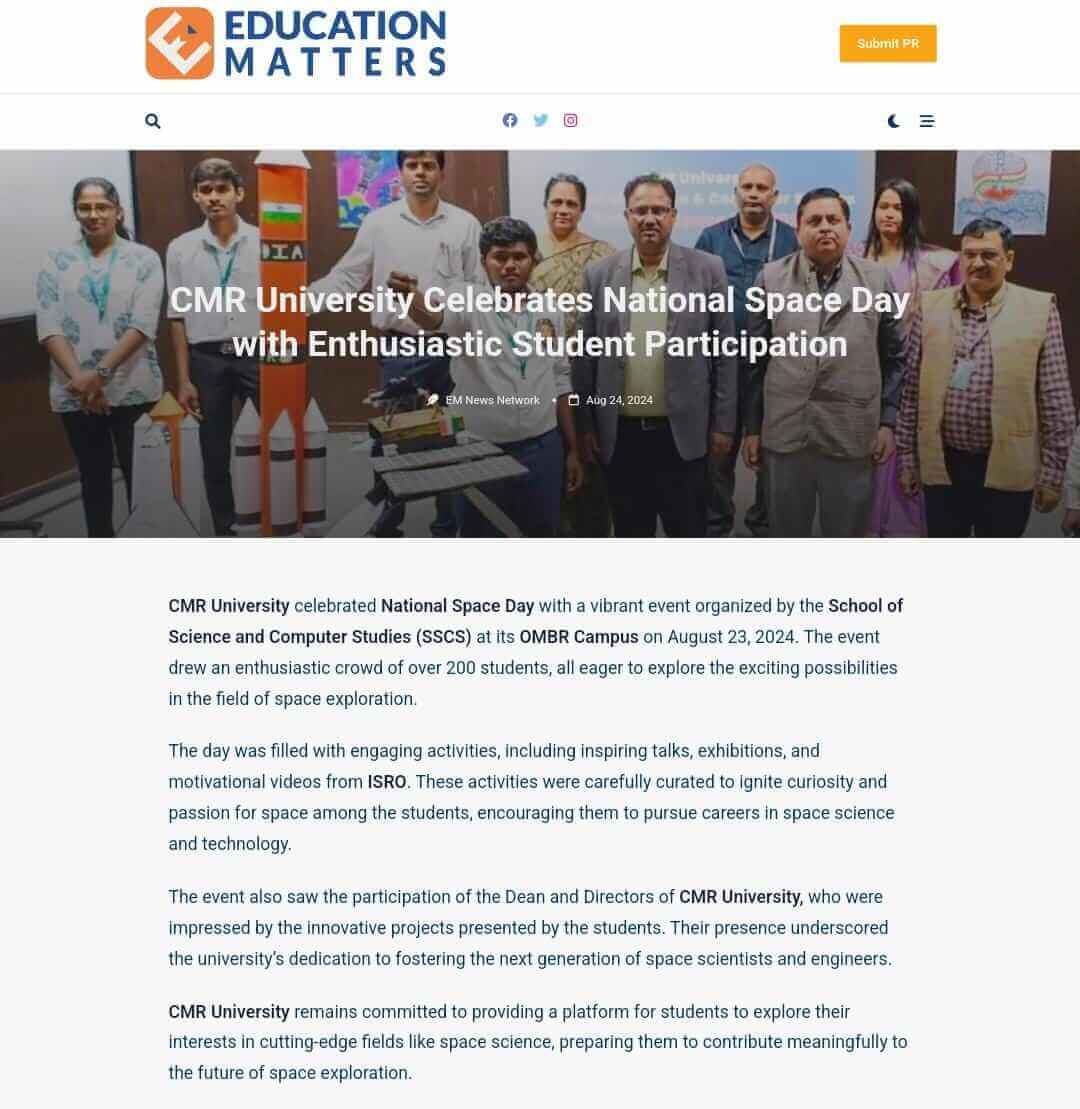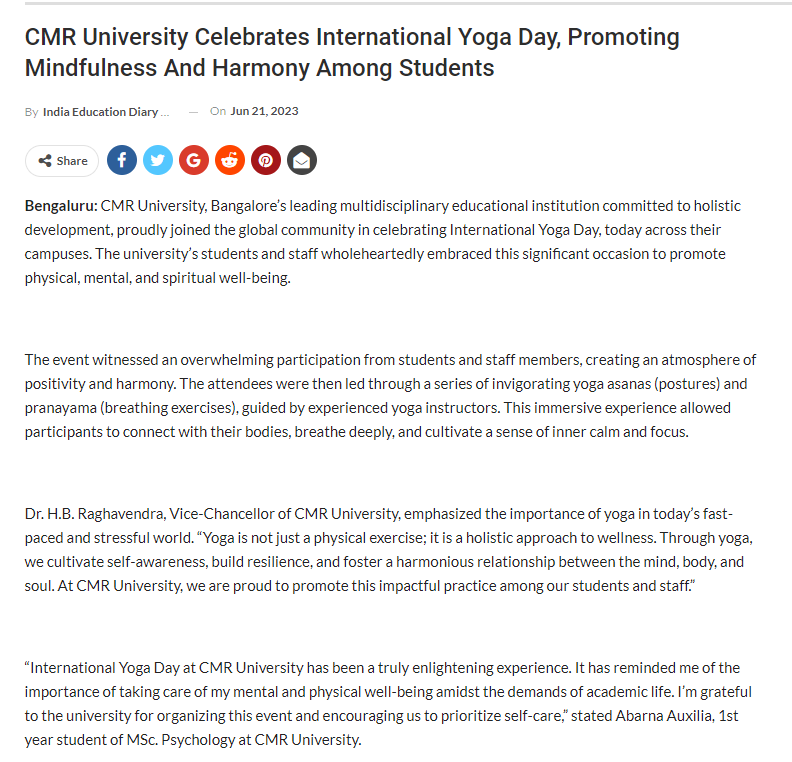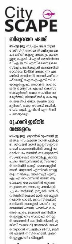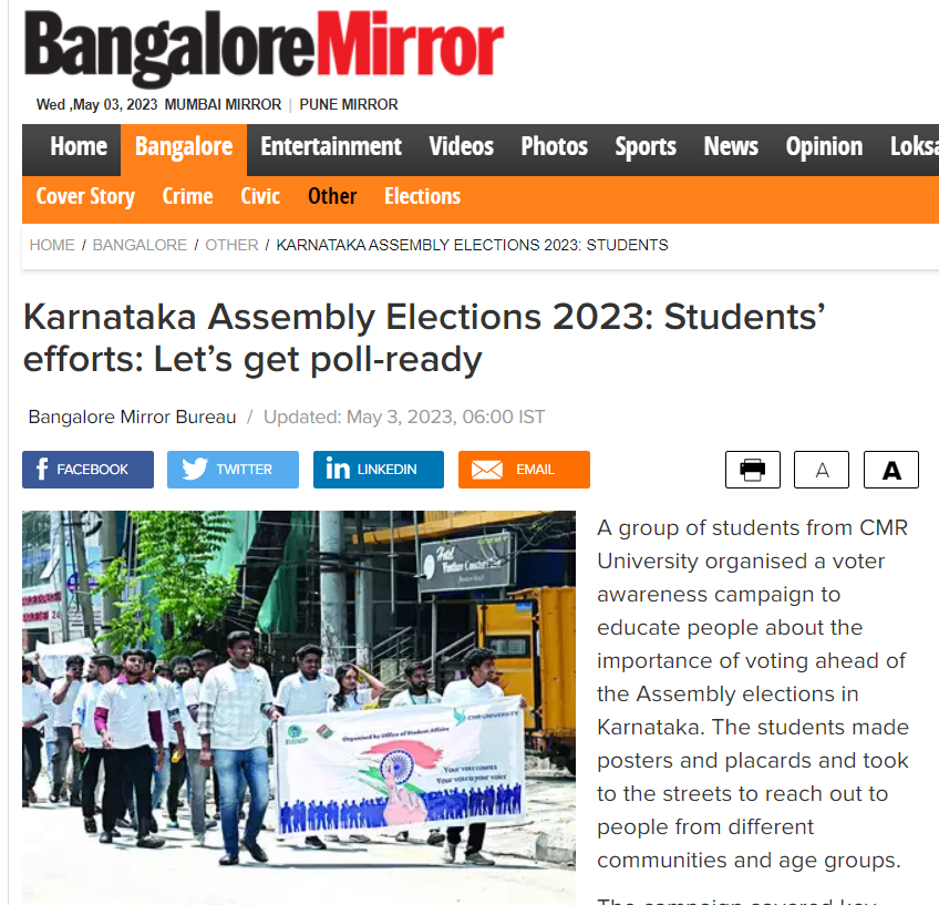Featured in Bangalore city news |Aryavarth | Xpress Alert | Vartha Bharathi | Udayavani | Udayavahini | Udayakala | Twitter- CMRU | TVA News | Shiksha | Sanjevani | Sanjevani, pg 03 | sanjevani CMRU Online | Sanje Samaya | Samyuktha Karnataka | Samachar Parivartan | Right Info | Prajavni | news 8 | Madhyamam Listing | Hosadigantha | Higher Education Digest-CMRU | Education World | Eanadu | DD News | CMR Vijayavani | Bangalore Dhinamani | Bangalore Dhinamani