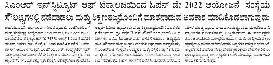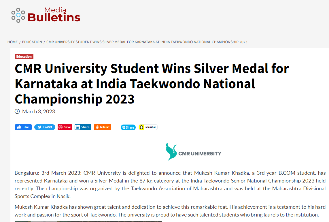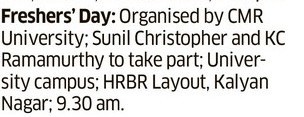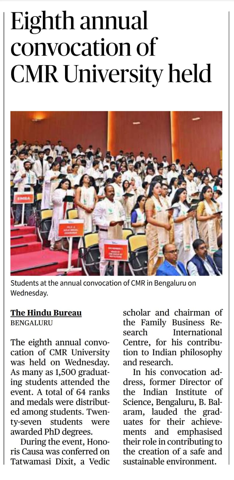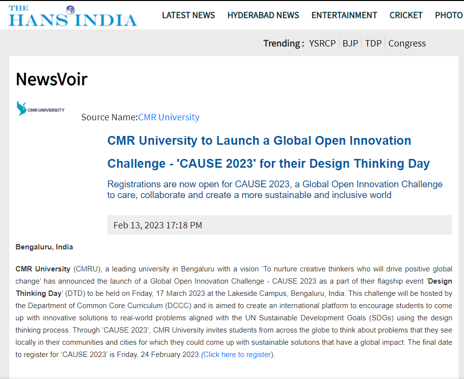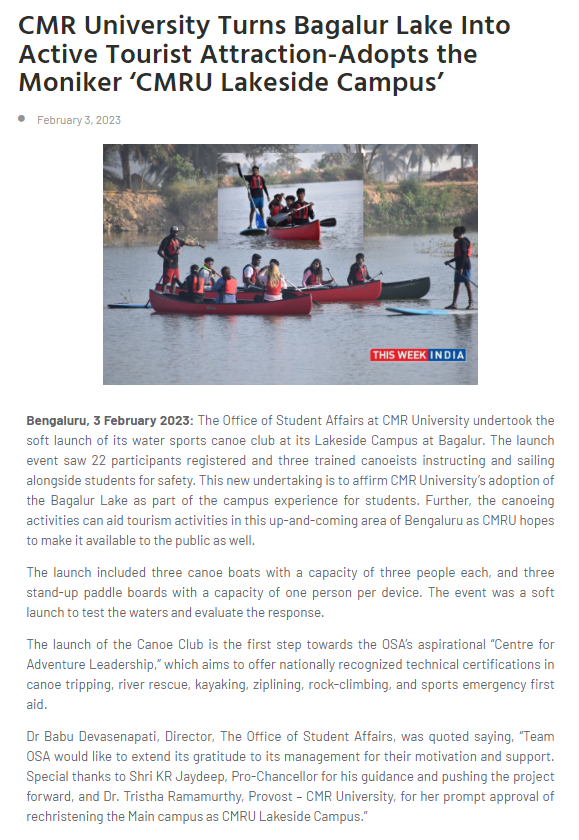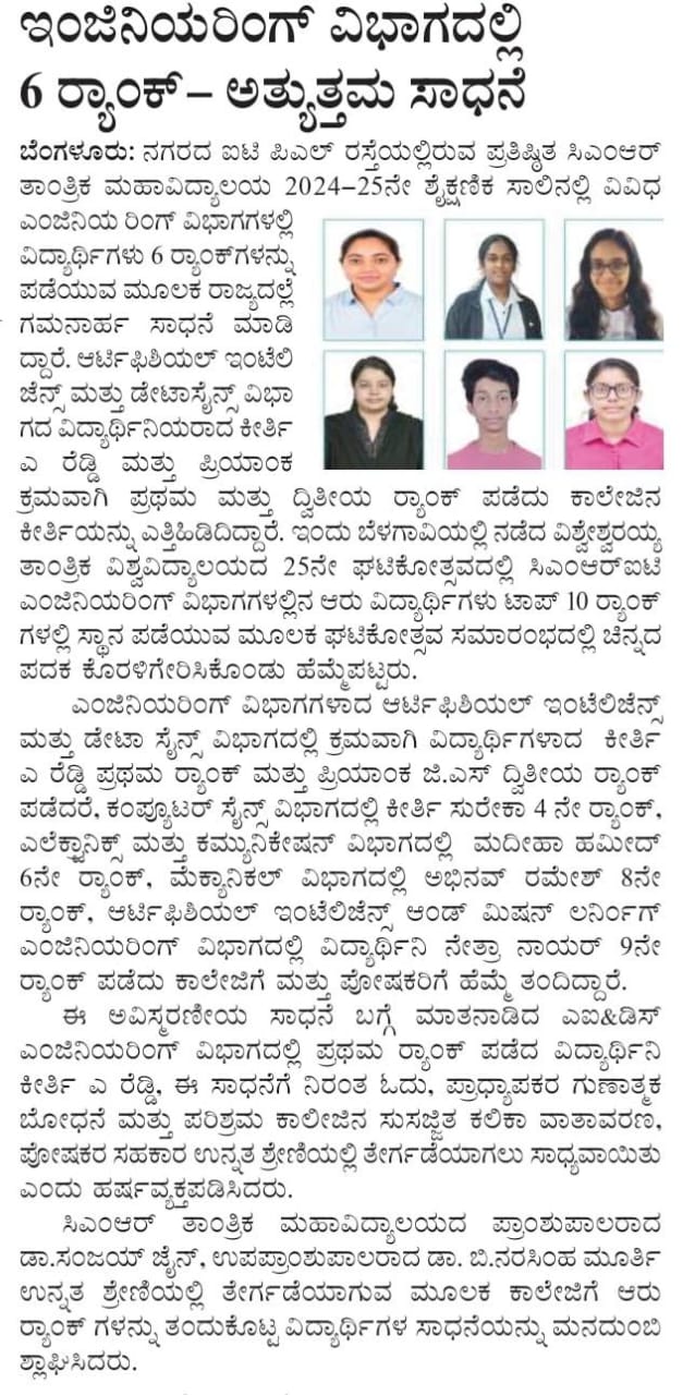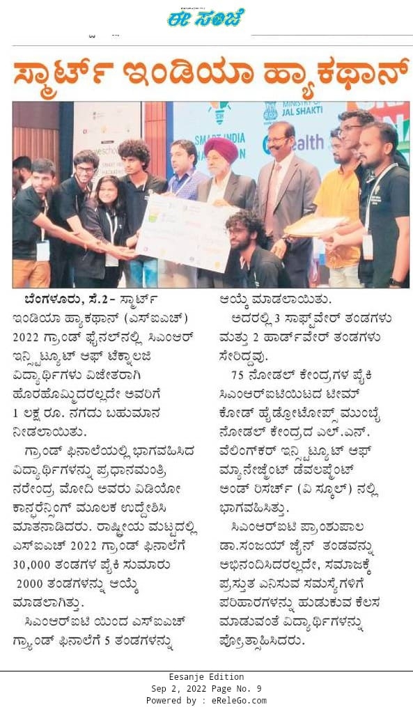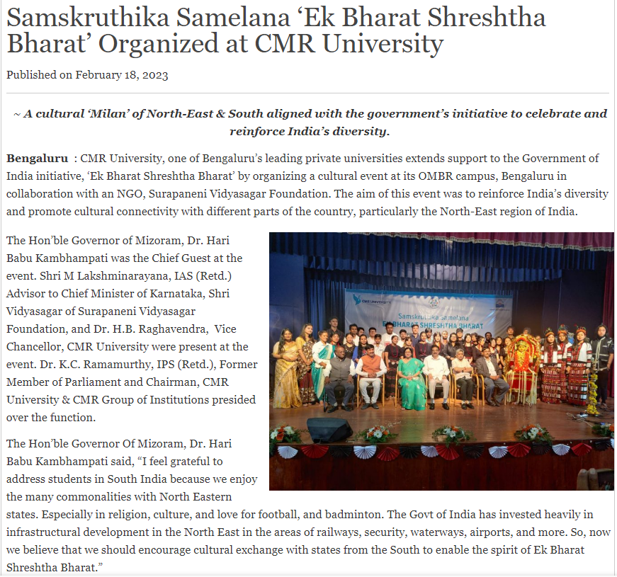 Featured in Bangalore city news |Aryavarth | Xpress Alert | Vartha Bharathi | Udayavani | Udayavahini | Udayakala | Twitter- CMRU | TVA News | Shiksha | Sanjevani | Sanjevani, pg 03 | sanjevani CMRU Online | Sanje Samaya | Samyuktha Karnataka | Samachar Parivartan | Right Info | Prajavni | news 8 | Madhyamam Listing | Hosadigantha | Higher Education Digest-CMRU | Education World | Eanadu | DD News | CMR Vijayavani | Bangalore Dhinamani | Bangalore Dhinamani