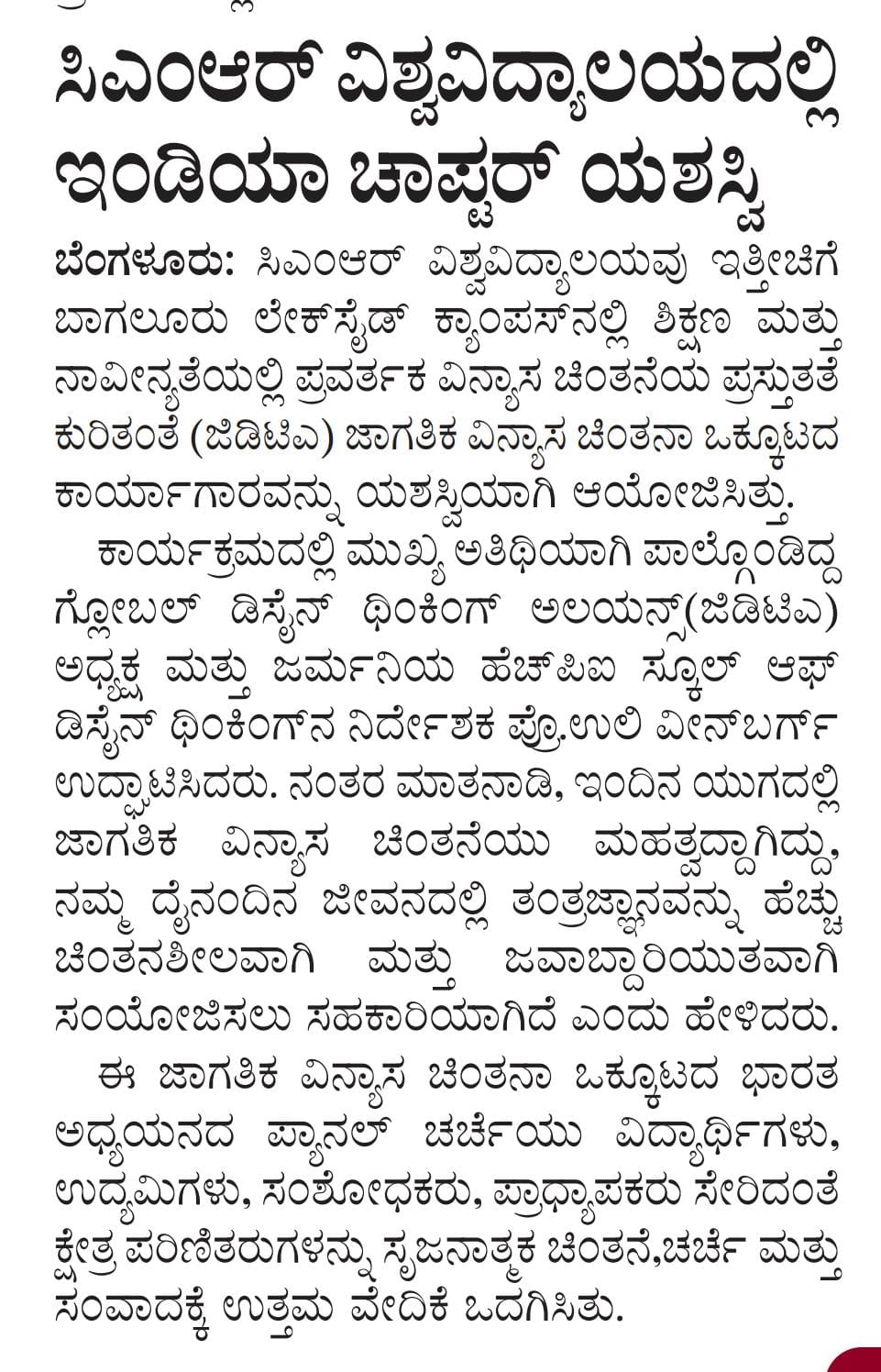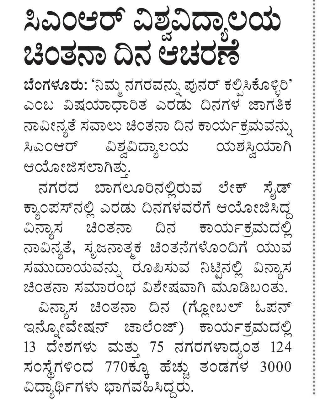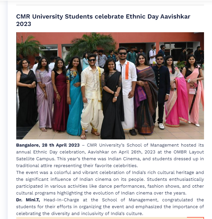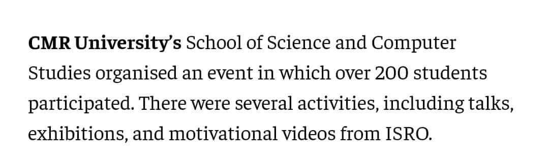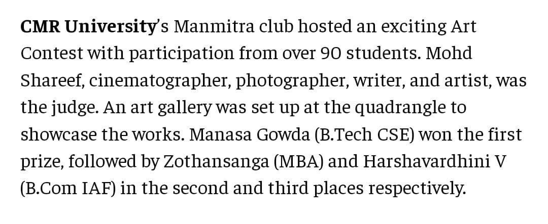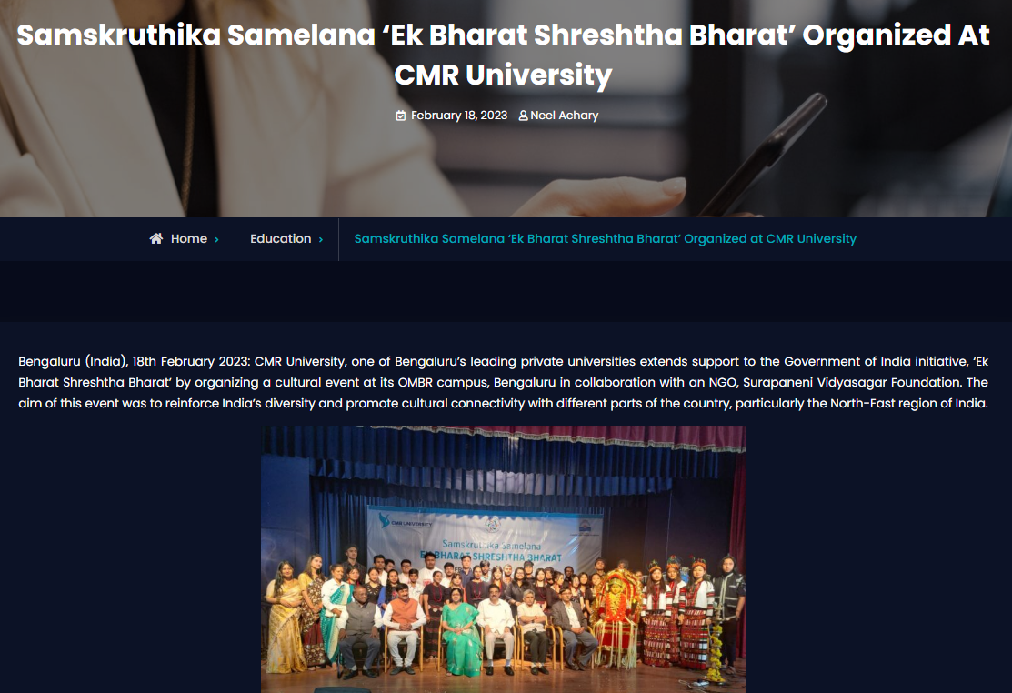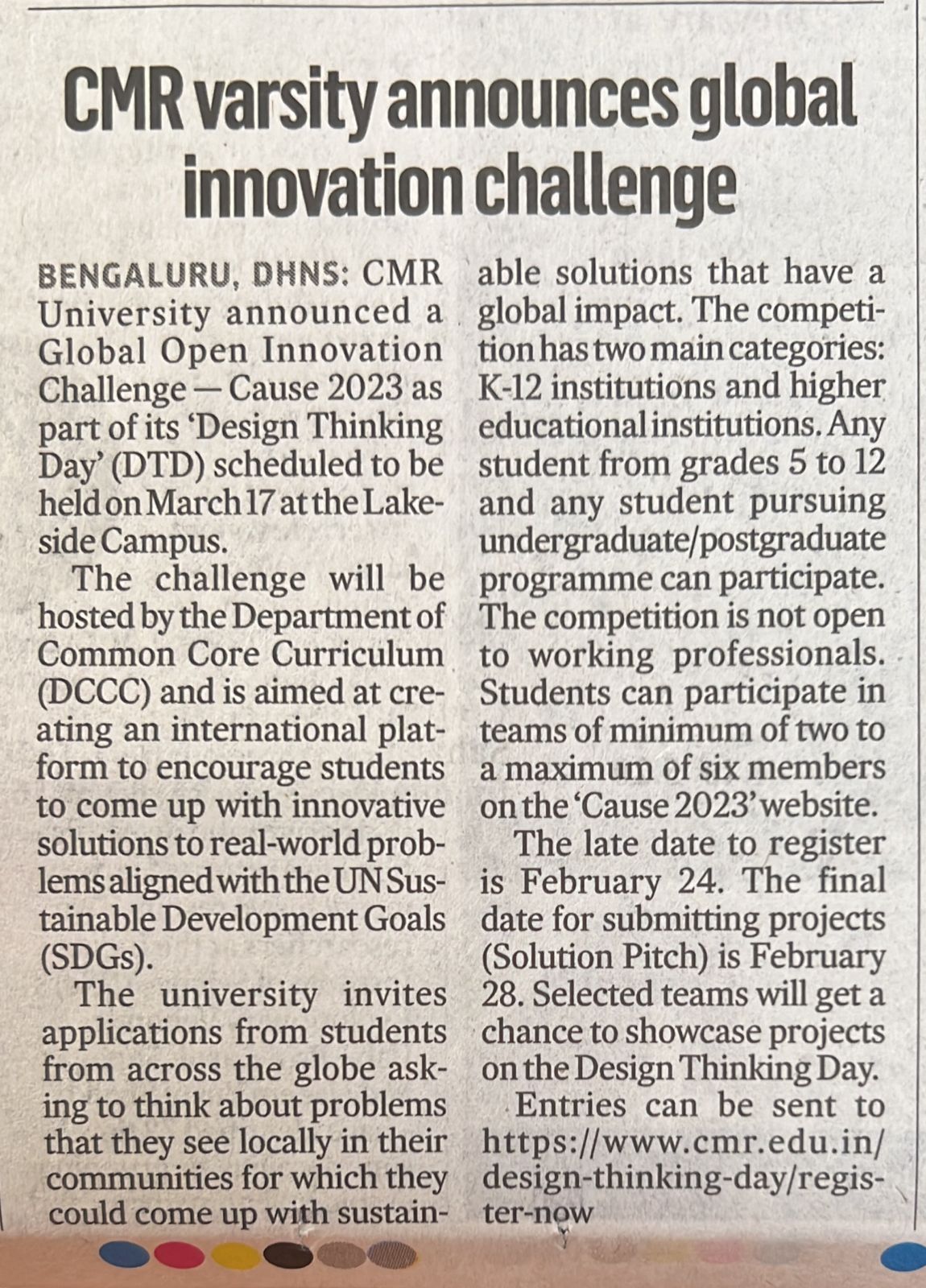 Featured in Bangalore city news |Aryavarth | Xpress Alert | Vartha Bharathi | Udayavani | Udayavahini | Udayakala | Twitter- CMRU | TVA News | Shiksha | Sanjevani | Sanjevani, pg 03 | sanjevani CMRU Online | Sanje Samaya | Samyuktha Karnataka | Samachar Parivartan | Right Info | Prajavni | news 8 | Madhyamam Listing | Hosadigantha | Higher Education Digest-CMRU | Education World | Eanadu | DD News | CMR Vijayavani | Bangalore Dhinamani | Bangalore Dhinamani