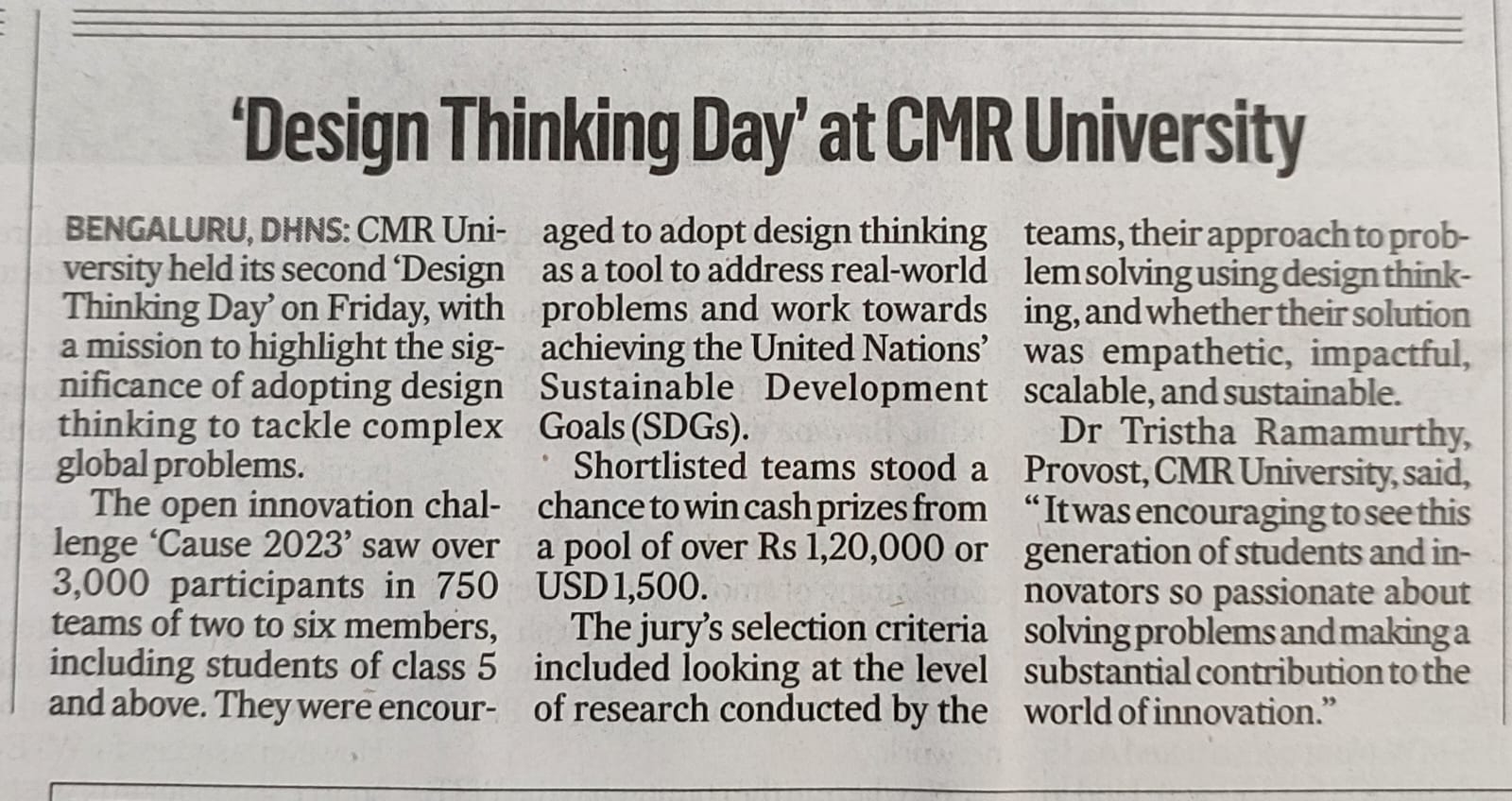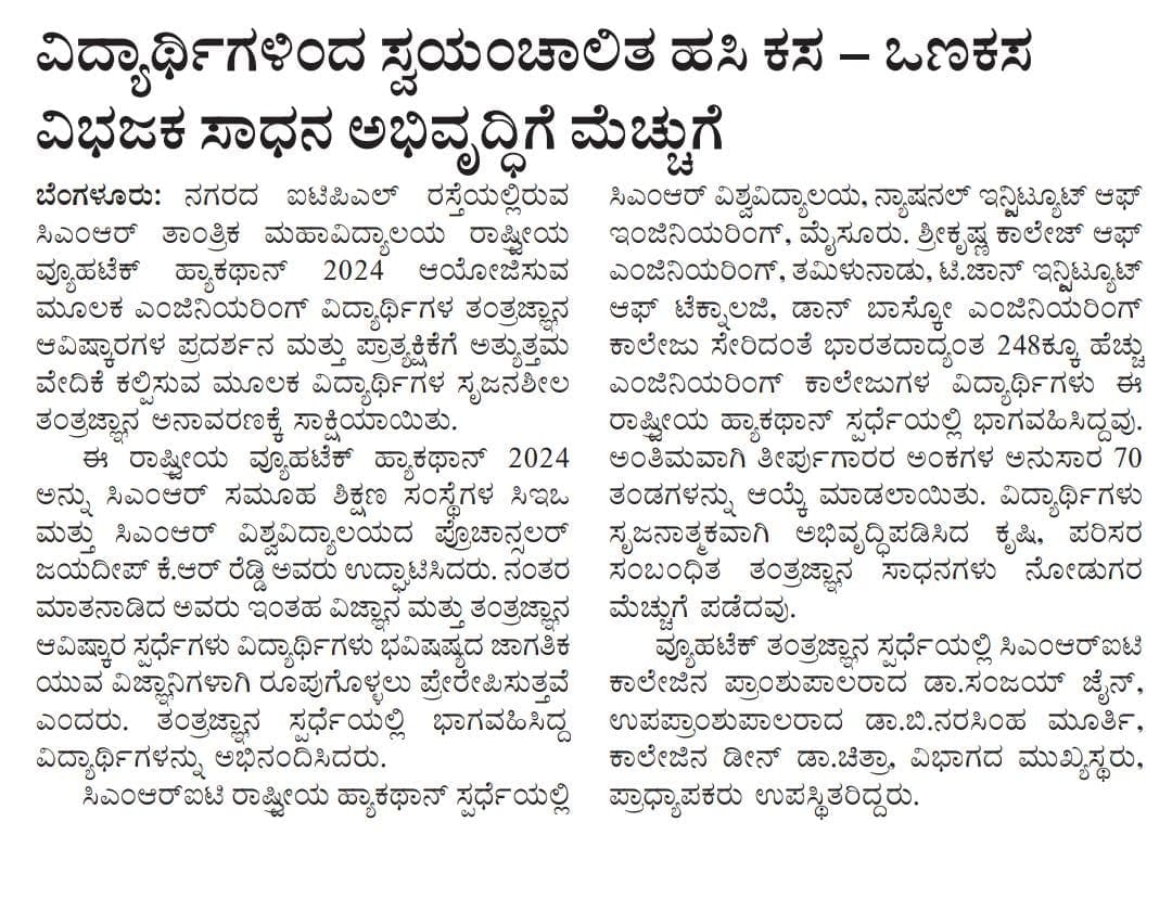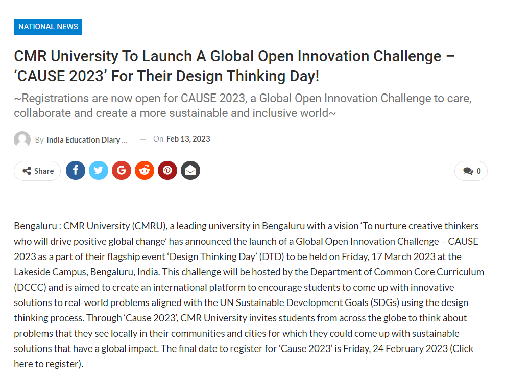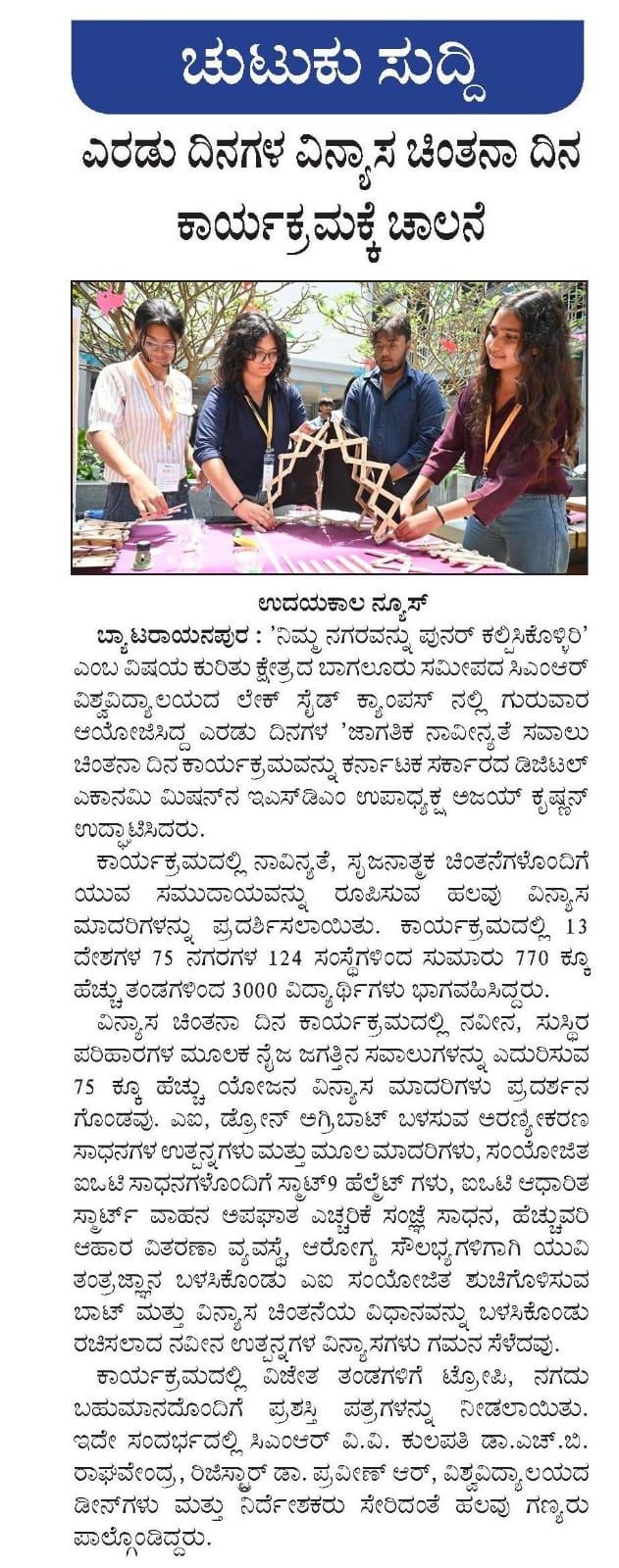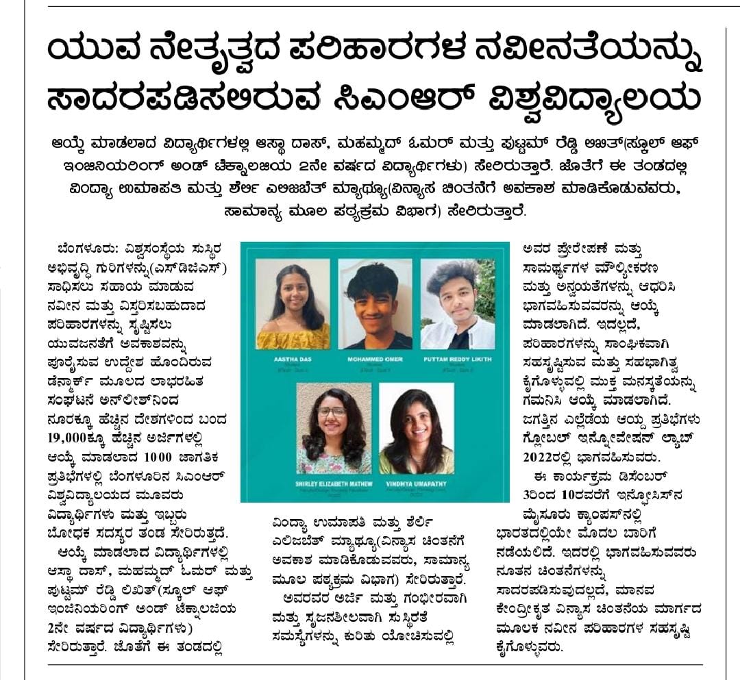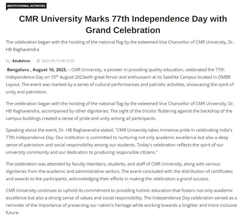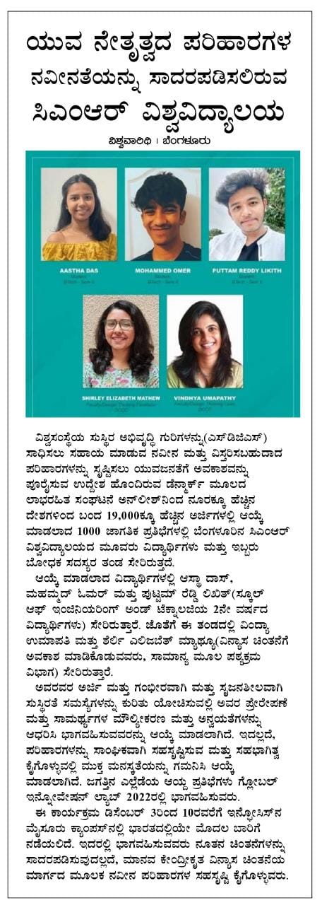 Featured in Bangalore city news |Aryavarth | Xpress Alert | Vartha Bharathi | Udayavani | Udayavahini | Udayakala | Twitter- CMRU | TVA News | Shiksha | Sanjevani | Sanjevani, pg 03 | sanjevani CMRU Online | Sanje Samaya | Samyuktha Karnataka | Samachar Parivartan | Right Info | Prajavni | news 8 | Madhyamam Listing | Hosadigantha | Higher Education Digest-CMRU | Education World | Eanadu | DD News | CMR Vijayavani | Bangalore Dhinamani | Bangalore Dhinamani