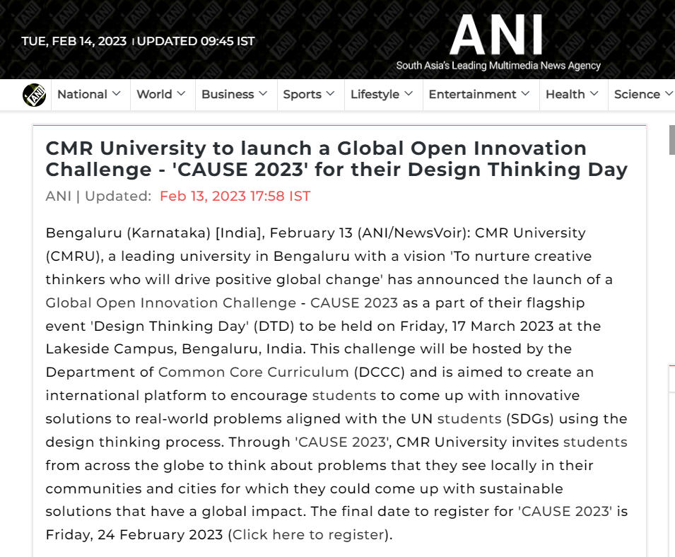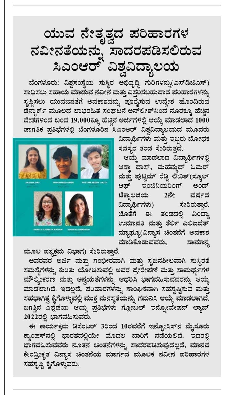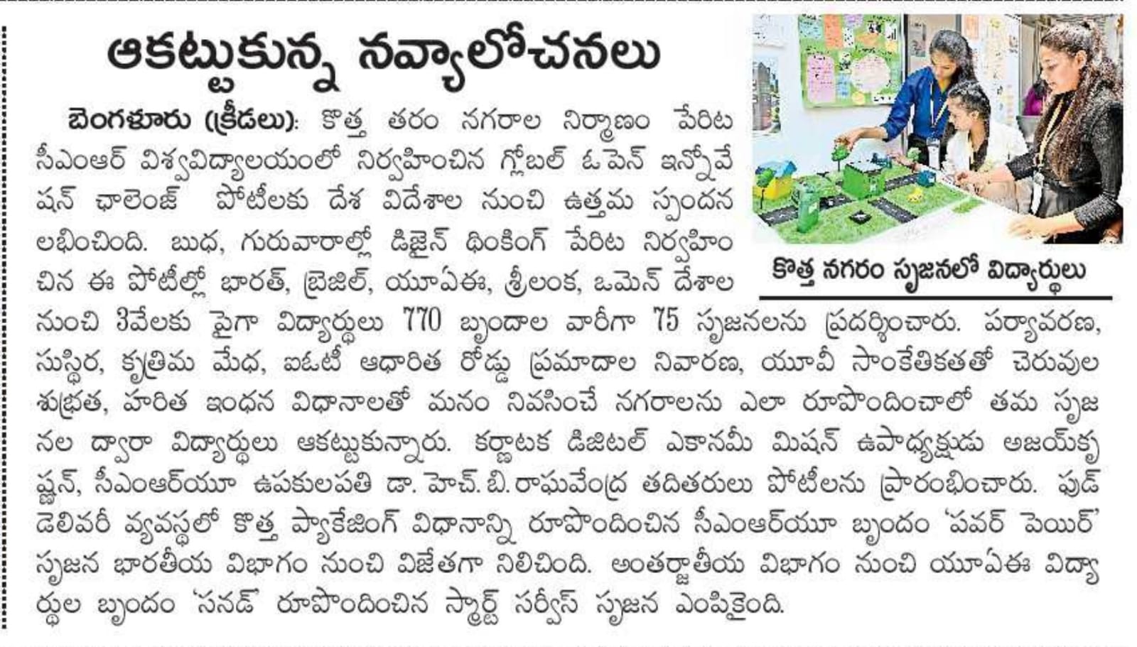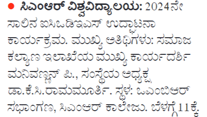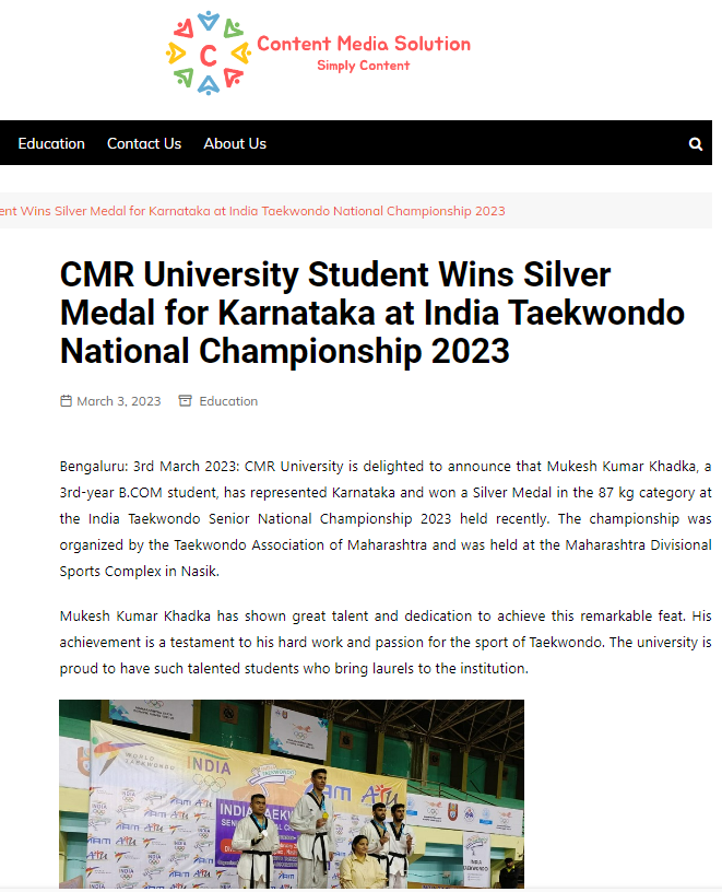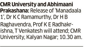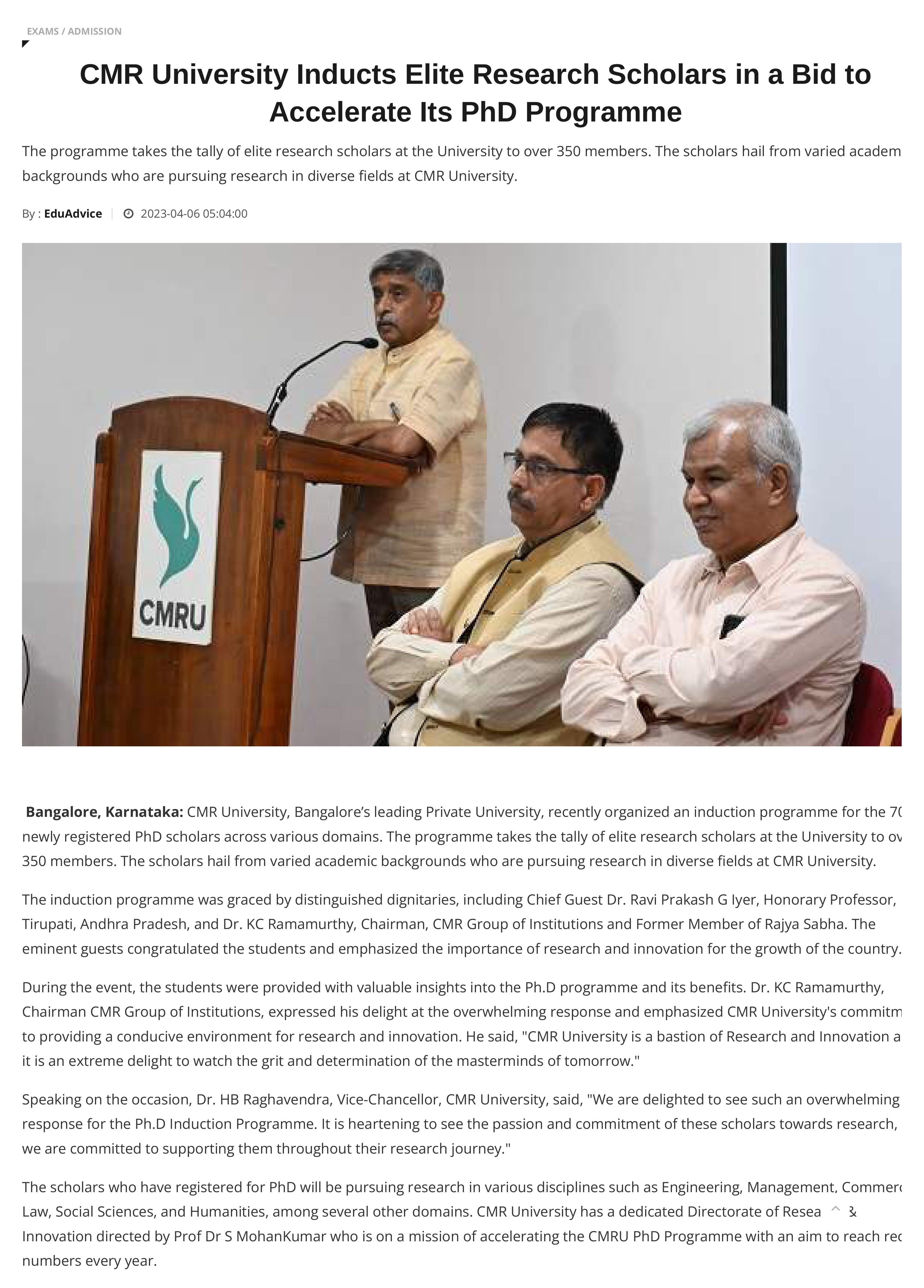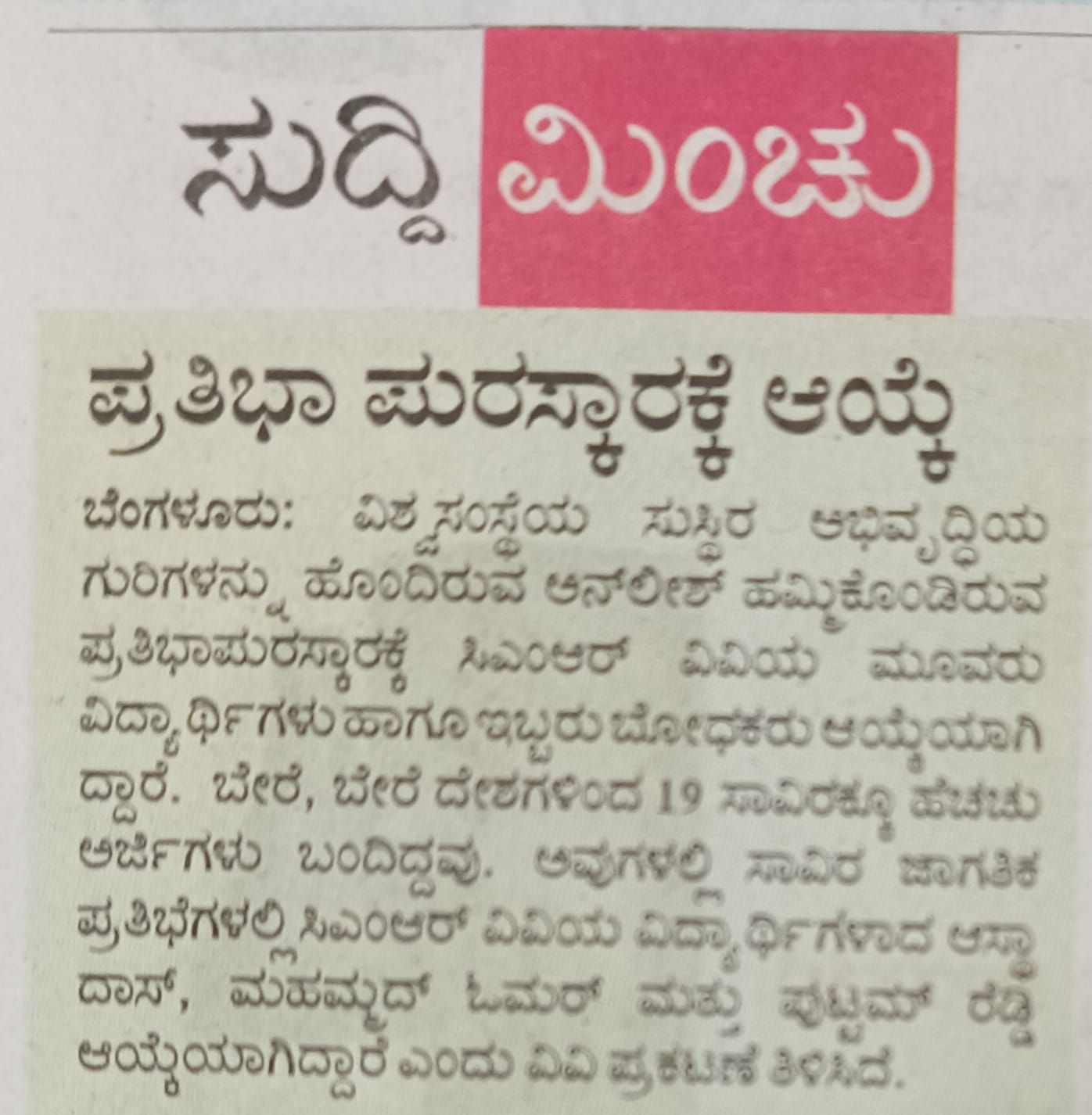 Featured in Bangalore city news |Aryavarth | Xpress Alert | Vartha Bharathi | Udayavani | Udayavahini | Udayakala | Twitter- CMRU | TVA News | Shiksha | Sanjevani | Sanjevani, pg 03 | sanjevani CMRU Online | Sanje Samaya | Samyuktha Karnataka | Samachar Parivartan | Right Info | Prajavni | news 8 | Madhyamam Listing | Hosadigantha | Higher Education Digest-CMRU | Education World | Eanadu | DD News | CMR Vijayavani | Bangalore Dhinamani | Bangalore Dhinamani