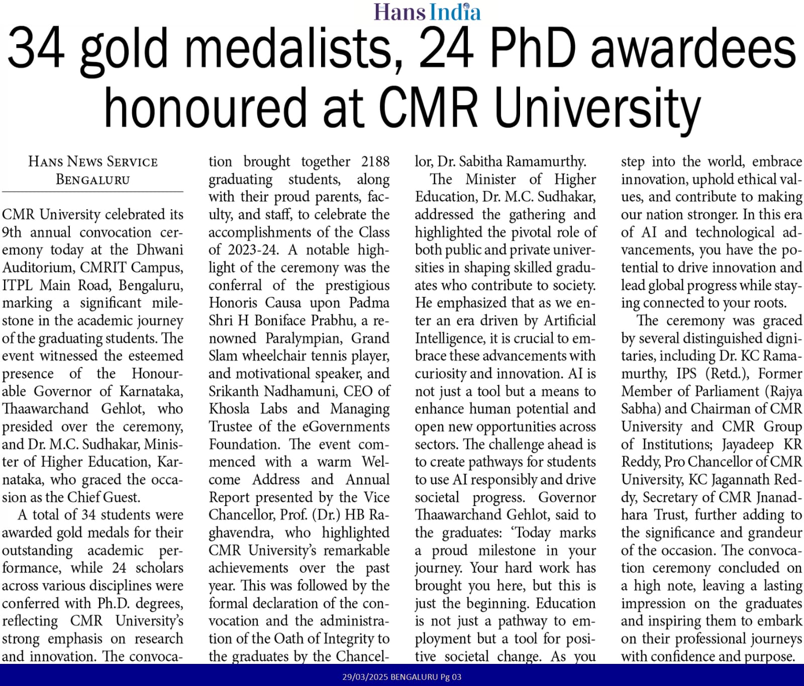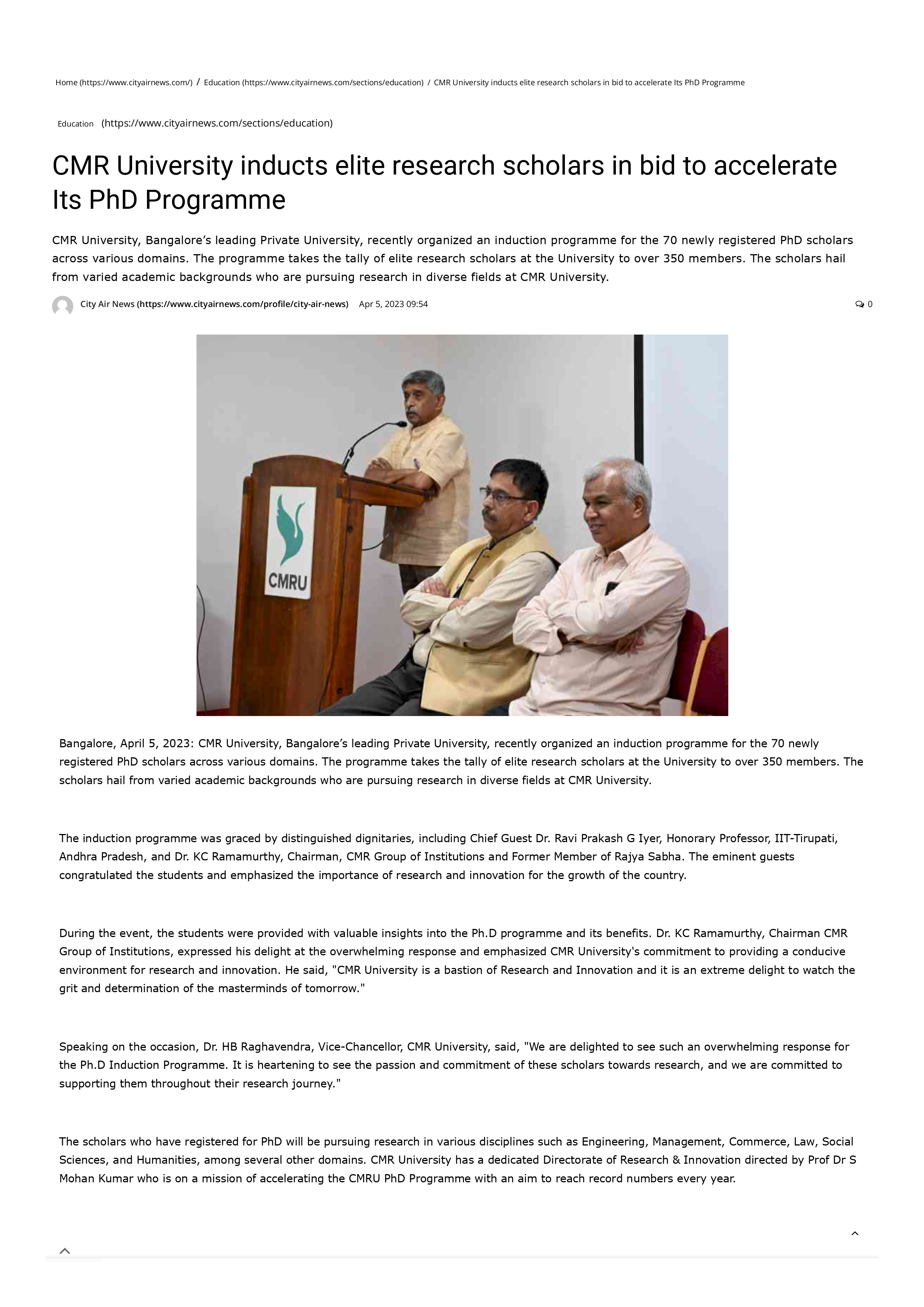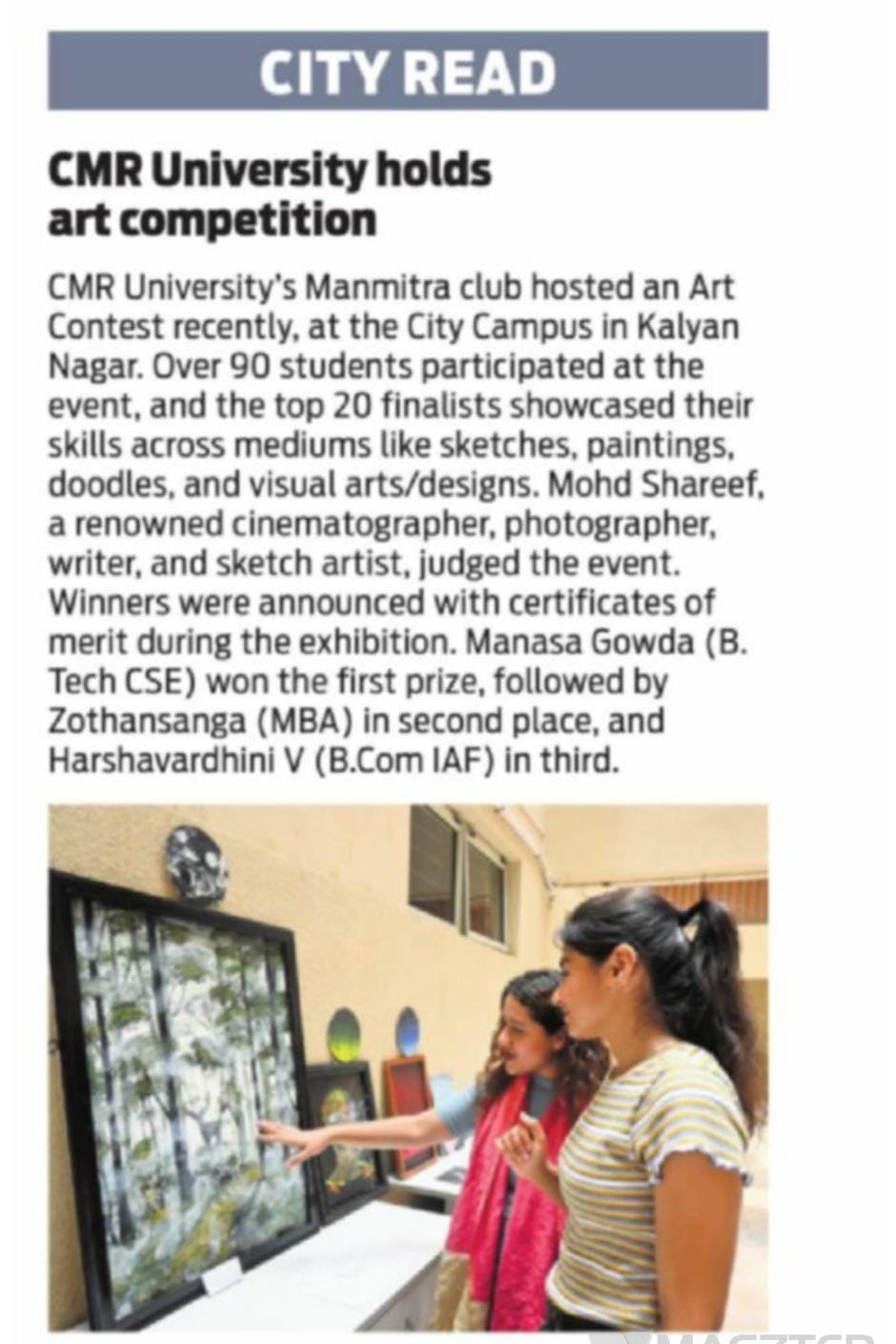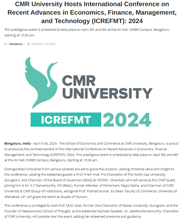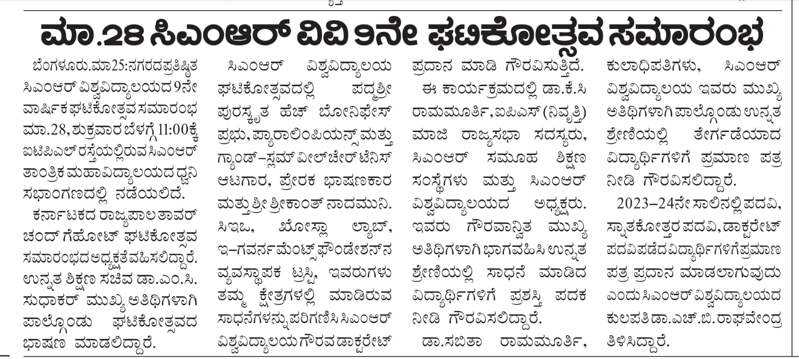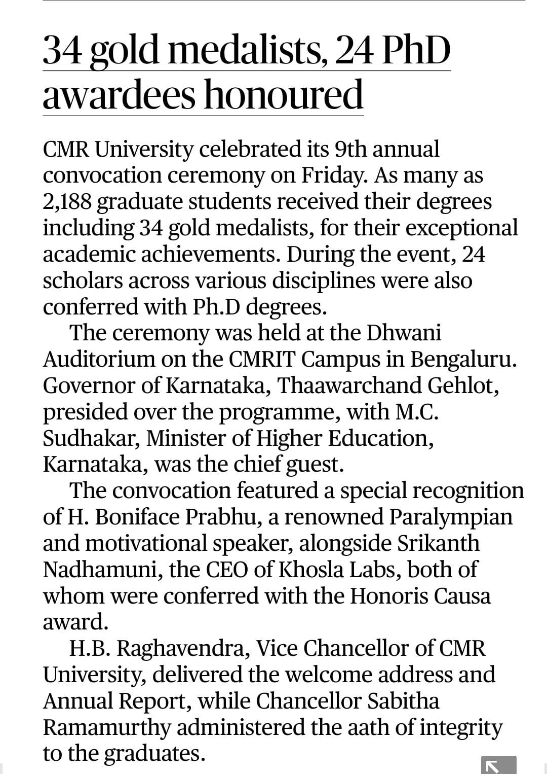 Featured in Bangalore city news |Aryavarth | Xpress Alert | Vartha Bharathi | Udayavani | Udayavahini | Udayakala | Twitter- CMRU | TVA News | Shiksha | Sanjevani | Sanjevani, pg 03 | sanjevani CMRU Online | Sanje Samaya | Samyuktha Karnataka | Samachar Parivartan | Right Info | Prajavni | news 8 | Madhyamam Listing | Hosadigantha | Higher Education Digest-CMRU | Education World | Eanadu | DD News | CMR Vijayavani | Bangalore Dhinamani | Bangalore Dhinamani