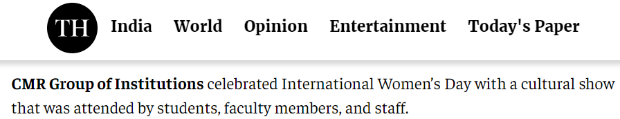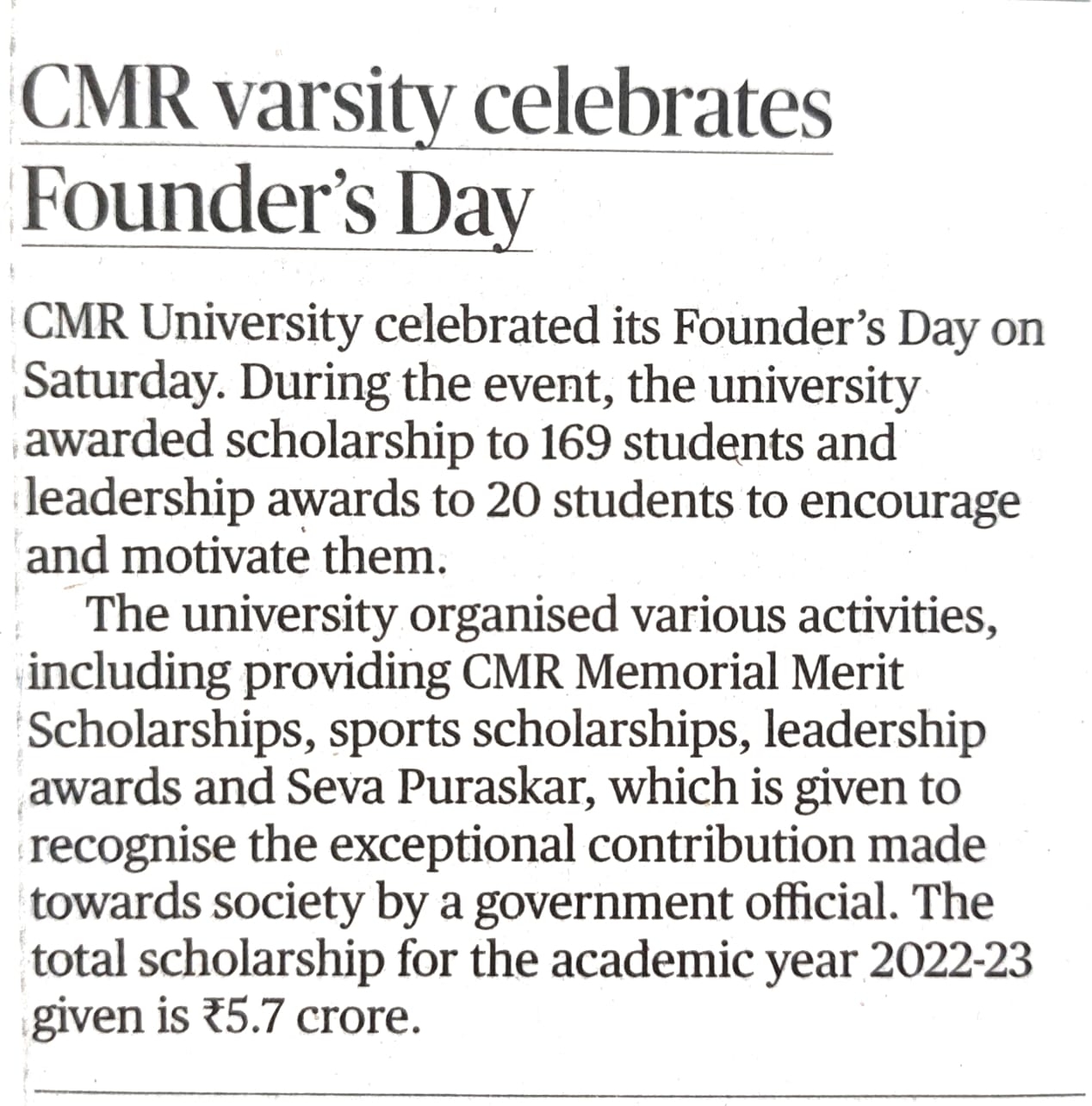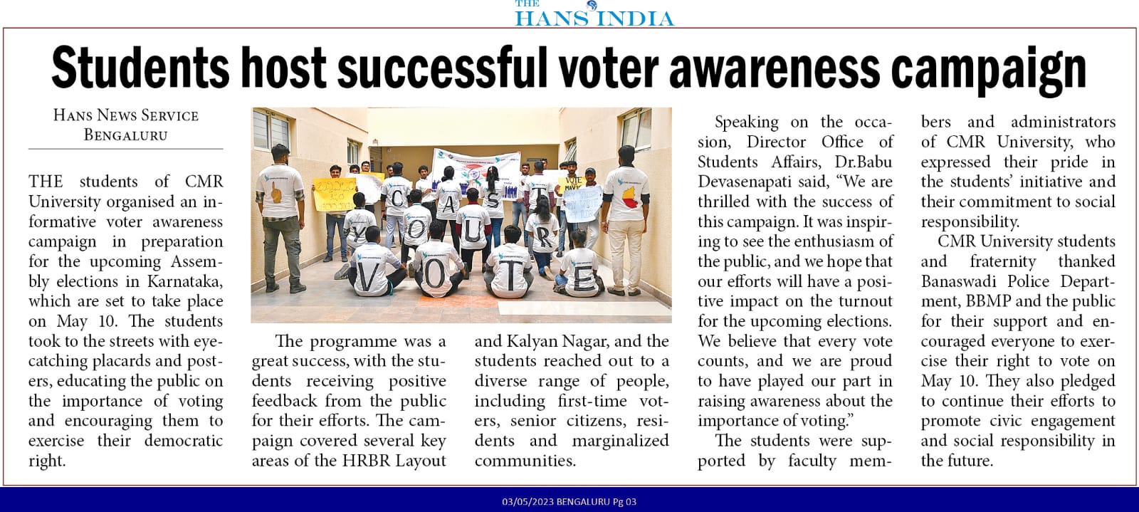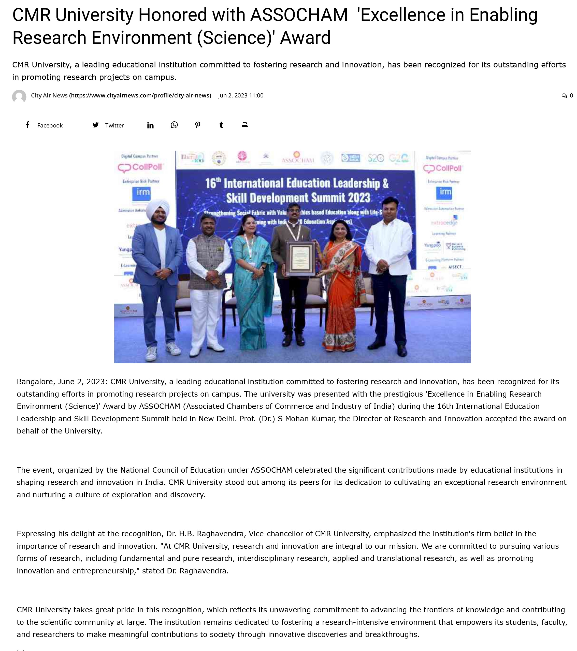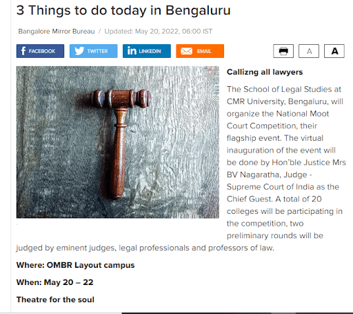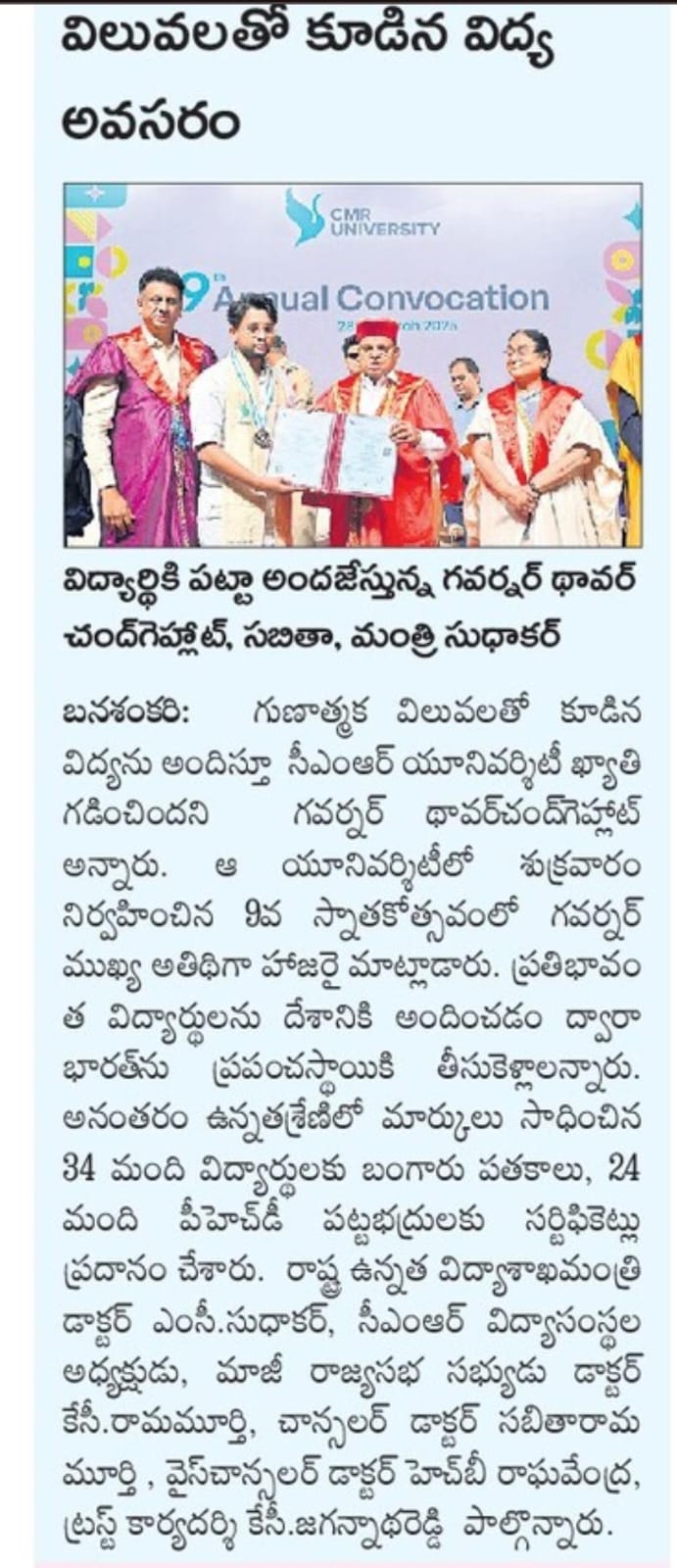 Featured in Bangalore city news |Aryavarth | Xpress Alert | Vartha Bharathi | Udayavani | Udayavahini | Udayakala | Twitter- CMRU | TVA News | Shiksha | Sanjevani | Sanjevani, pg 03 | sanjevani CMRU Online | Sanje Samaya | Samyuktha Karnataka | Samachar Parivartan | Right Info | Prajavni | news 8 | Madhyamam Listing | Hosadigantha | Higher Education Digest-CMRU | Education World | Eanadu | DD News | CMR Vijayavani | Bangalore Dhinamani | Bangalore Dhinamani