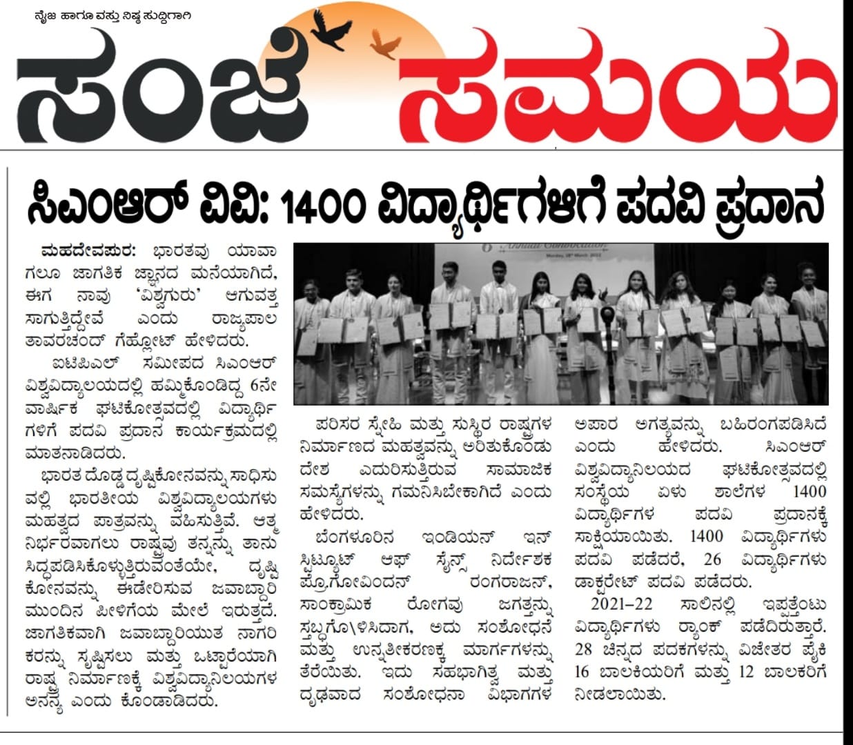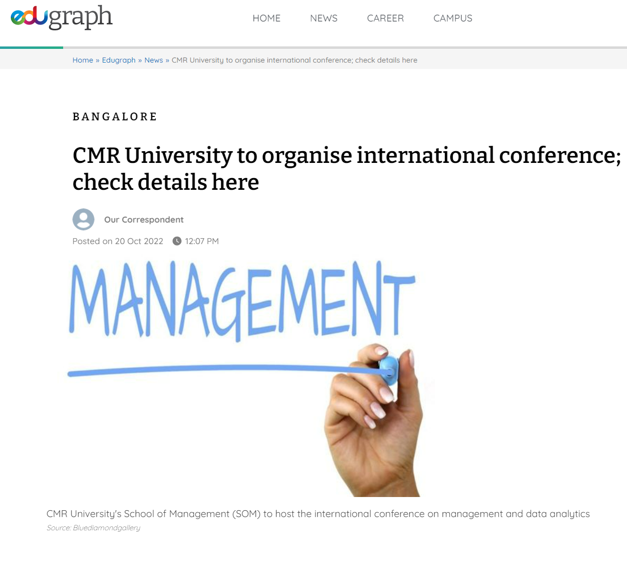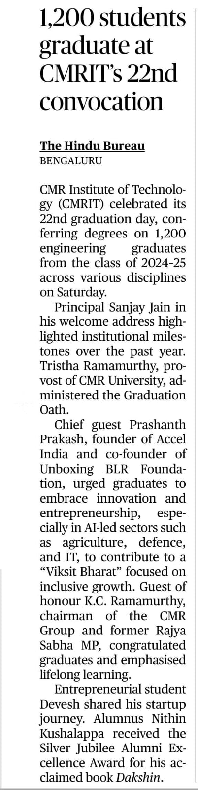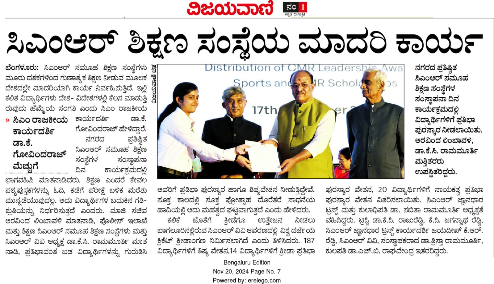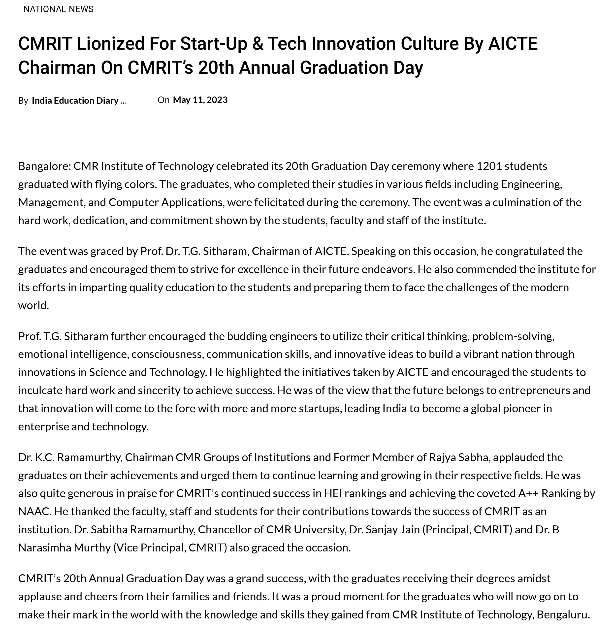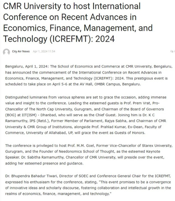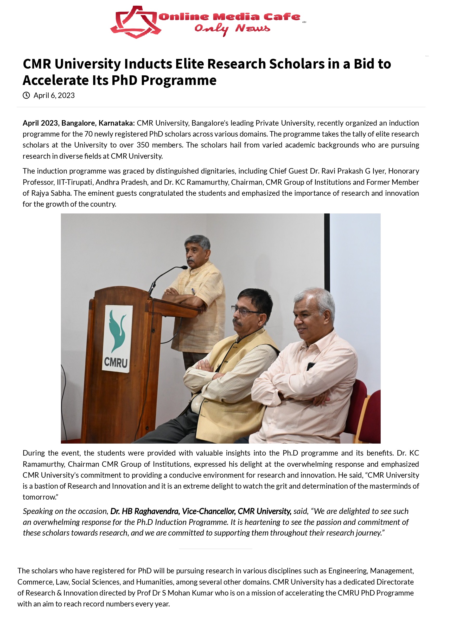 Featured in Bangalore city news |Aryavarth | Xpress Alert | Vartha Bharathi | Udayavani | Udayavahini | Udayakala | Twitter- CMRU | TVA News | Shiksha | Sanjevani | Sanjevani, pg 03 | sanjevani CMRU Online | Sanje Samaya | Samyuktha Karnataka | Samachar Parivartan | Right Info | Prajavni | news 8 | Madhyamam Listing | Hosadigantha | Higher Education Digest-CMRU | Education World | Eanadu | DD News | CMR Vijayavani | Bangalore Dhinamani | Bangalore Dhinamani