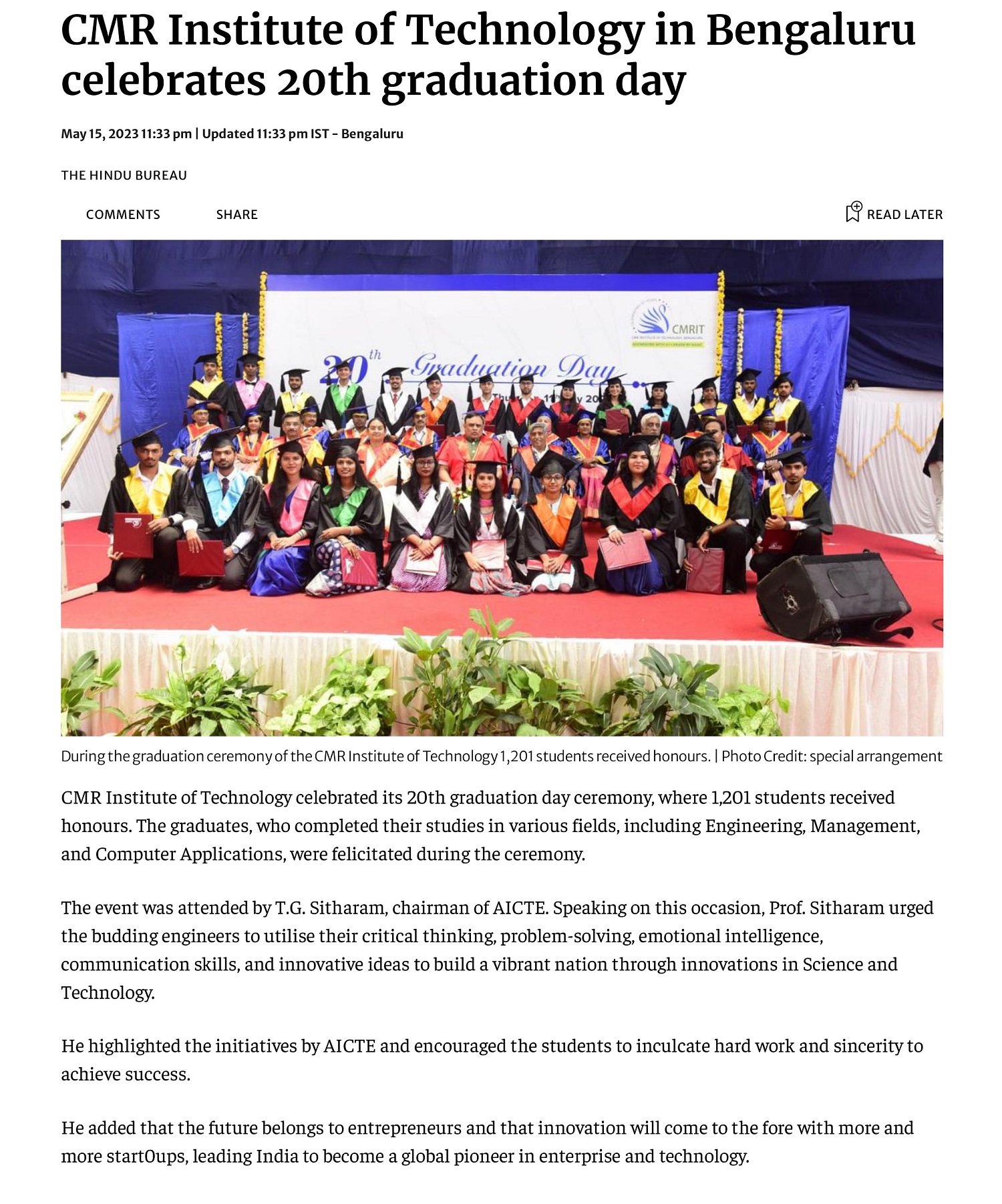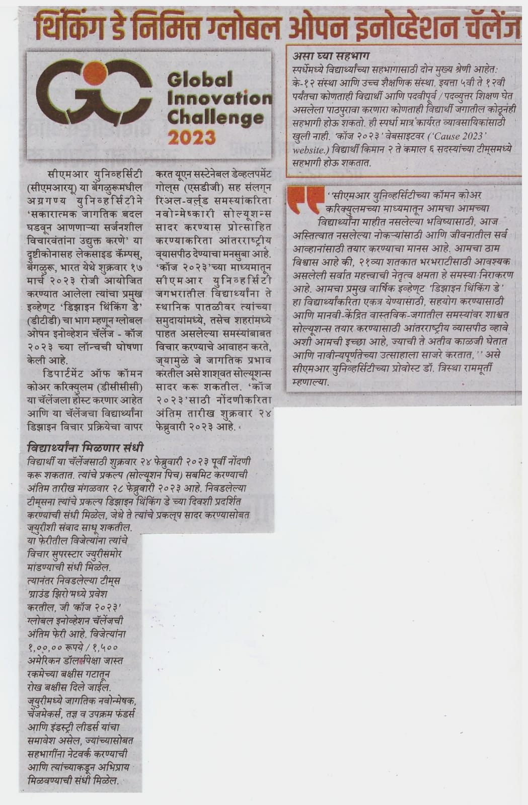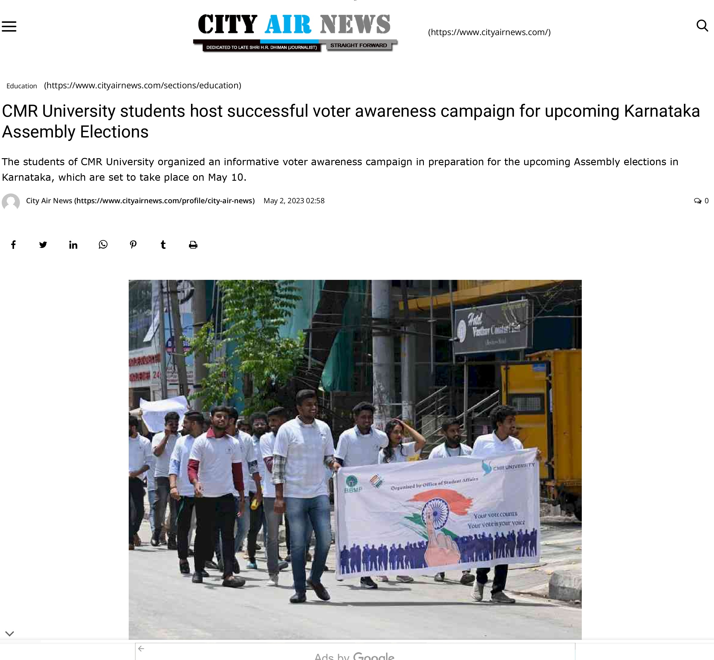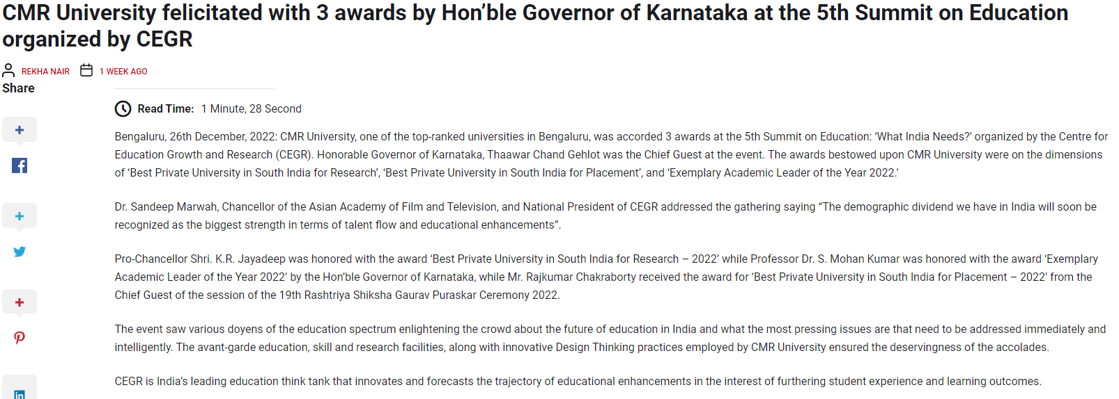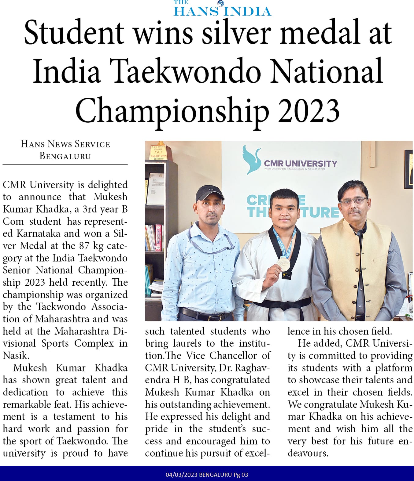 Featured in Bangalore city news |Aryavarth | Xpress Alert | Vartha Bharathi | Udayavani | Udayavahini | Udayakala | Twitter- CMRU | TVA News | Shiksha | Sanjevani | Sanjevani, pg 03 | sanjevani CMRU Online | Sanje Samaya | Samyuktha Karnataka | Samachar Parivartan | Right Info | Prajavni | news 8 | Madhyamam Listing | Hosadigantha | Higher Education Digest-CMRU | Education World | Eanadu | DD News | CMR Vijayavani | Bangalore Dhinamani | Bangalore Dhinamani