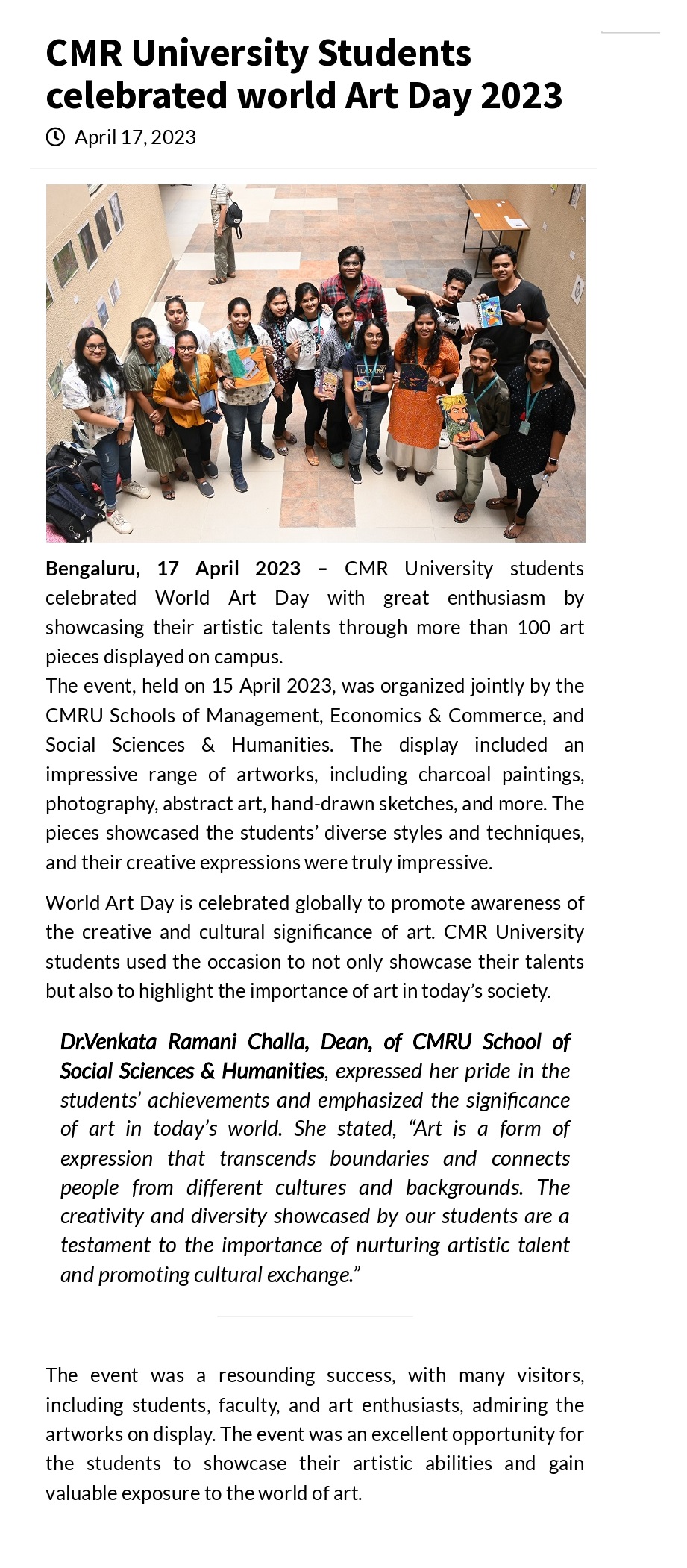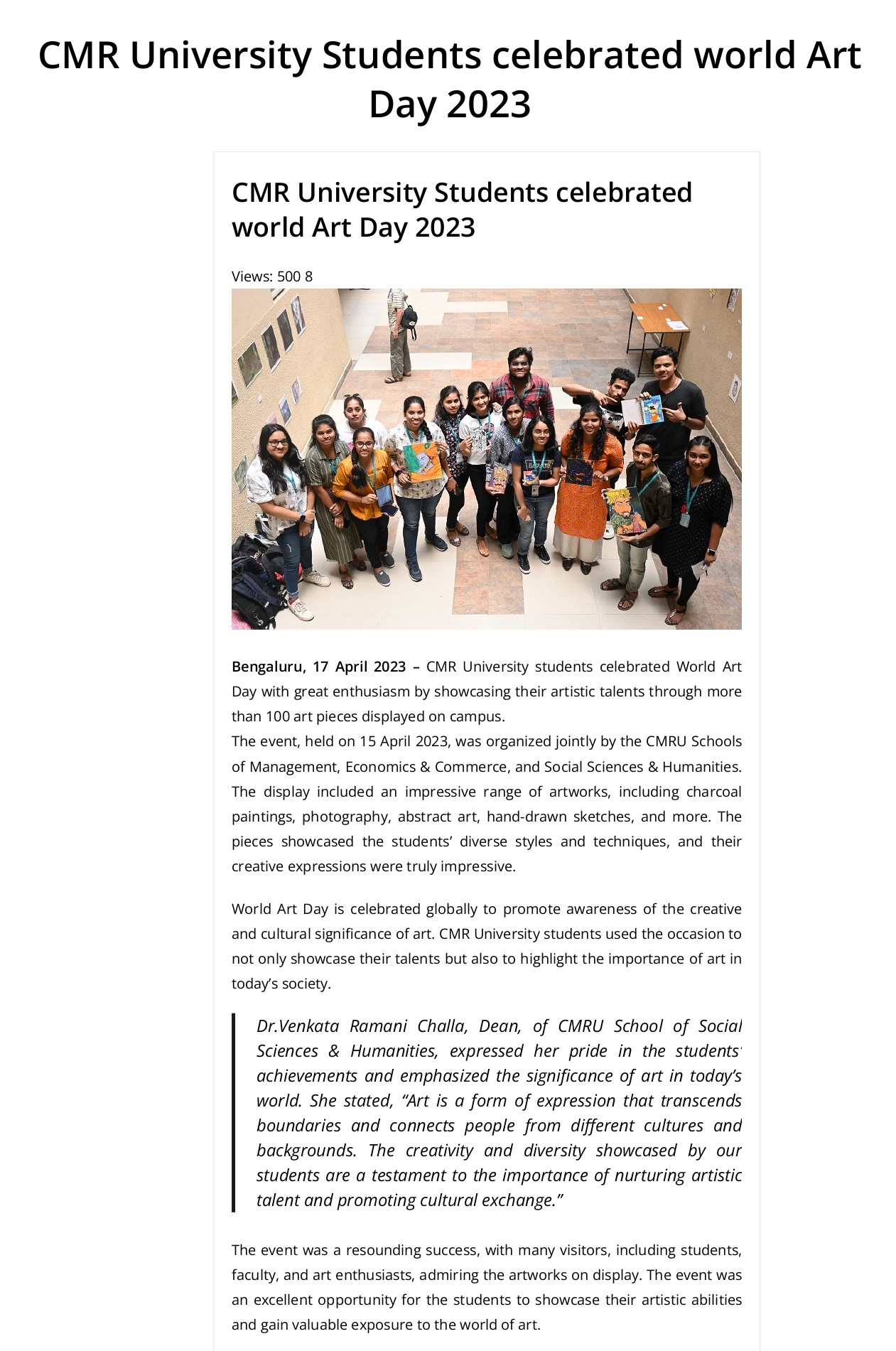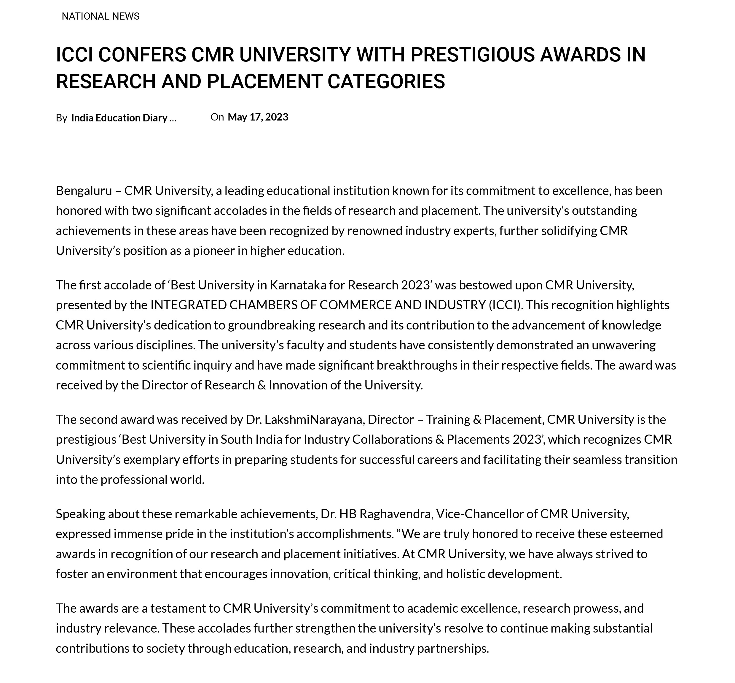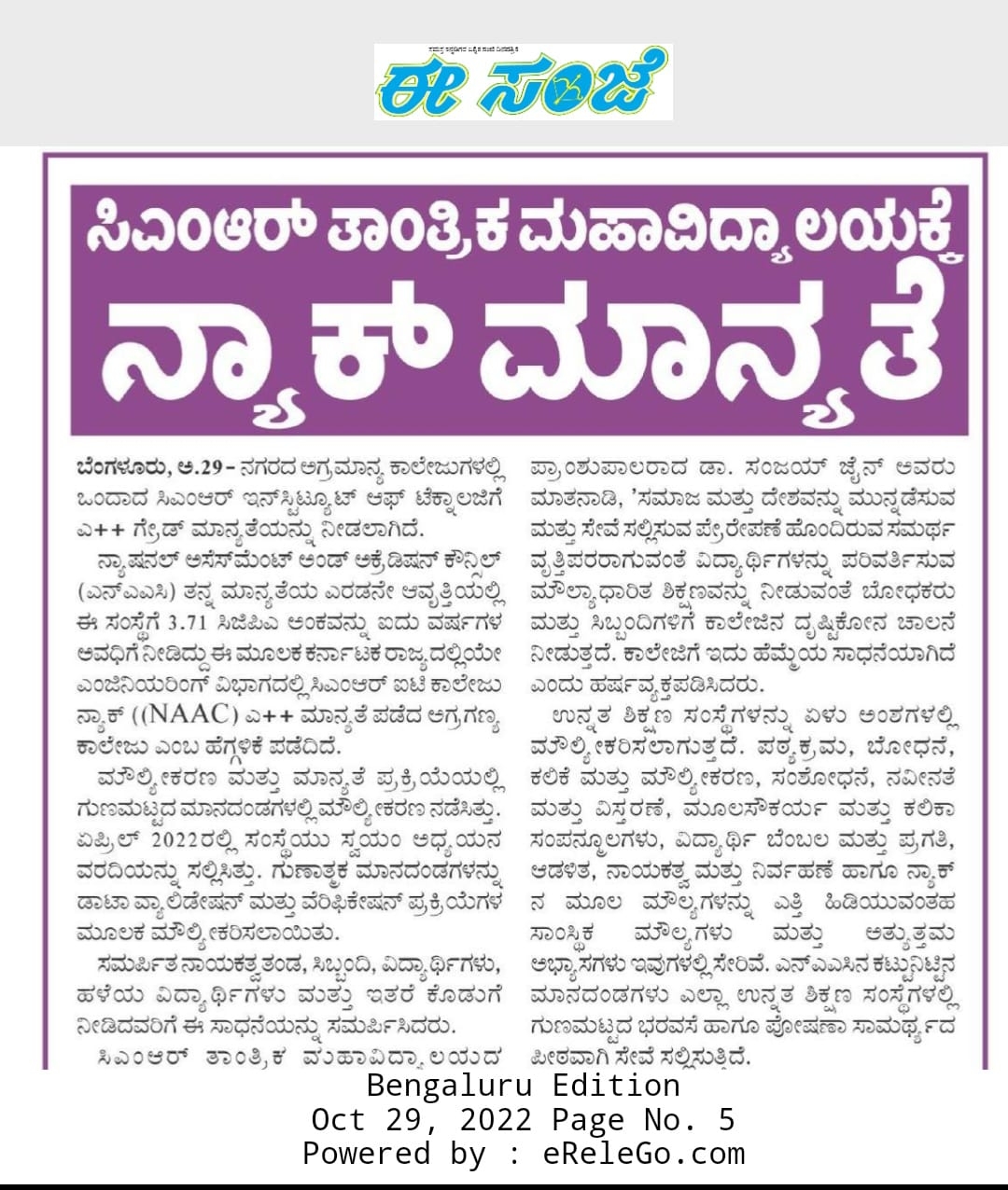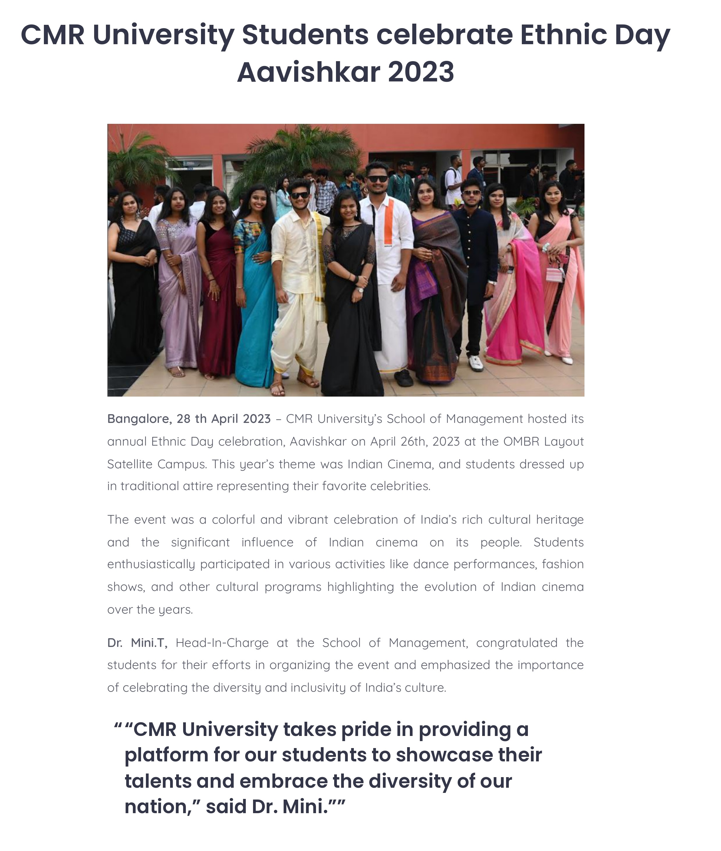 Featured in Bangalore city news |Aryavarth | Xpress Alert | Vartha Bharathi | Udayavani | Udayavahini | Udayakala | Twitter- CMRU | TVA News | Shiksha | Sanjevani | Sanjevani, pg 03 | sanjevani CMRU Online | Sanje Samaya | Samyuktha Karnataka | Samachar Parivartan | Right Info | Prajavni | news 8 | Madhyamam Listing | Hosadigantha | Higher Education Digest-CMRU | Education World | Eanadu | DD News | CMR Vijayavani | Bangalore Dhinamani | Bangalore Dhinamani