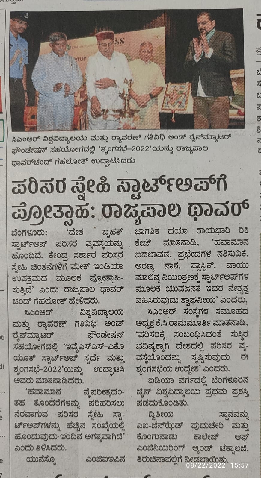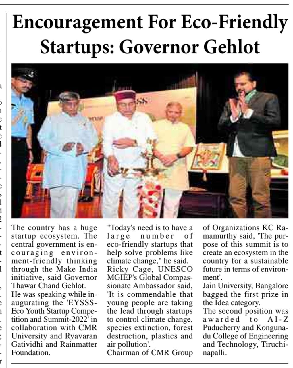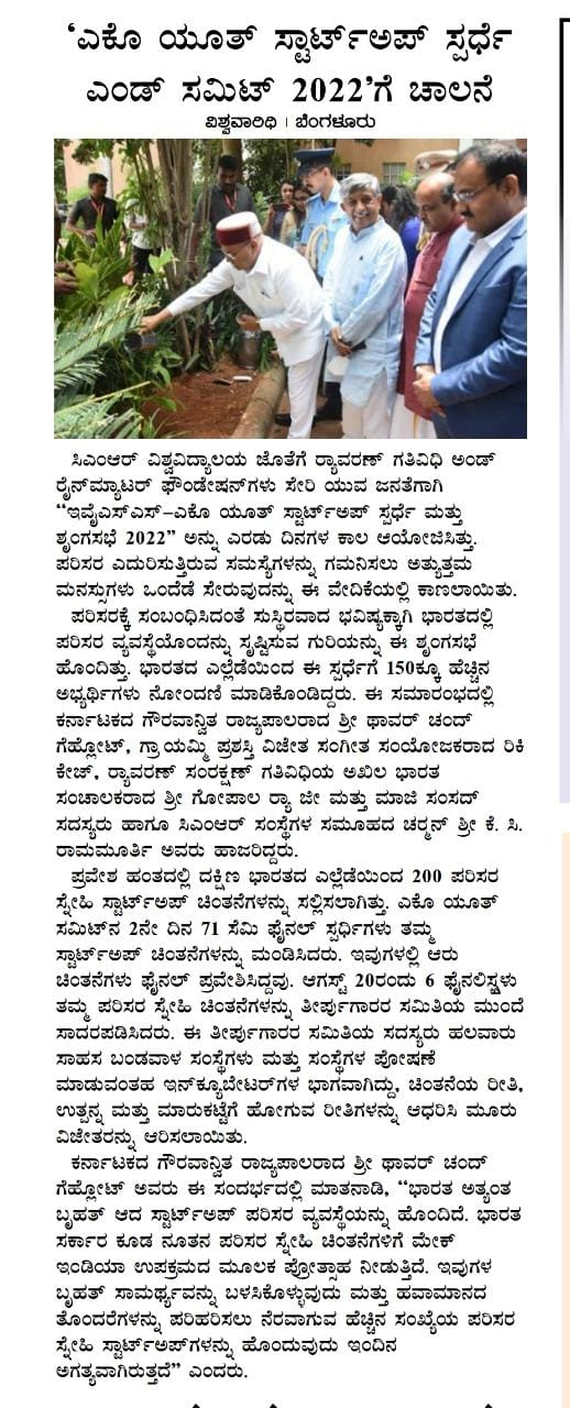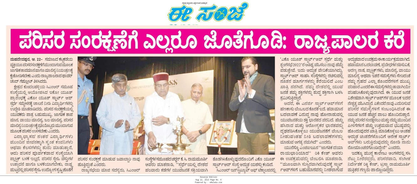 CMR University Undertakes the Green Initiative of Partnering with ‘Eco Youth Startup Competition and Summit 2022’ to Support the Eco-friendly Startup Ecosystem.