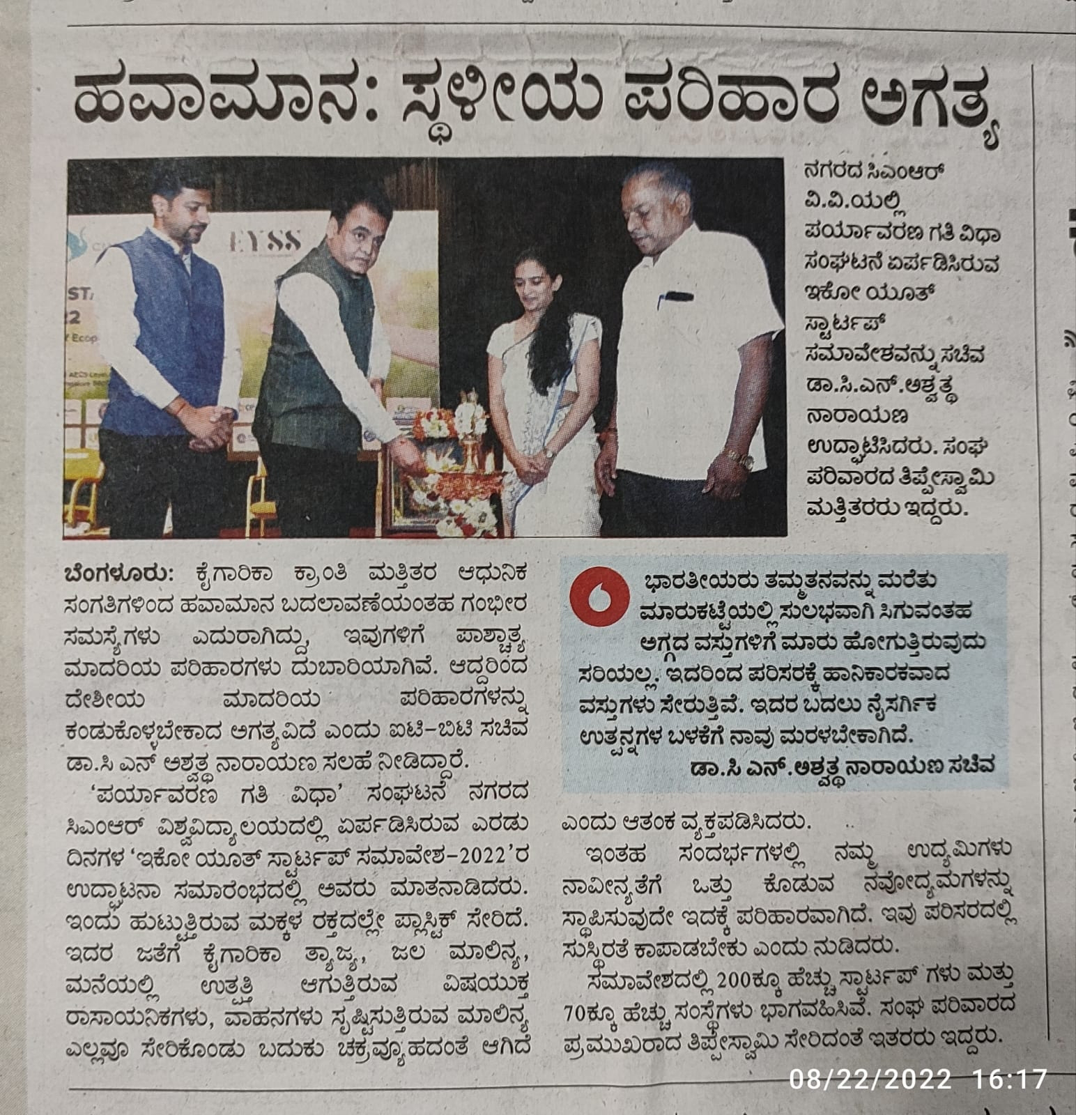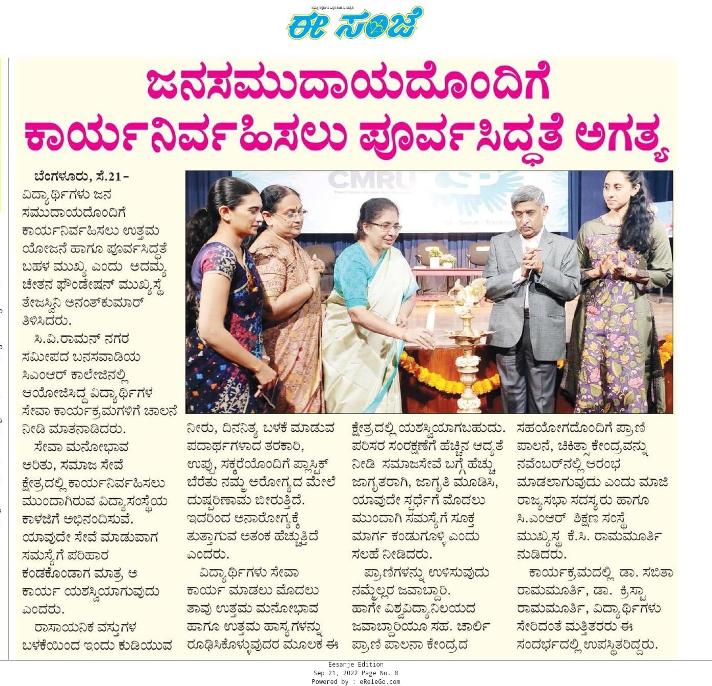 Featured in Eesanje | Navbharat | Prajavani | Sanje Samaya | Udaya Vahini