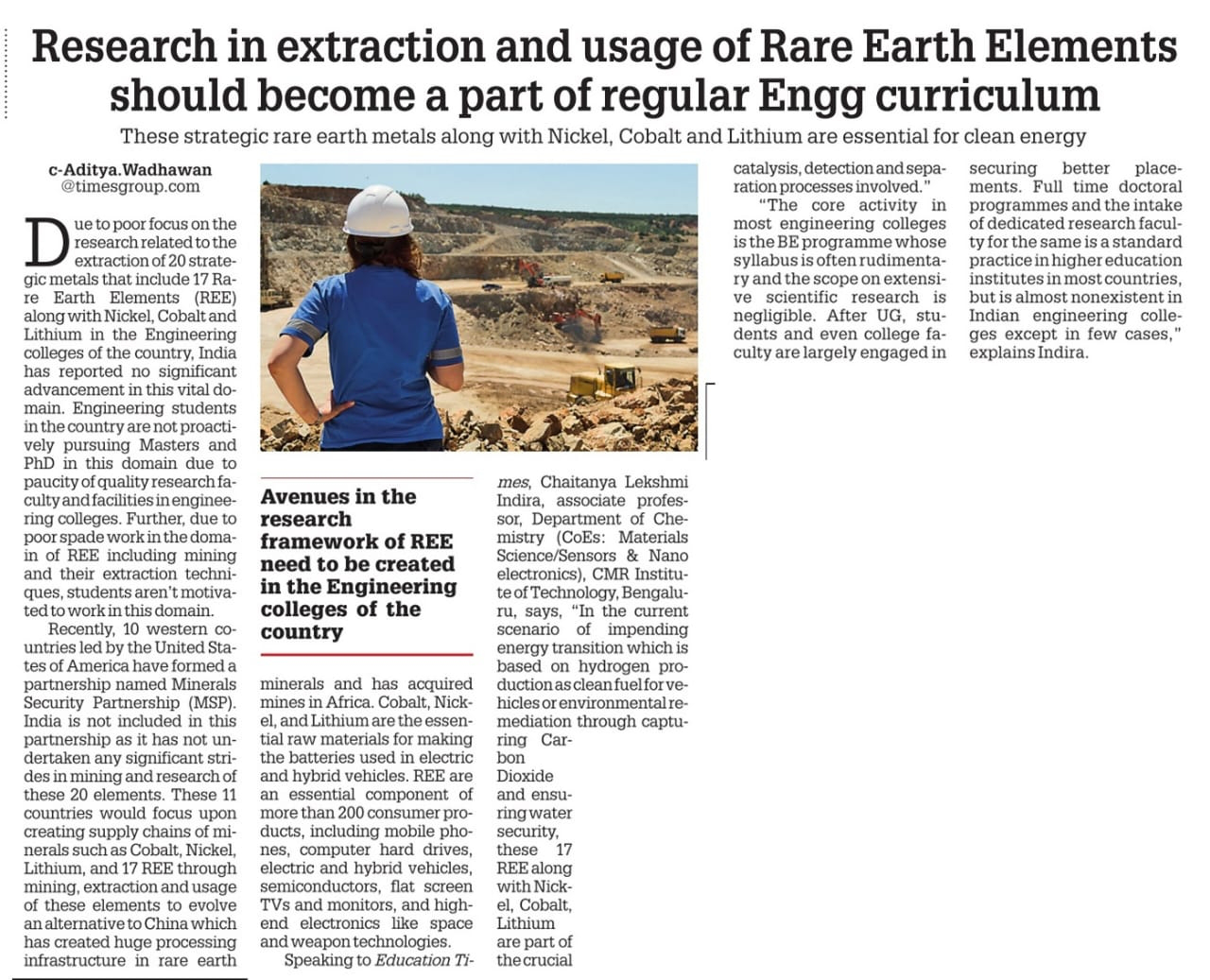 CMR University Advocates for the Inclusion of Rare Earth Elements Extraction and Usage Into the Core Engineering Curriculum