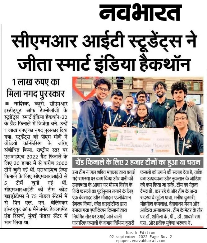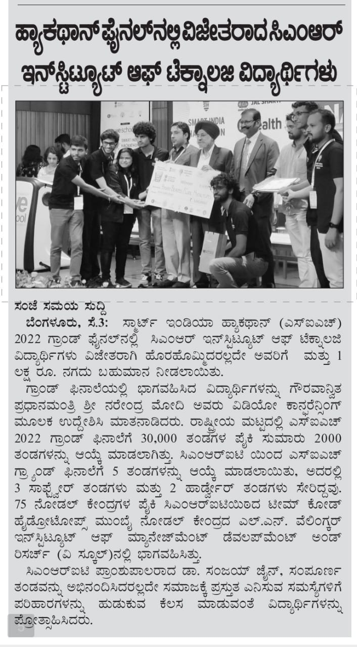 CMR Hackathon – Students at CMR University Win ‘Smart India Hackathon ‘and bag cash prize of ₹1,00,000