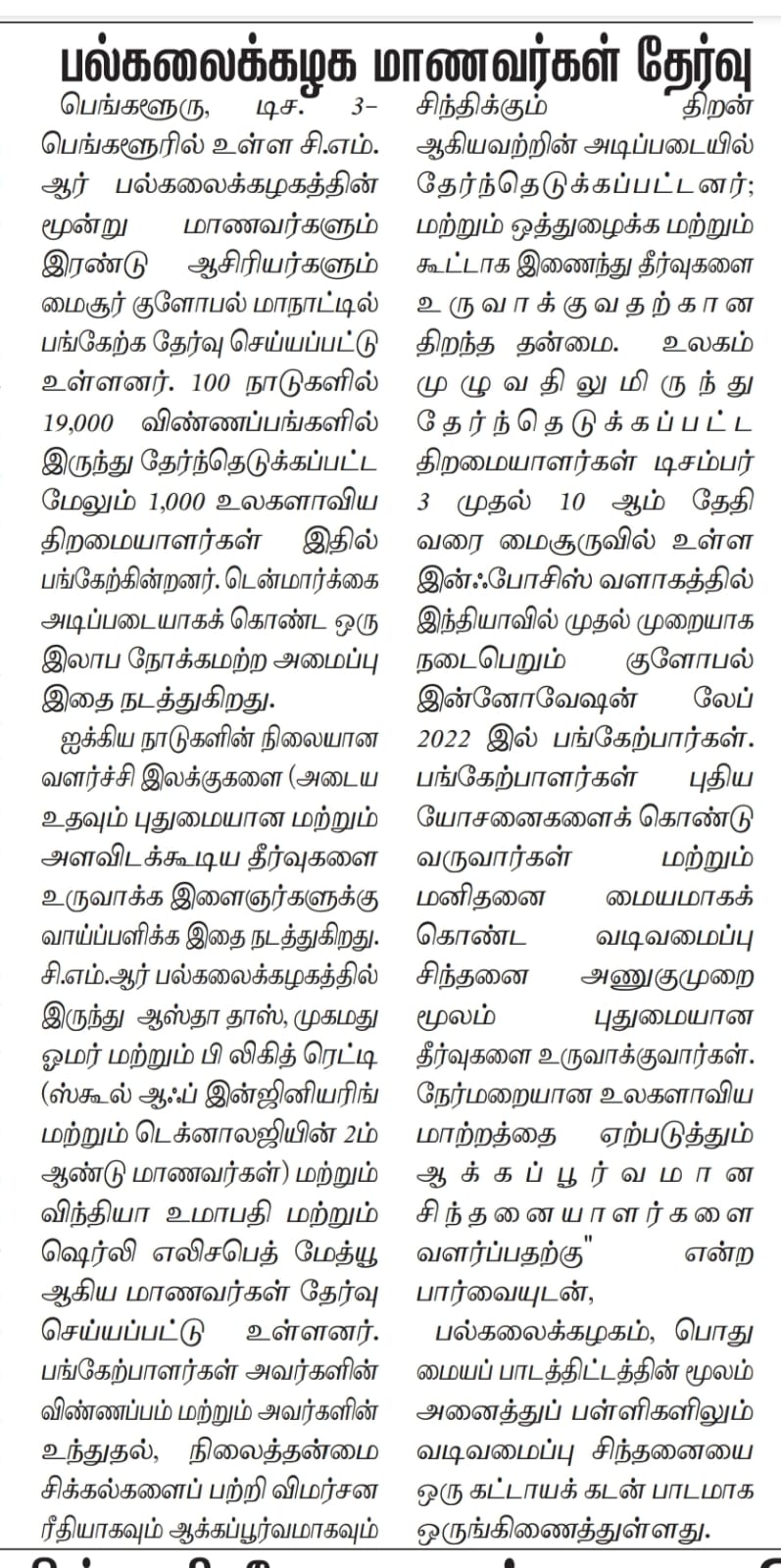 Featured in Citytoday | Dinakaran | Dinamani | Eenadu | Prajavani | Samyuktha Karnataka | The New Indian Express | UNI Kannada