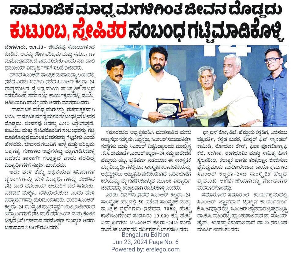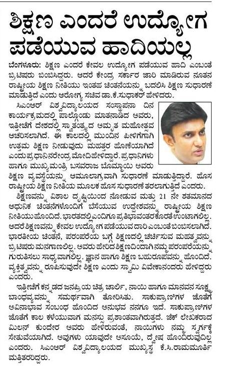 Featured in Deccan Herlad Print | Education World | BW Education | Cine Starz | Deccan Herald Online | Kadamba News | News8 | Parivartana Prabha | India Education Diary | Higher Education Digest (1) | Public Next (1) | Samachar parivartan | Subhashita | Public App | Prajavani | Vishwavaridi | The Aryavarth Express | The Hans India | The Hindu (1) | TVA News | Udayakala | Udayasudhi