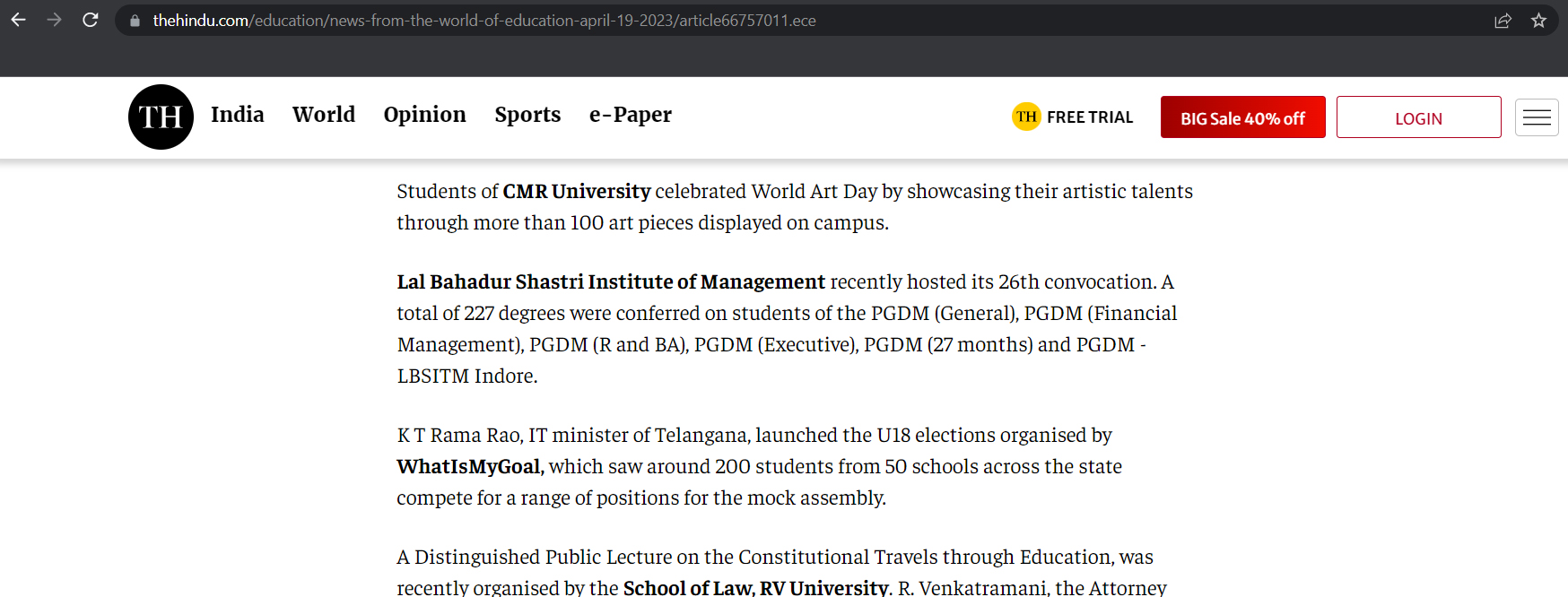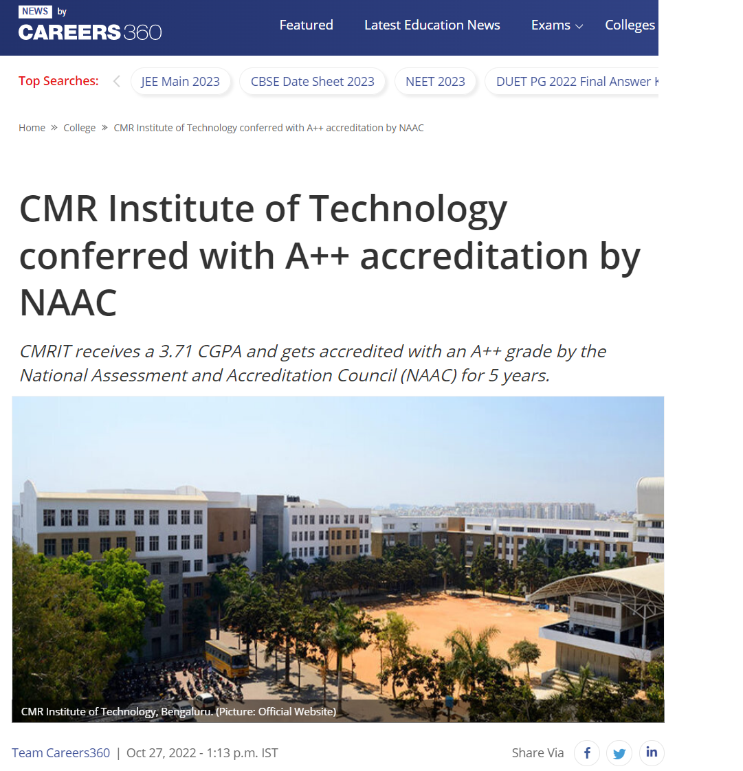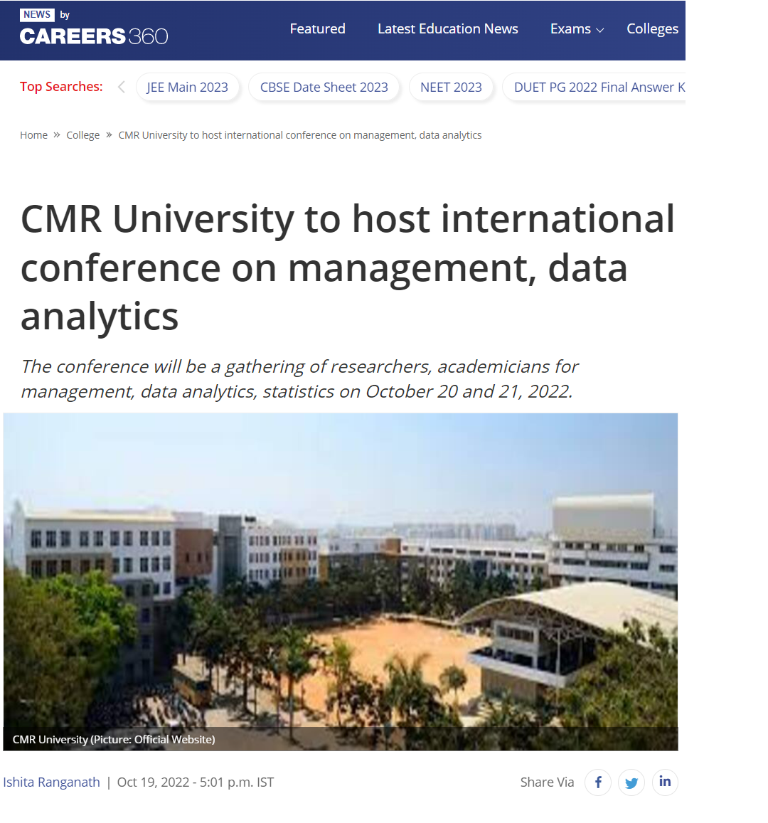 Featured in Eesanje | Udayavahini | India Education Diary | Shiksha | News by Carrers 360 | The Times of India | ANI News | The Print | The Week | ZEE 5 | Dailyhunt | Indiainfoline | Latestly | The Hans India | Edugraph | India Education Diary | Careers 360 | Careers 360 | BW Education