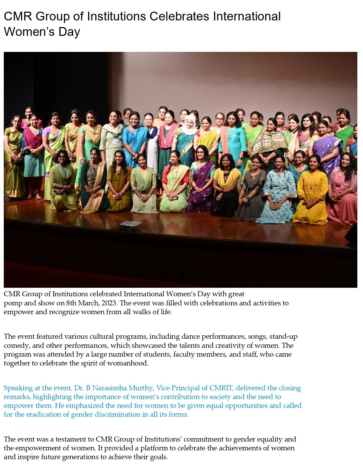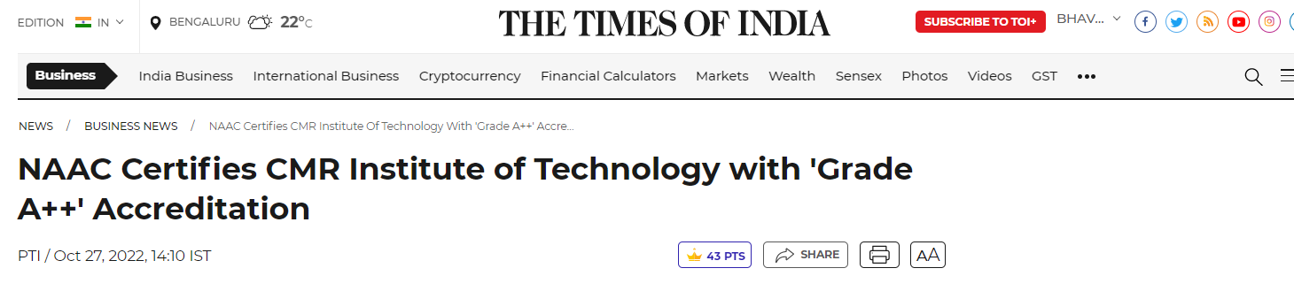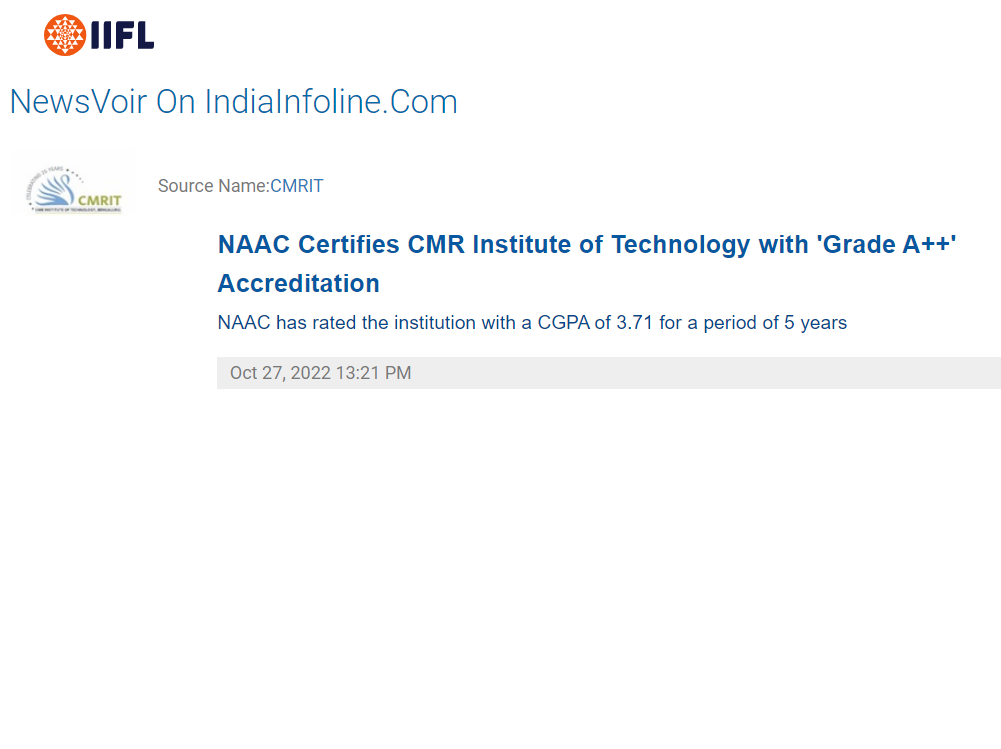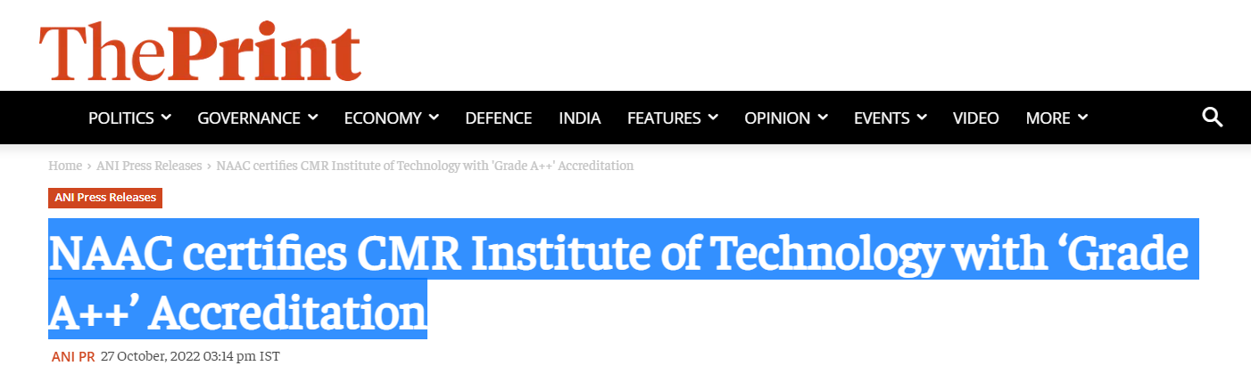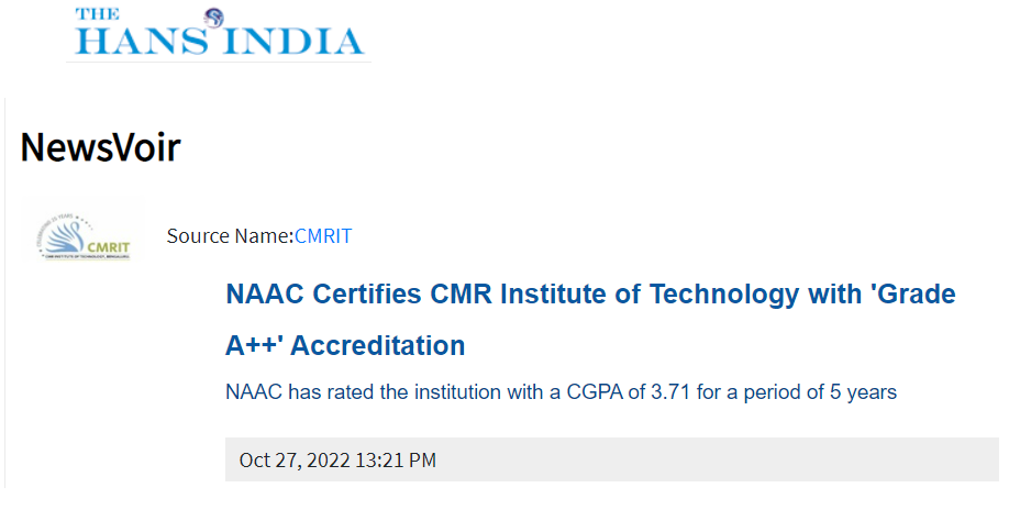 CMR- CMRIT gets A++ NAAC Grade