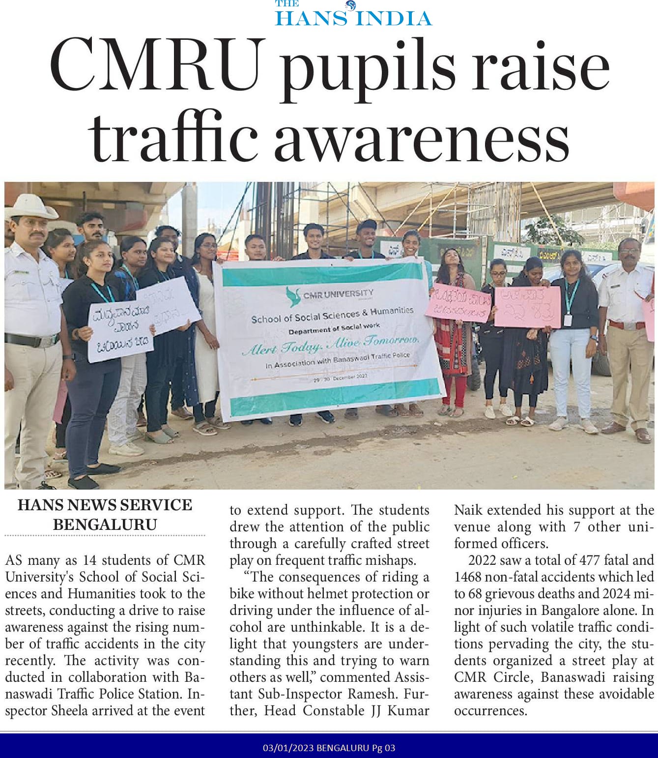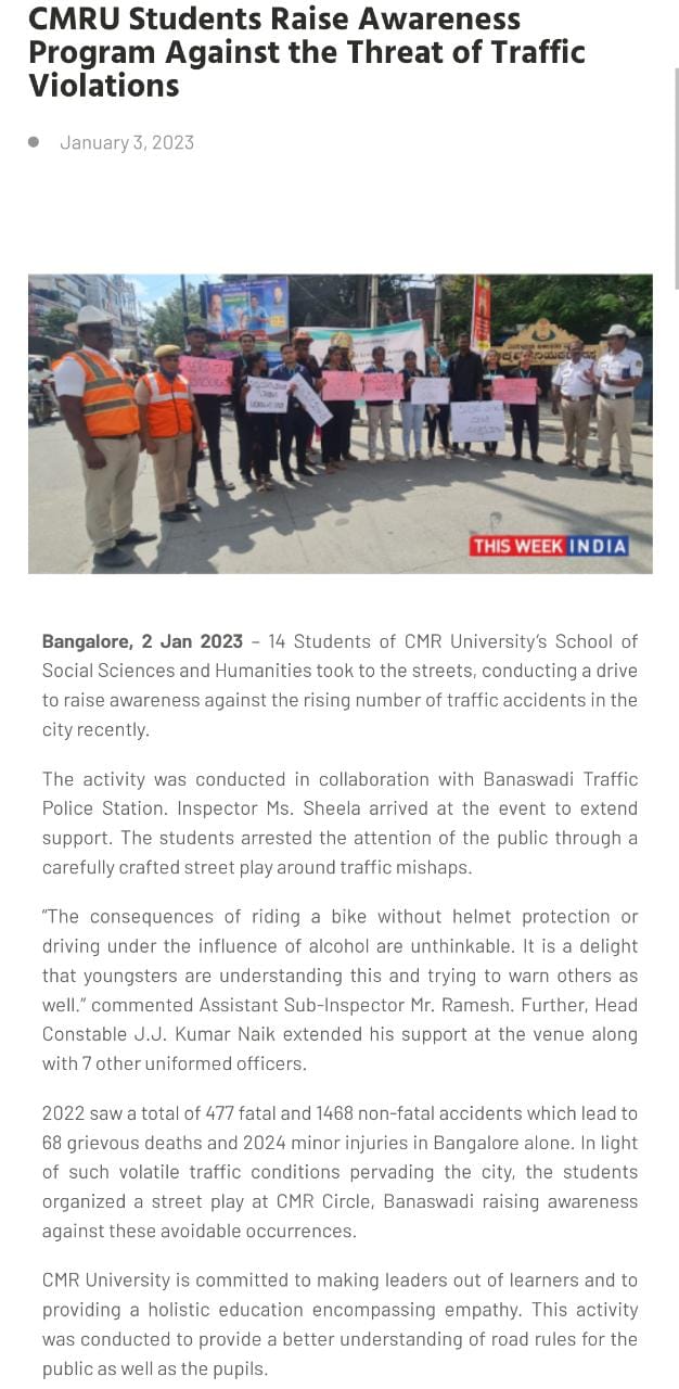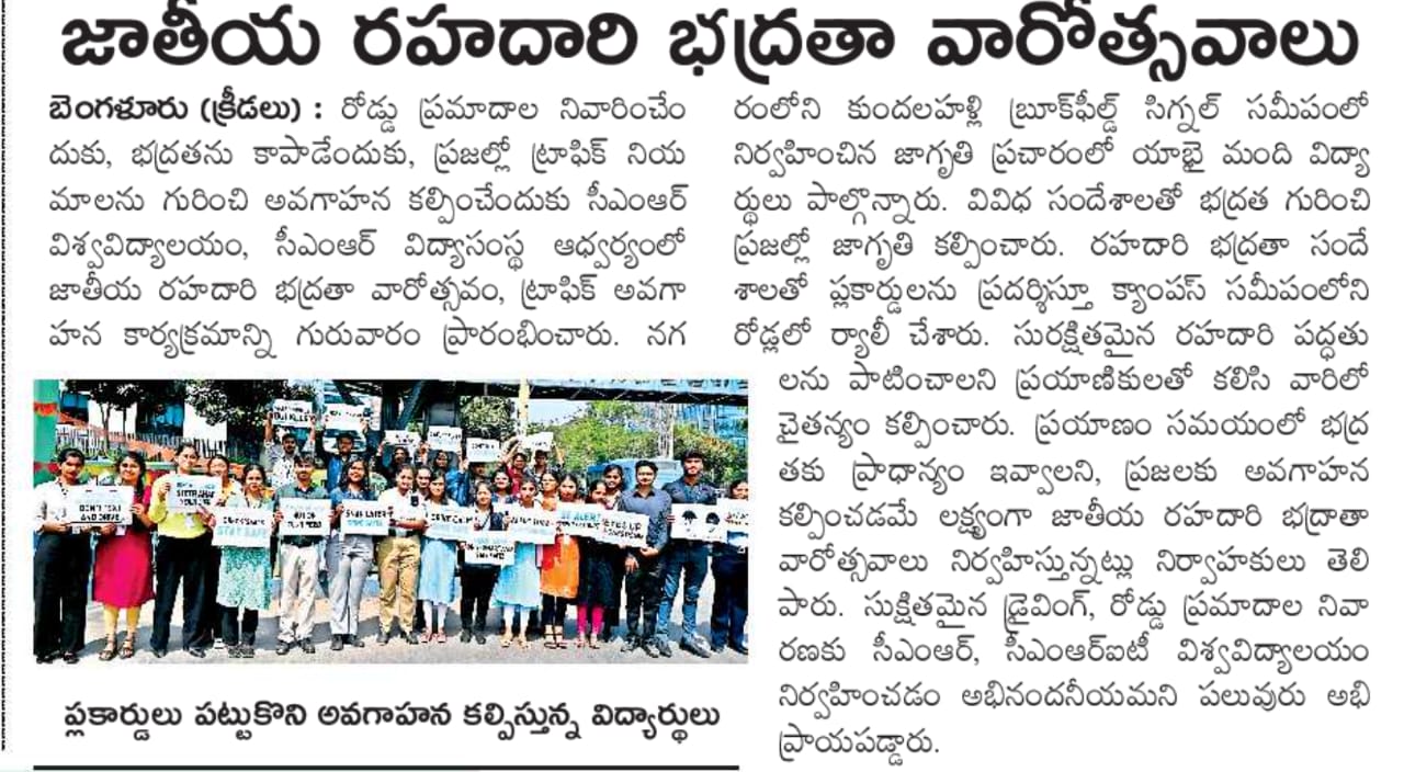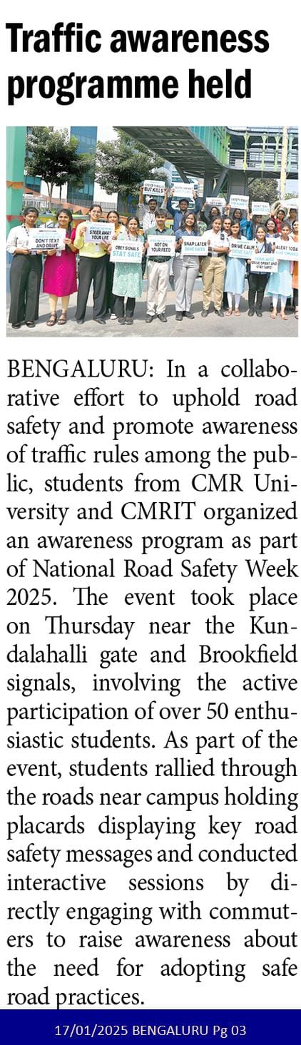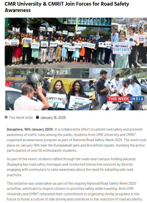 CMR University & CMRIT Join Forces for Road Safety Awareness