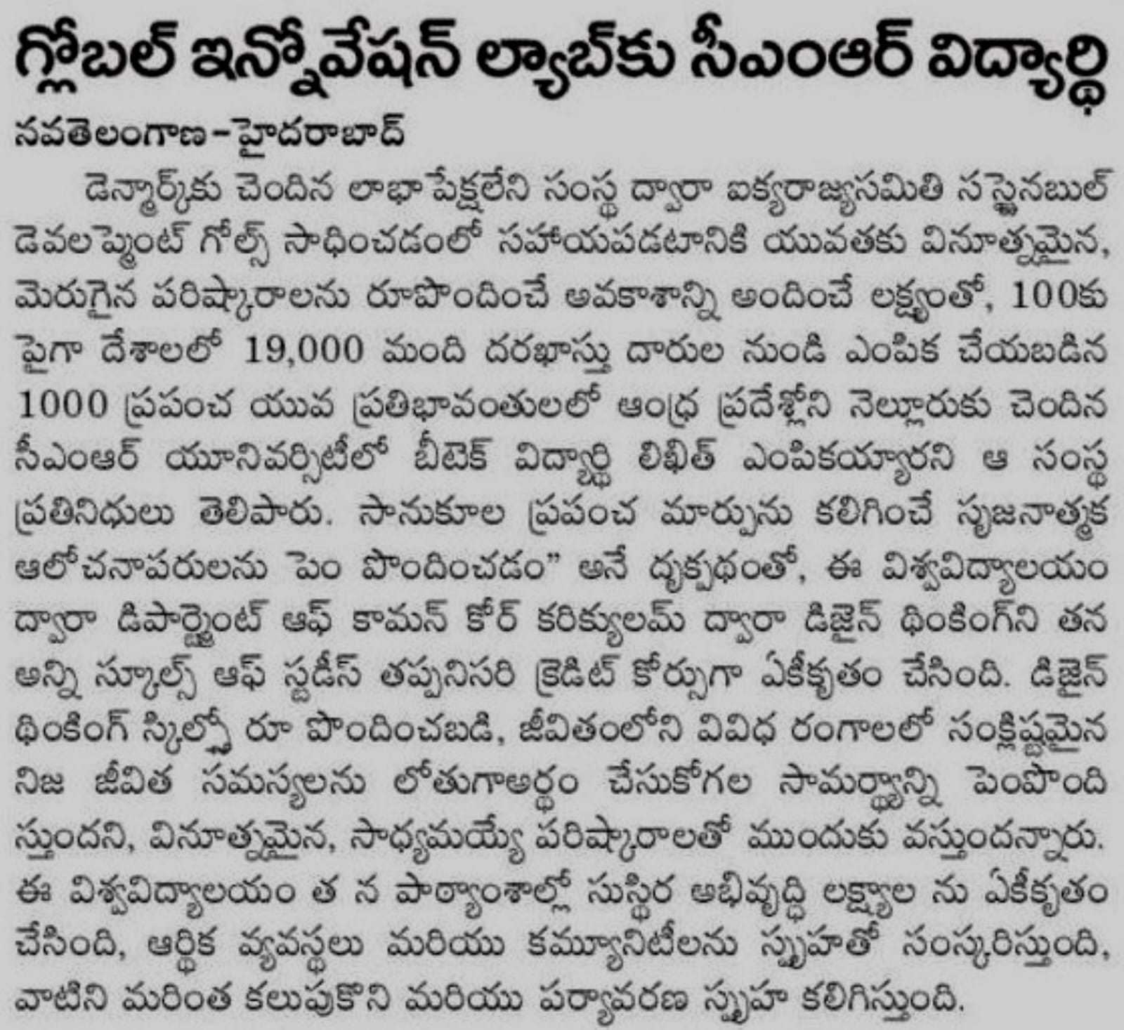 Featured in Vishwa Vaaridhi | Dinasudar | Sanje Prabha | Vijaya Dwaja | Sudhi Minchu | India Education Diary | The Hindu | India Education Dairy | The Economics Times tech | Business Wire India | The Hindu | Nava Telangana