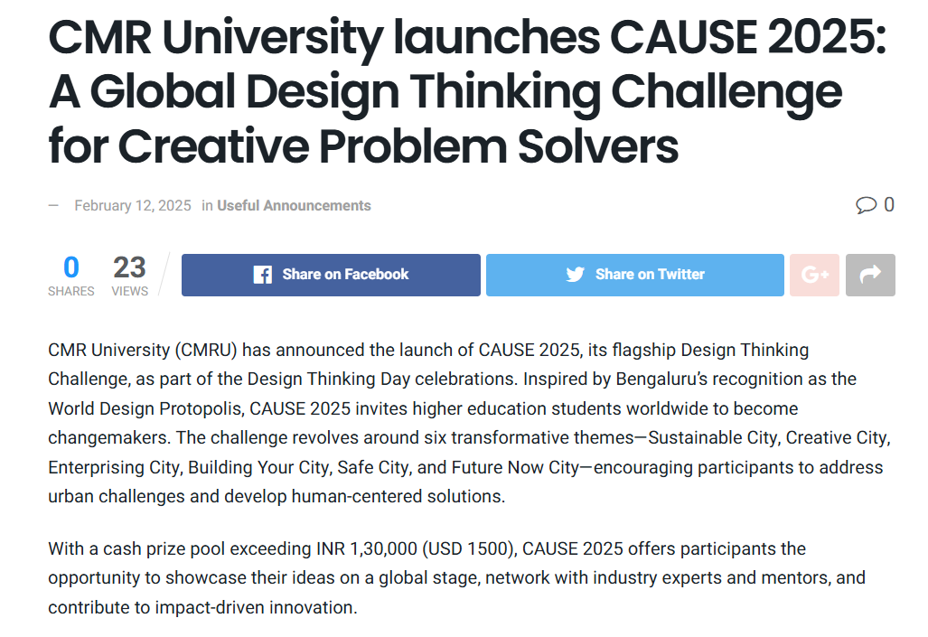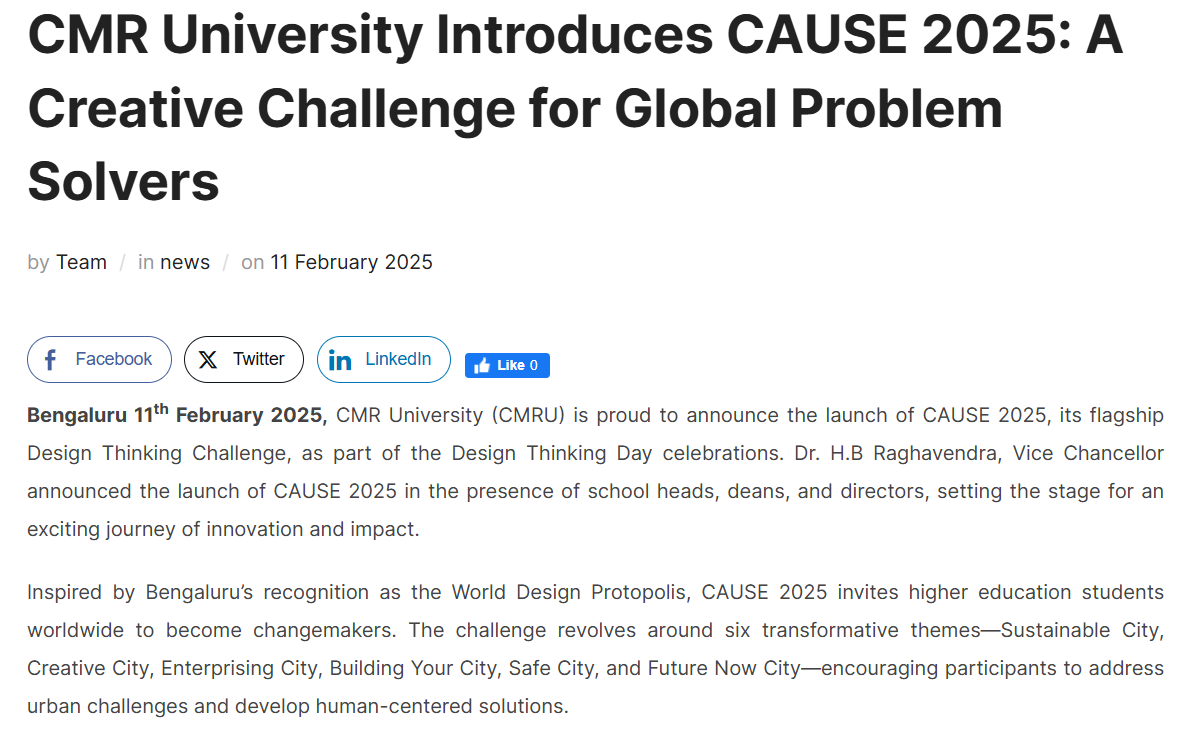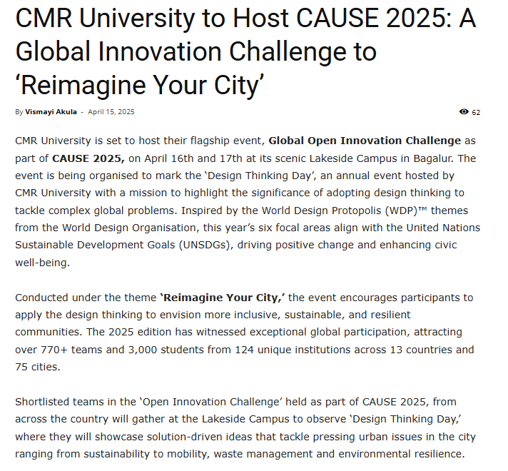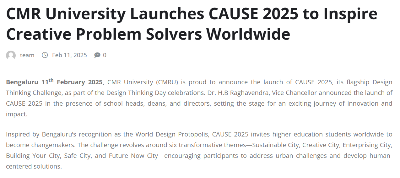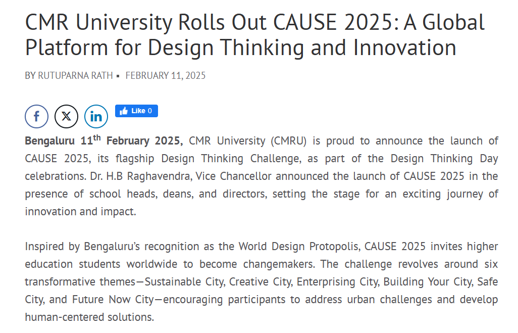 CMR University Launches CAUSE 2025: A Global Design Thinking Challenge