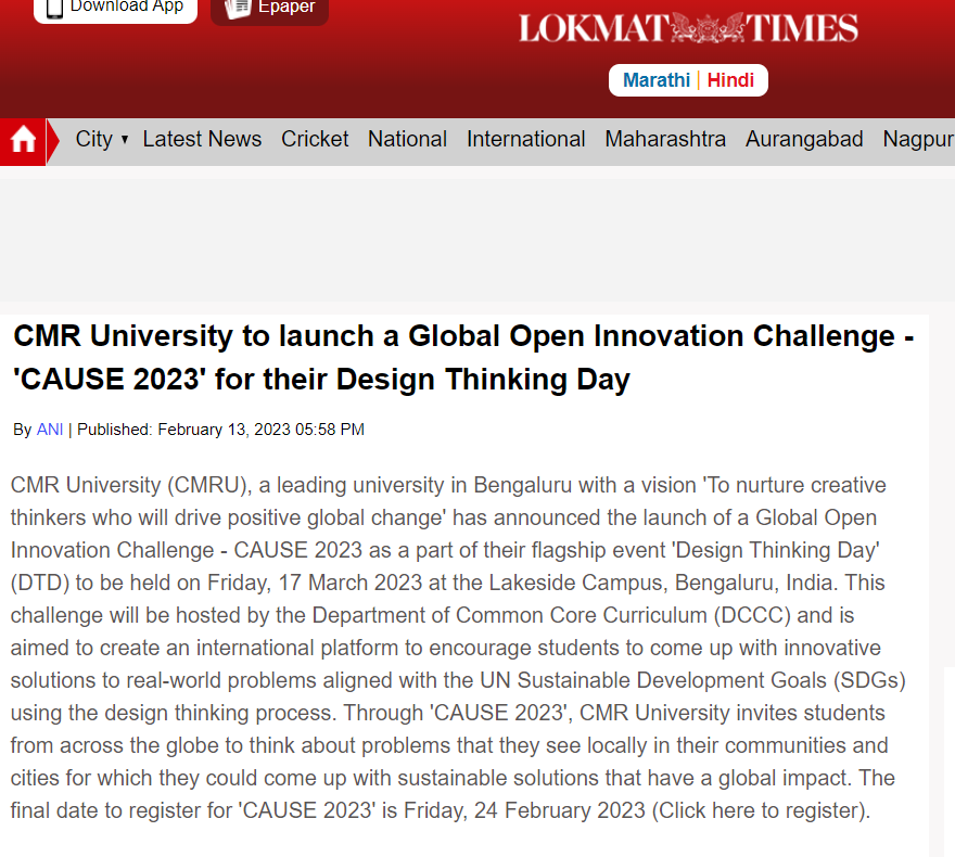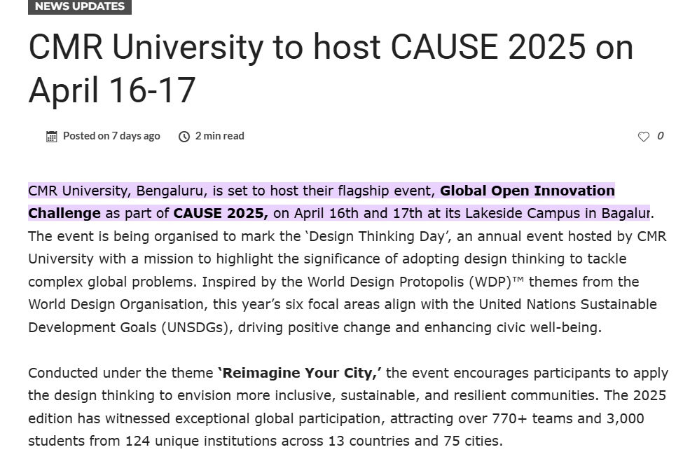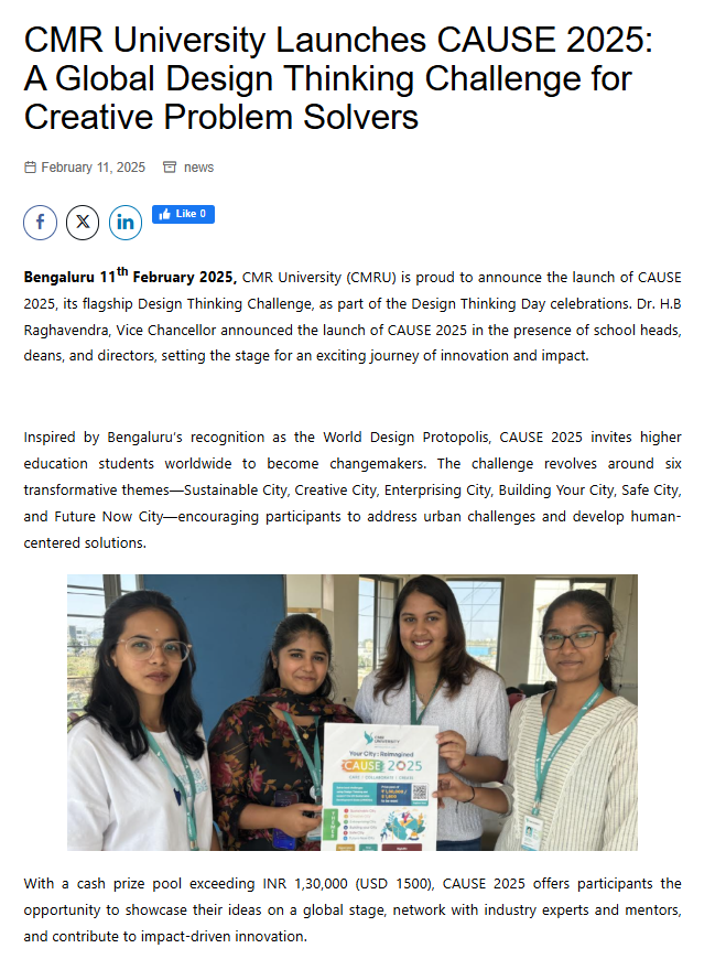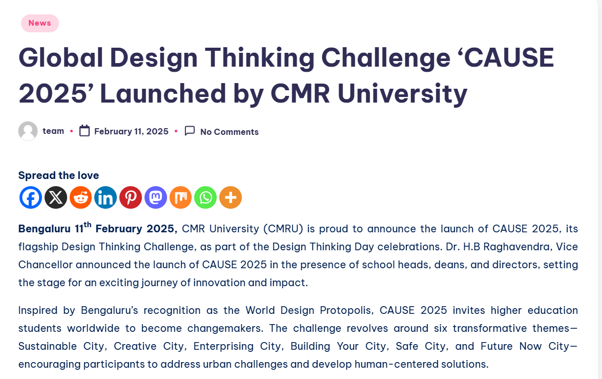 CMR University Launches CAUSE 2025: A Global Design Thinking Challenge