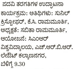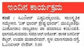 Featured in The Hindu | Prajavani | Hosadigantha | Udayavani | Prajavani (2) | Sanje Prabha | Shabd Shaastra | Vijaya Karnataka | Bharatha Sarathi | Vishwa Vaaridhi | Vijaya Dwaja | The Aryavarth Express | Samyukta Karnataka | Vartha Bharathi | Vishwavani | Indian Education Dairy | Business News This Week | Content Media Solution