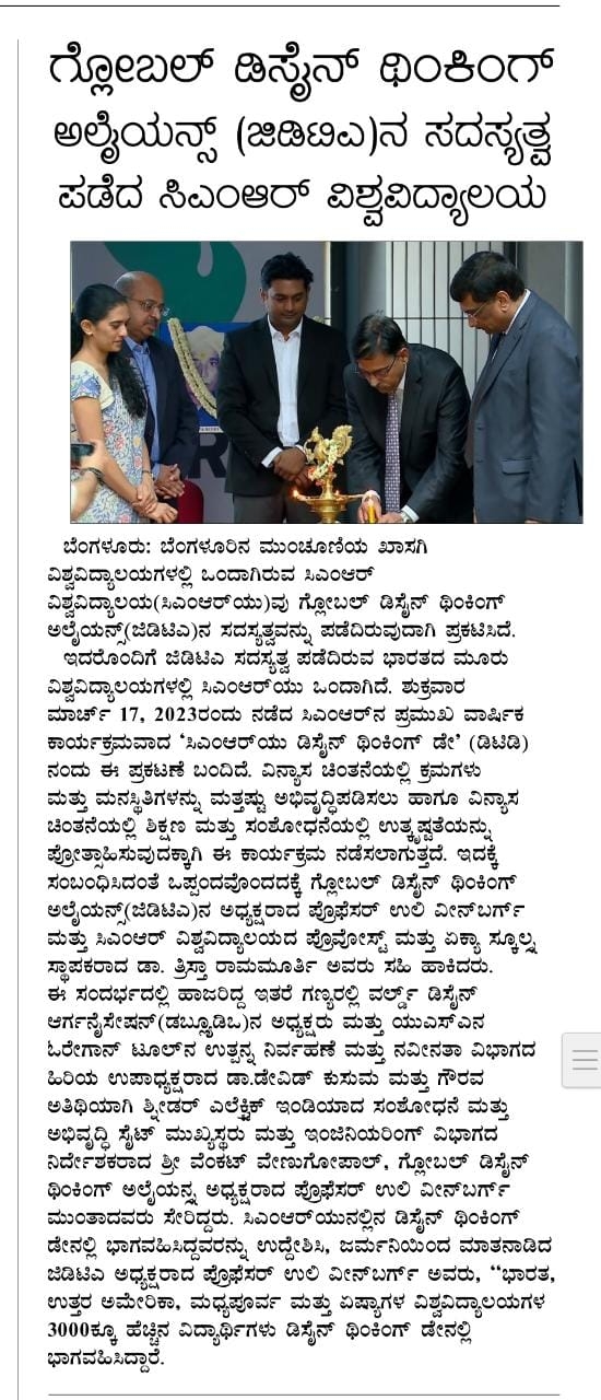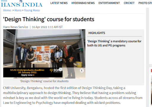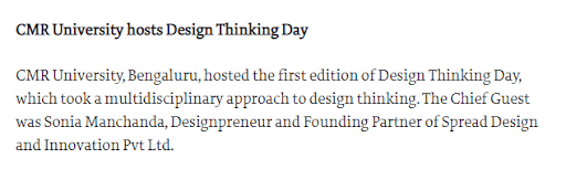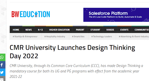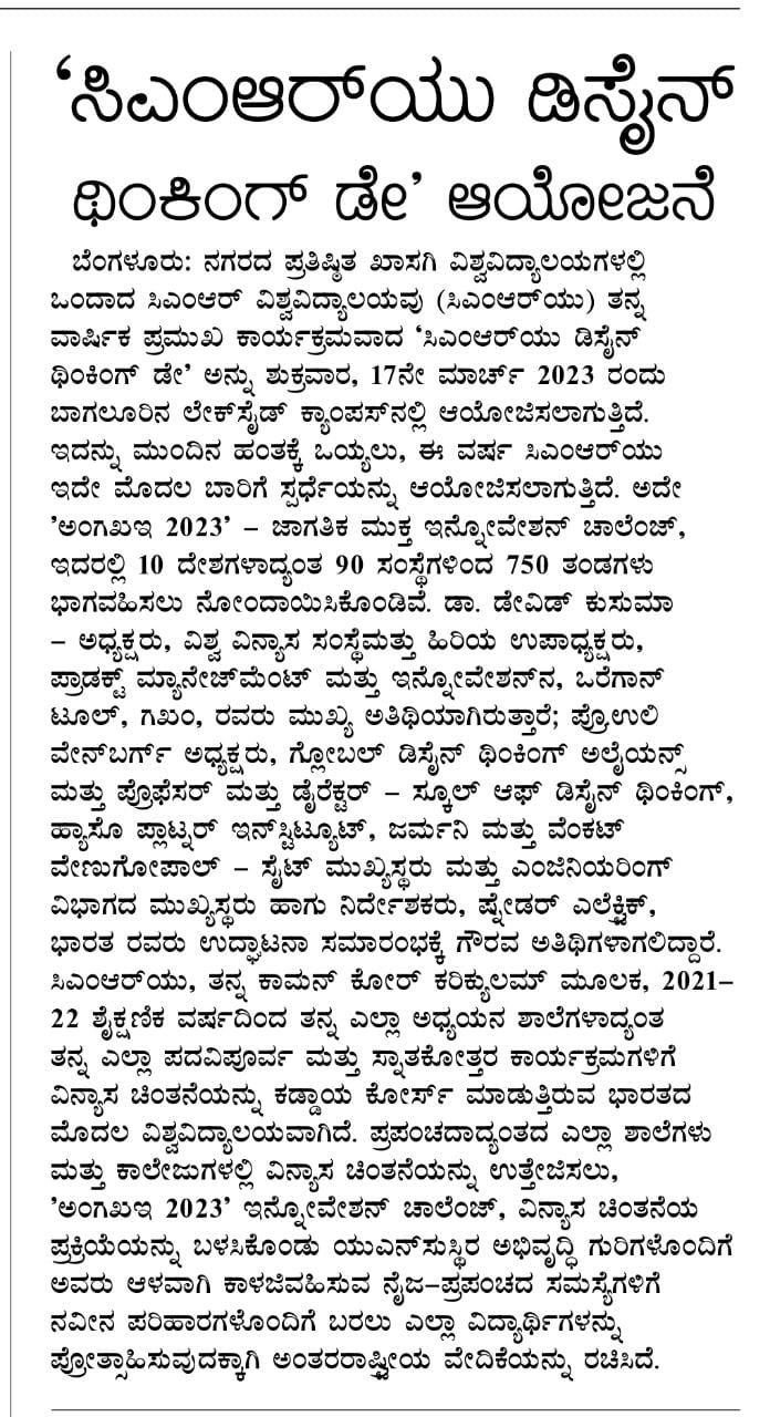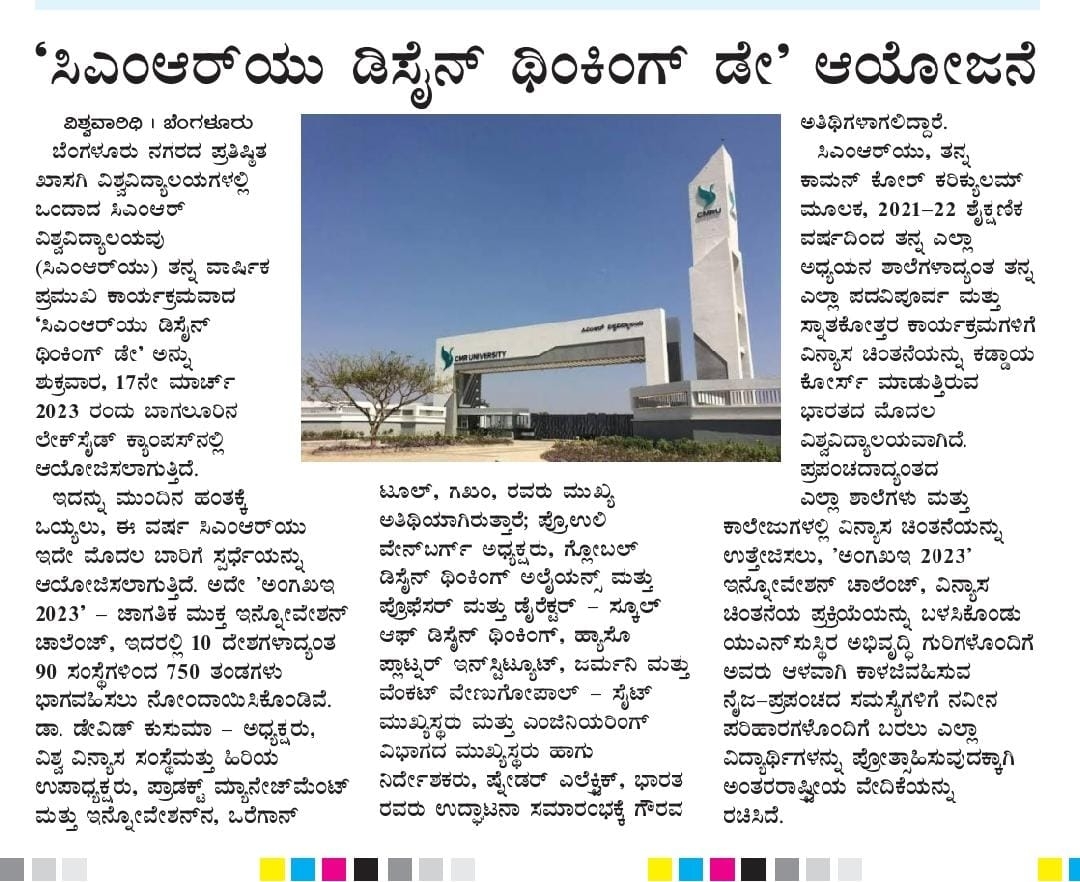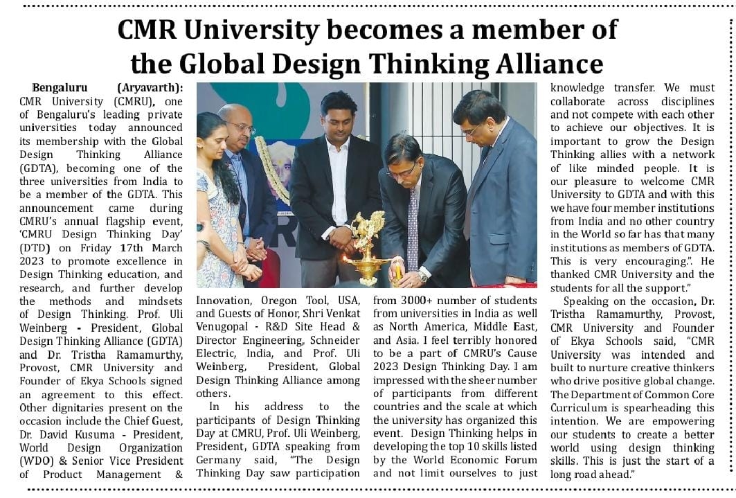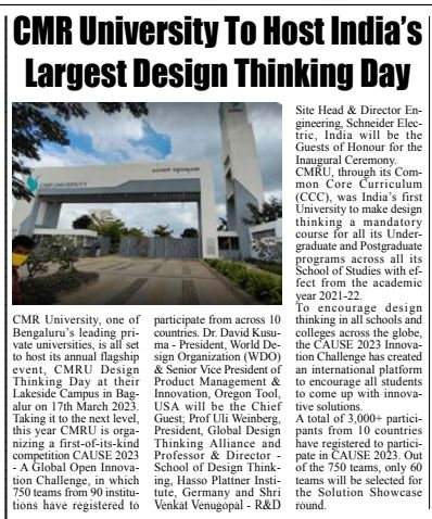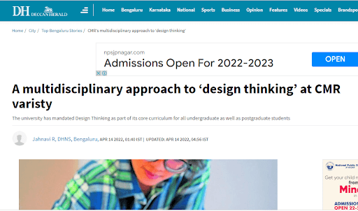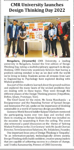 CMR University Bengaluru celebrates Design Thinking Day 2022, on 12 April 2022