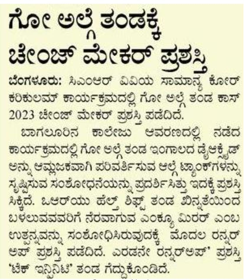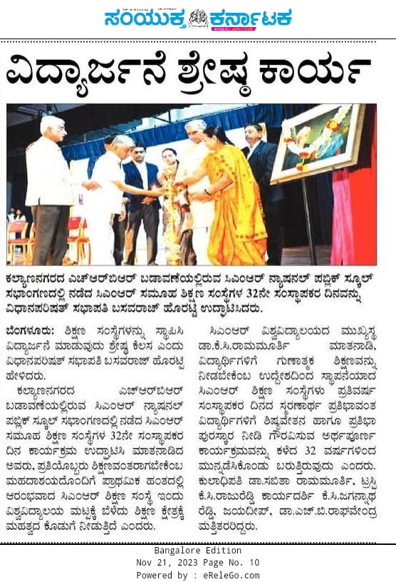 Featured in Public Tv |Express Times |Udayasuddi |Deccan Herald | The Hindu | The Hindu (Education) | Vijaya Karnataka | Vishwavani | Eesanje | Vijaya Vani | Samyuktha Karnataka | Indu Sanje | SanjeVani | Sanje Express | Suvarna Times of Karnataka | APN NEWS | City Air News