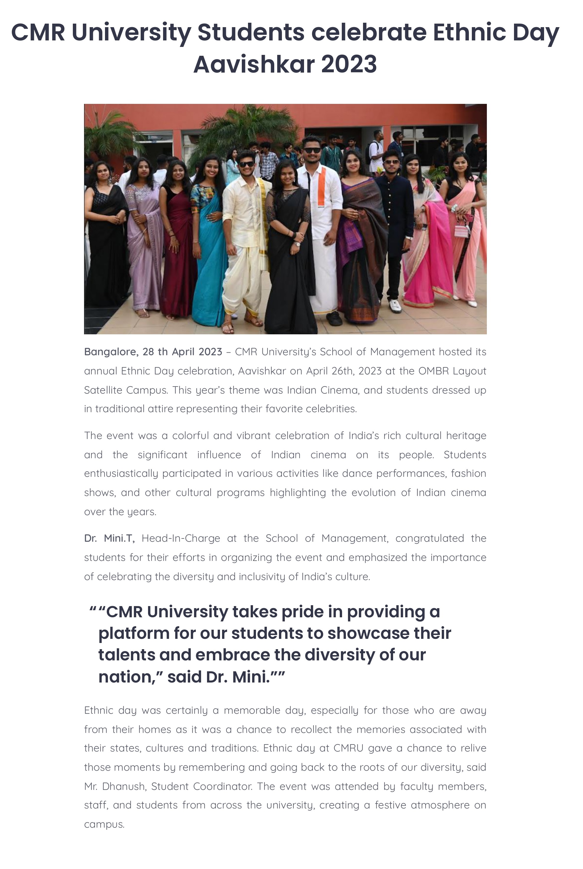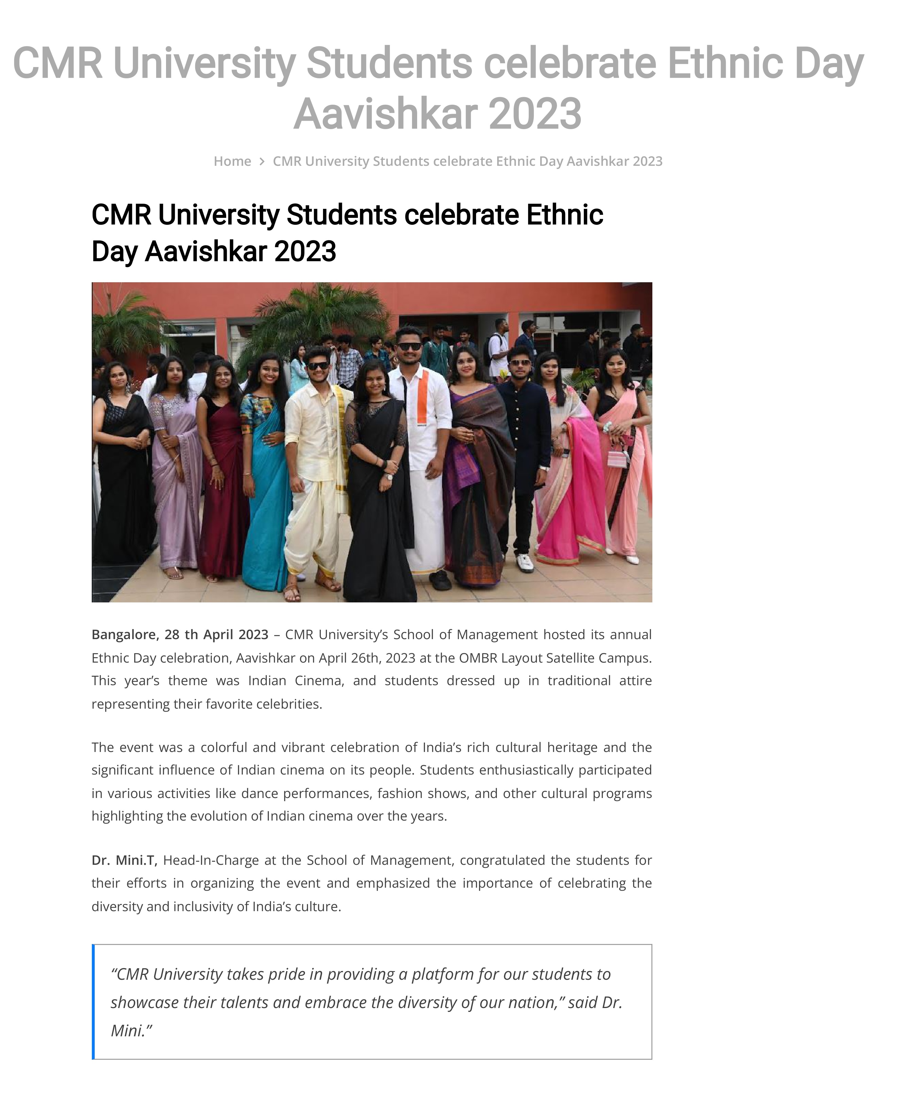 CMR University Shines Bright with the Grand AAHAV 23 Fest