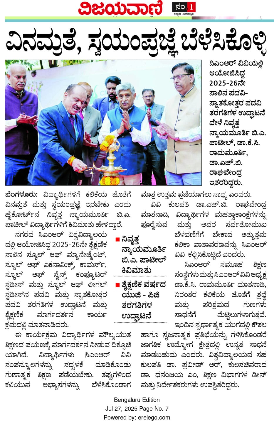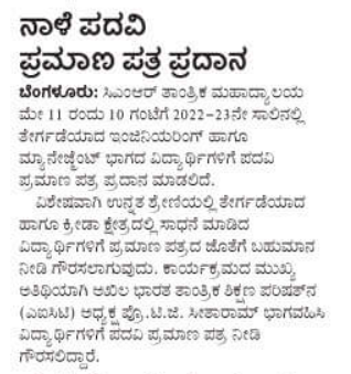 Featured in Bangalore Mirror Online | Bharatha Sarathi | BM Online | Business New Week | Business News This Week | City Air News | Dinasudar | English Headline | FM Live | Higher Education Digest | Hosadigantha | India Education Diary | lISTING – BM Print | Listing – Prajavani | Listing DH | Media Bulletins | News 8 | Public Next | Sanje Prabha | APN News | Shreyas Media Solution | Suvarna Times of Karnataka | This Week India | The Hans India | Udaya Suddhi | Udaya Suddhi(2) | Vijaya dwaja | Vishwavaaridhi, pg 02 | Sanje Samaya |
